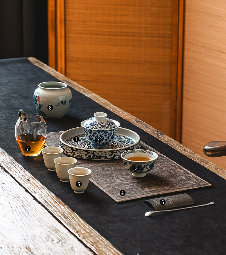 茶香记元古胤造混地祥云凤壶承景德镇仿元青花手绘陶瓷干泡盘赏盘