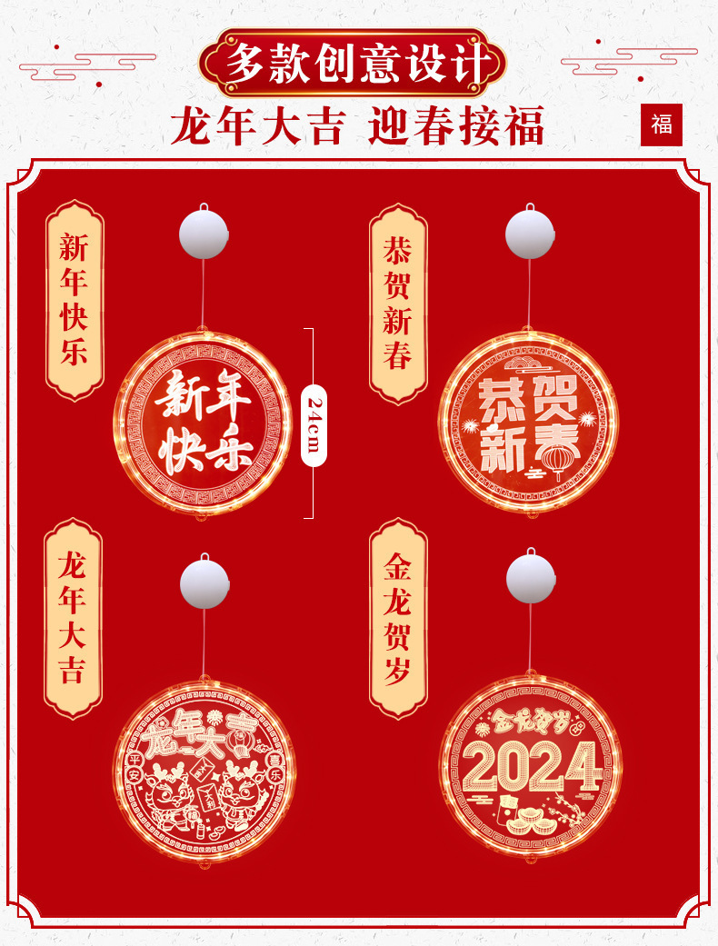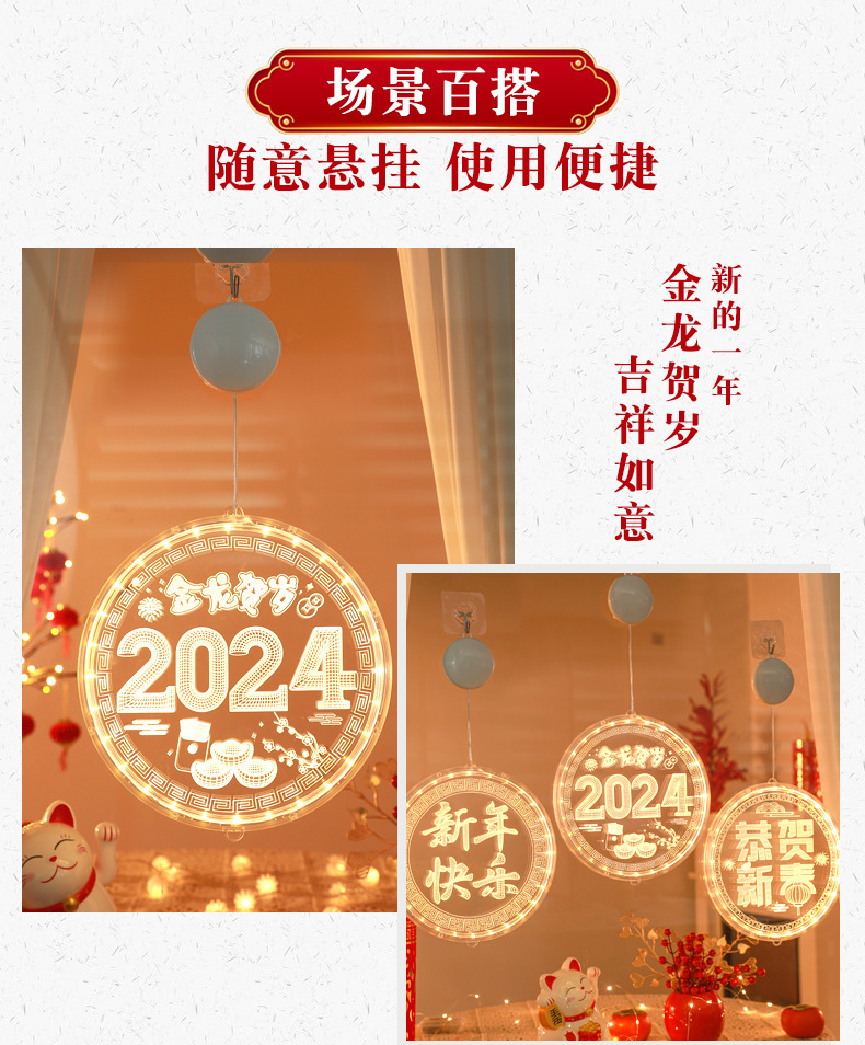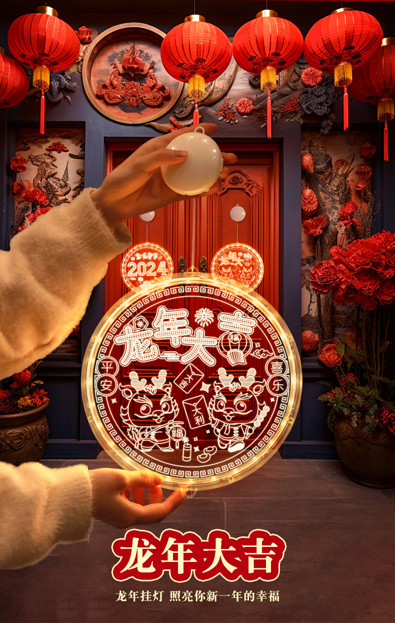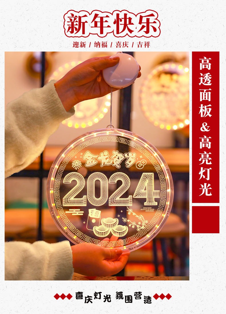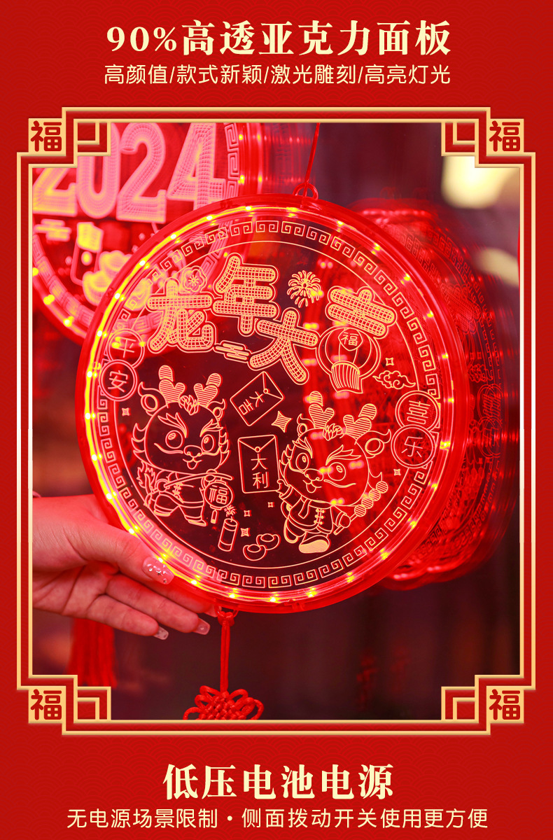 【龙年大吉!迎春接福】2024年春节元旦彩灯新年装饰灯龙年大吉LED灯亚克力发光新年灯,多场景适用,处处有惊喜。