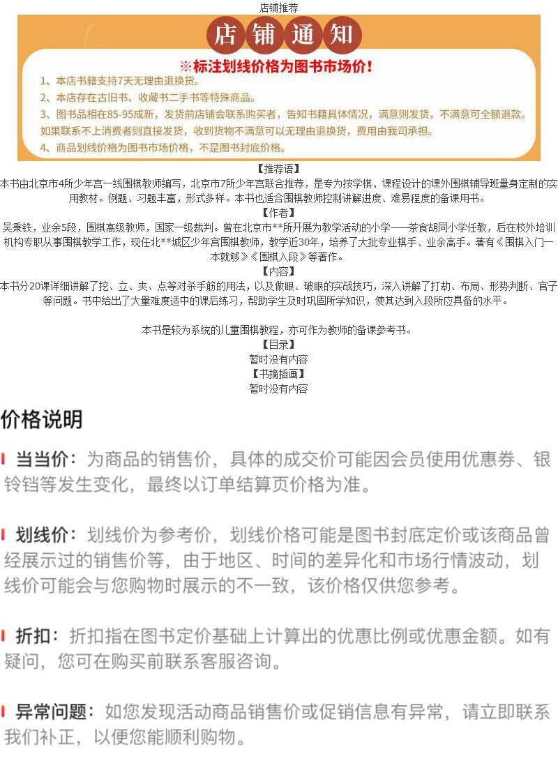 儿童围棋基础教程(入段篇)【正版书籍,满额减】