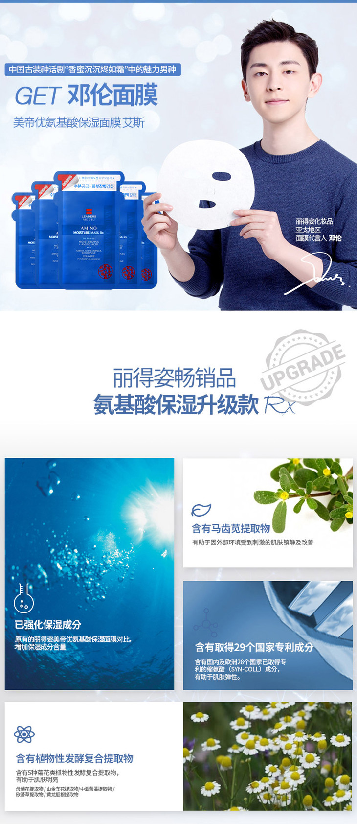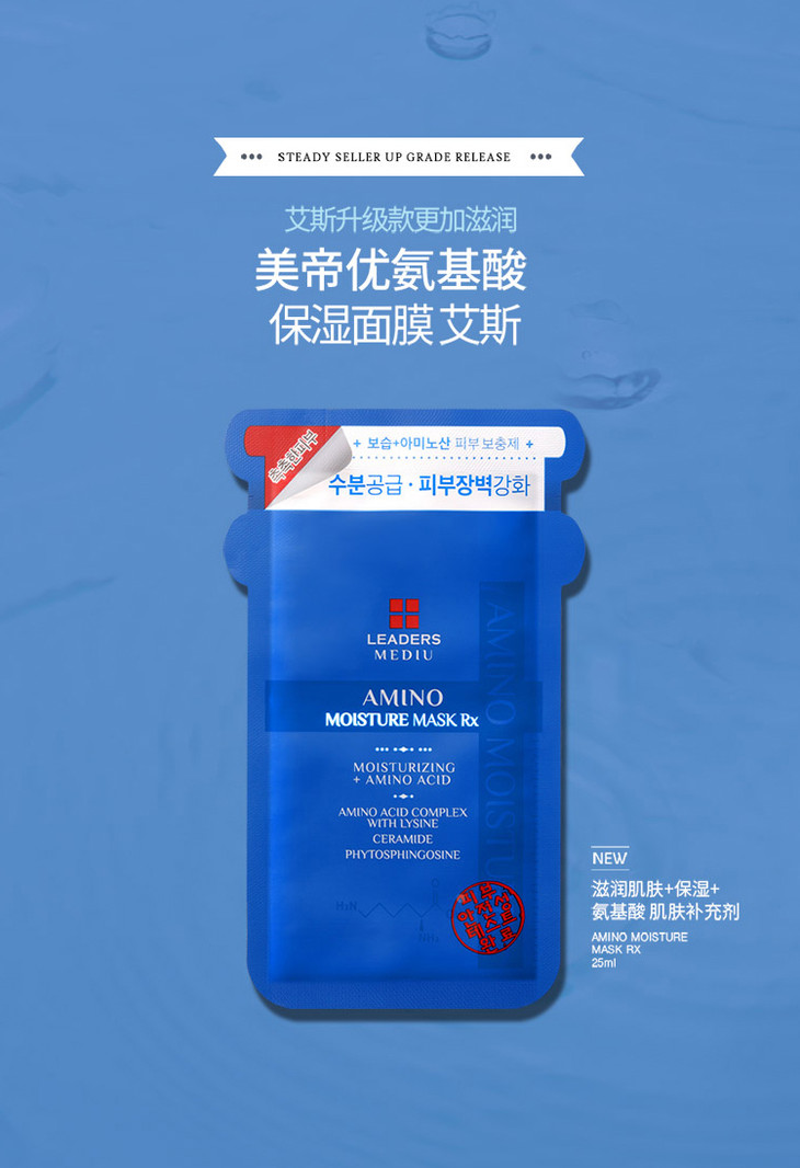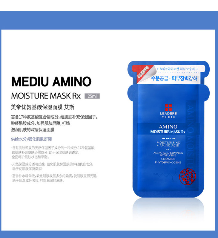 韩国Leaders丽得姿 第三代美水库保湿面膜 每盒10片。麗得姿補水面膜來啦😼,男女都能用[Clap] Leaders麗得姿美蒂優氨基酸補水面膜㊙️,豐富的綜合氨基酸與皮膚角質層的氨基酸分比率相似💦,採用阿爾卑斯水,含有多種礦物質,✨成分自然,補水保濕❄️