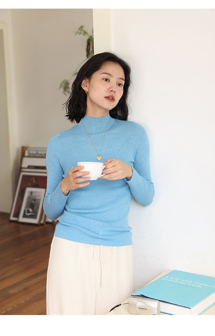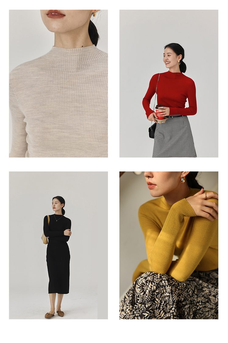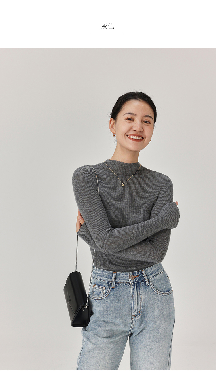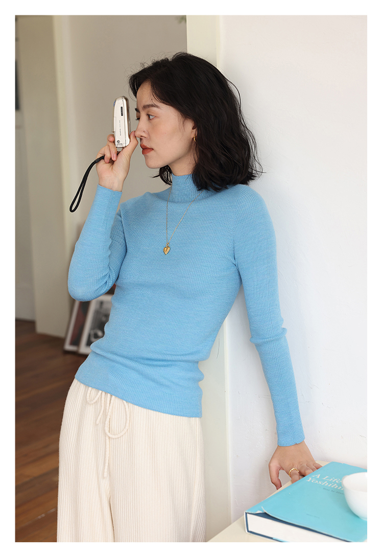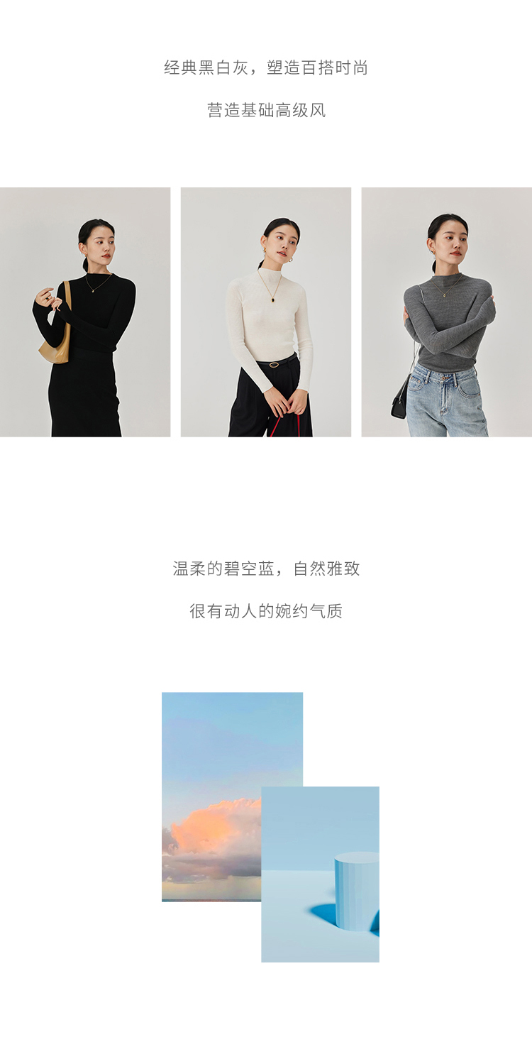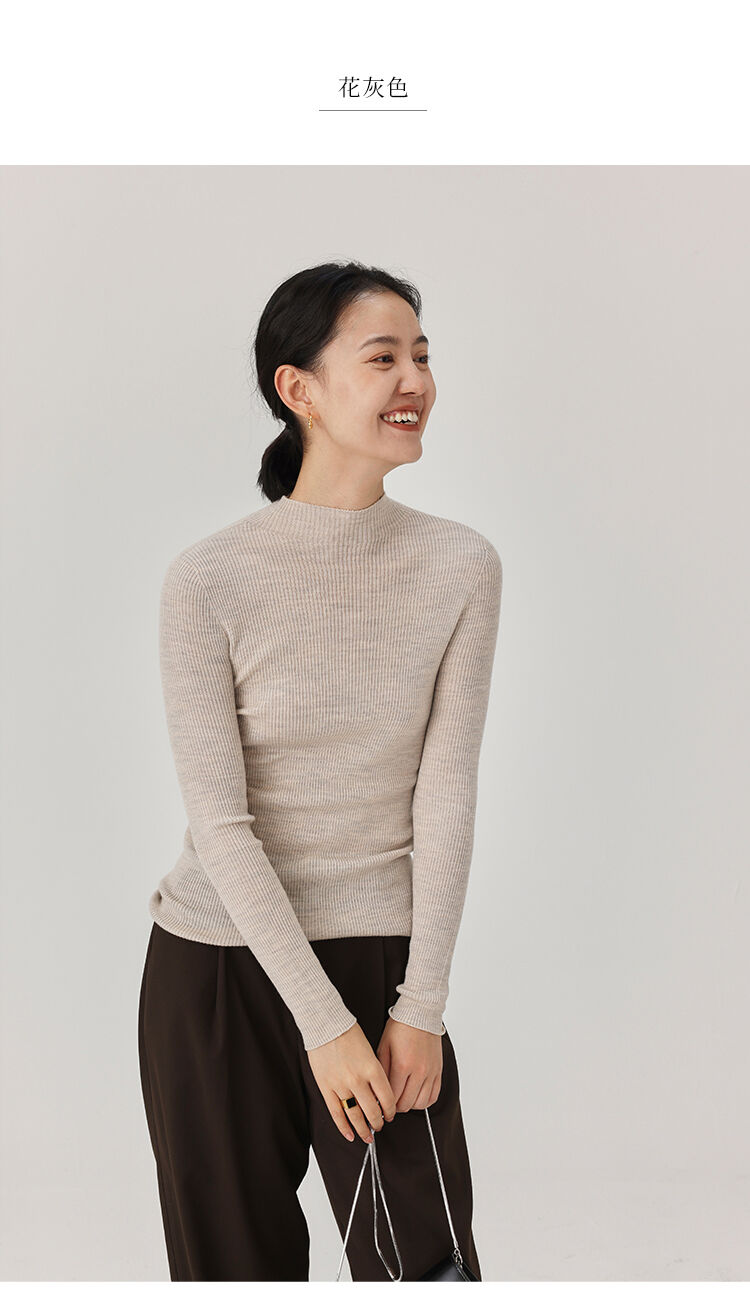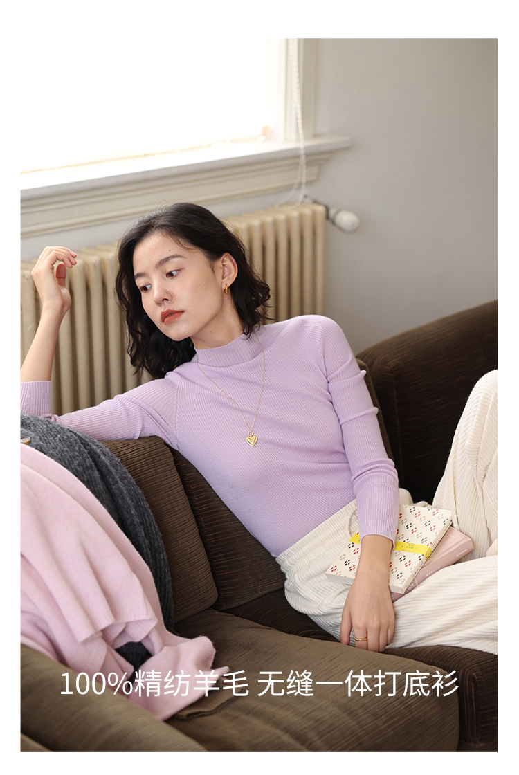 HeyDress半高领羊毛针织衫女秋冬修身扬子纱打底衫无缝一体毛衣