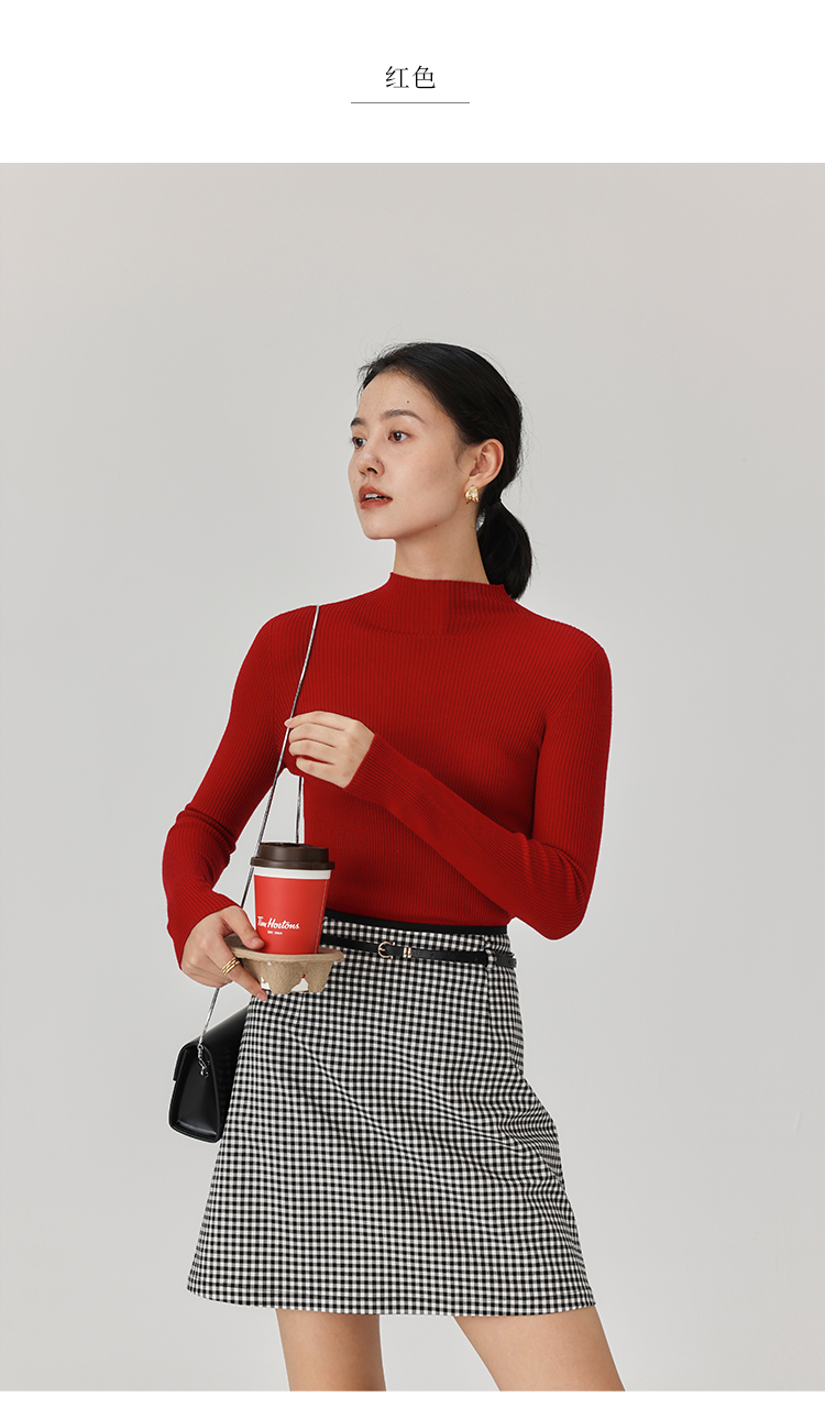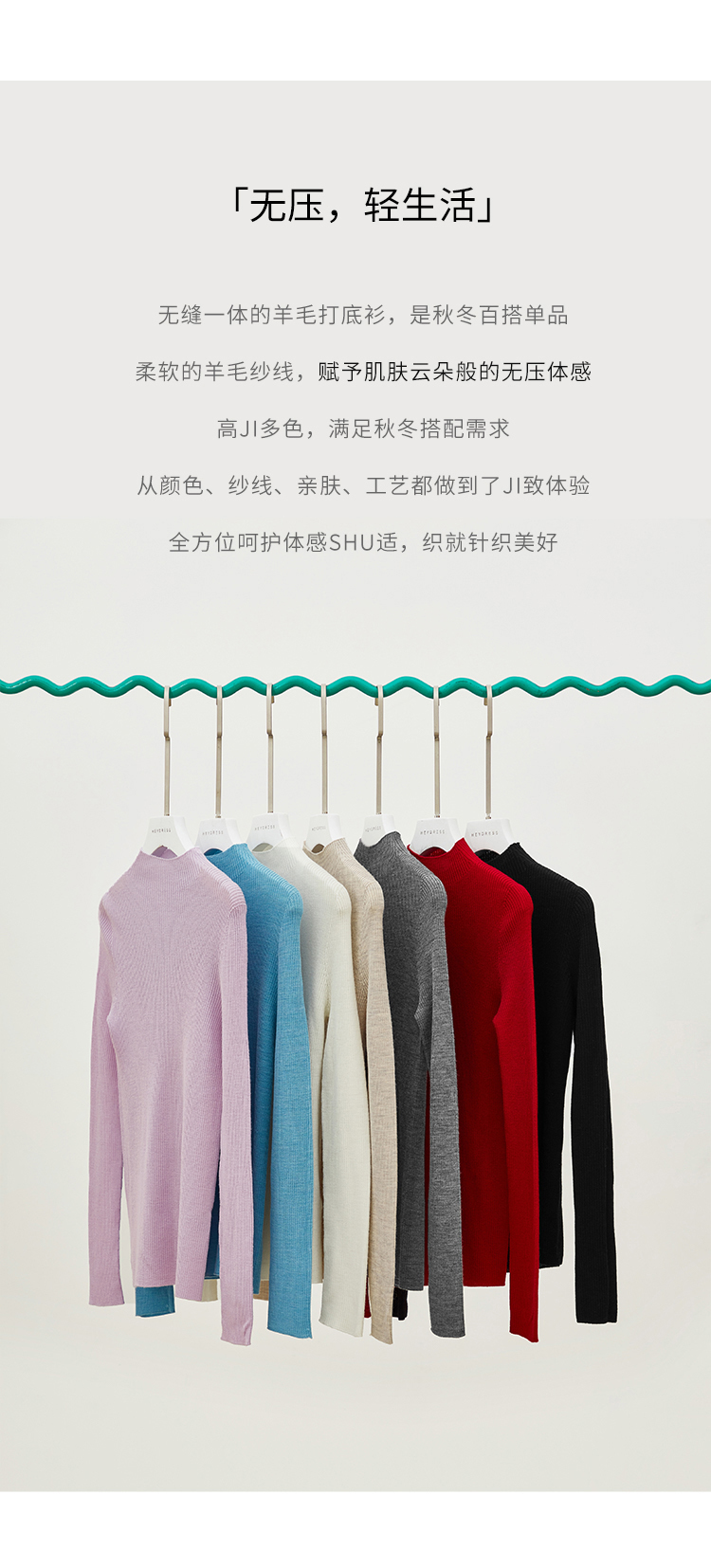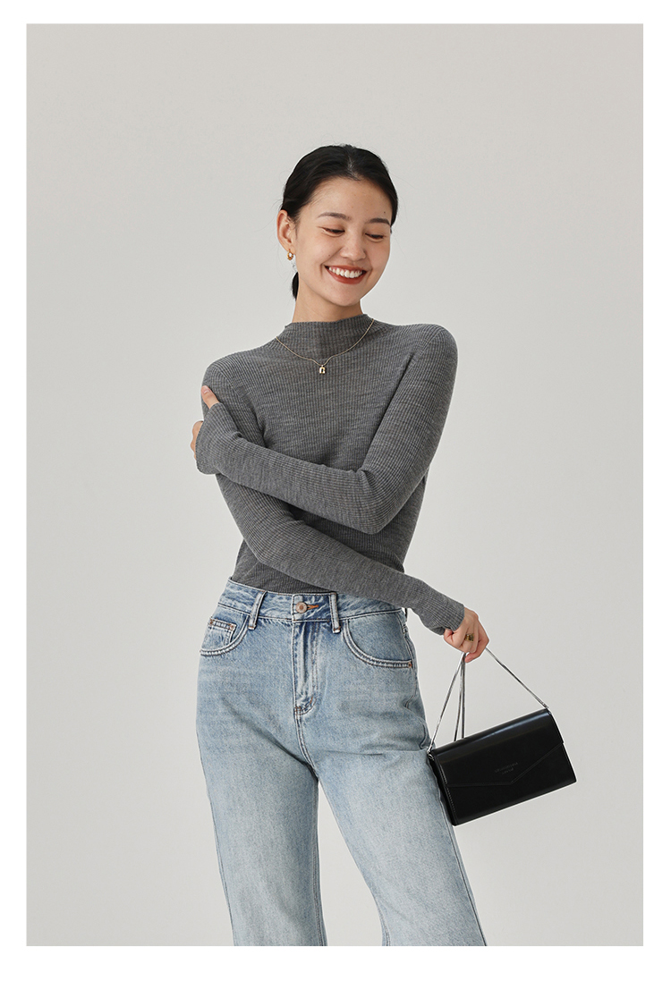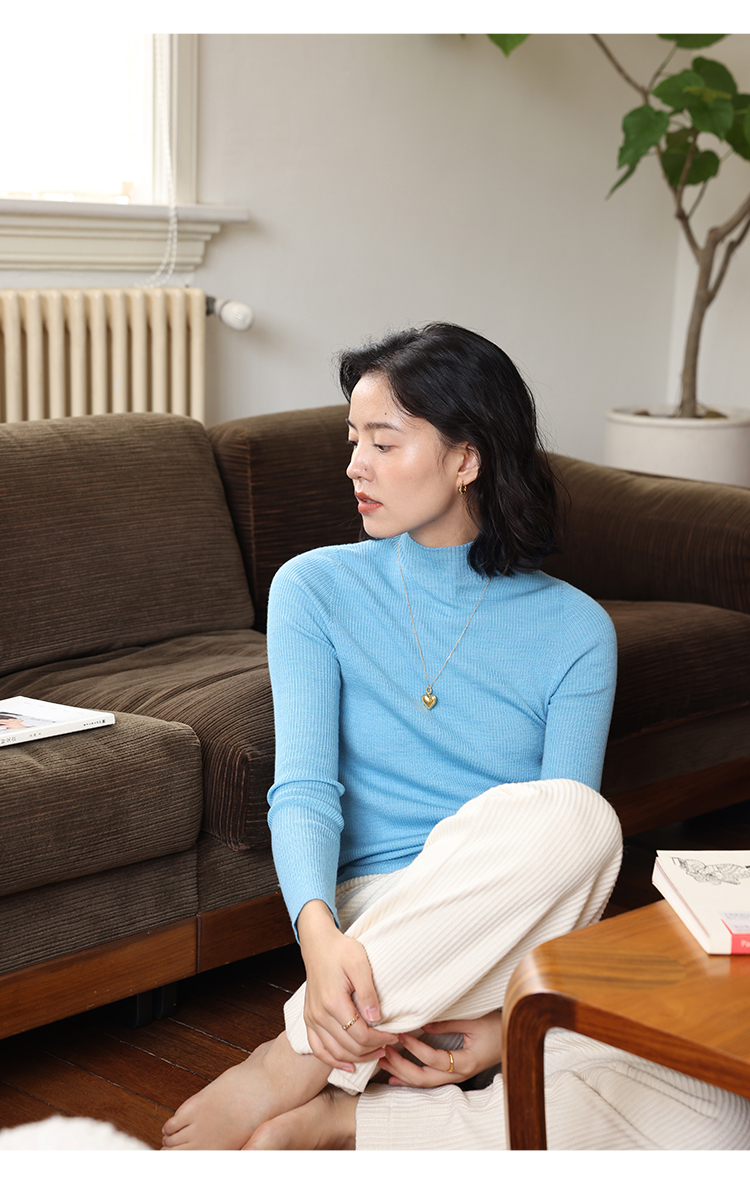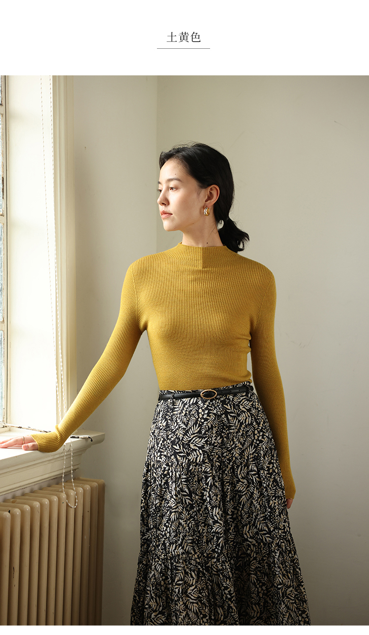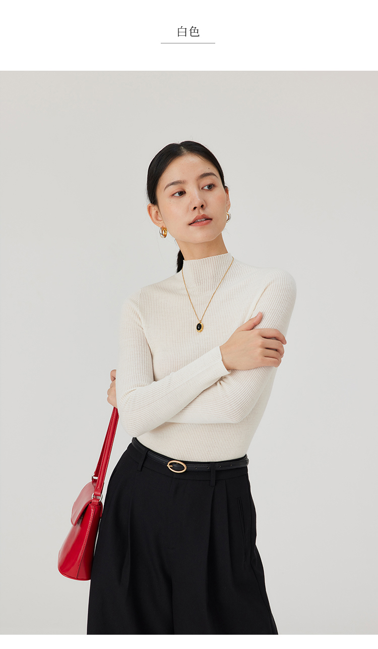 HeyDress半高领羊毛针织衫女秋冬修身扬子纱打底衫无缝一体毛衣