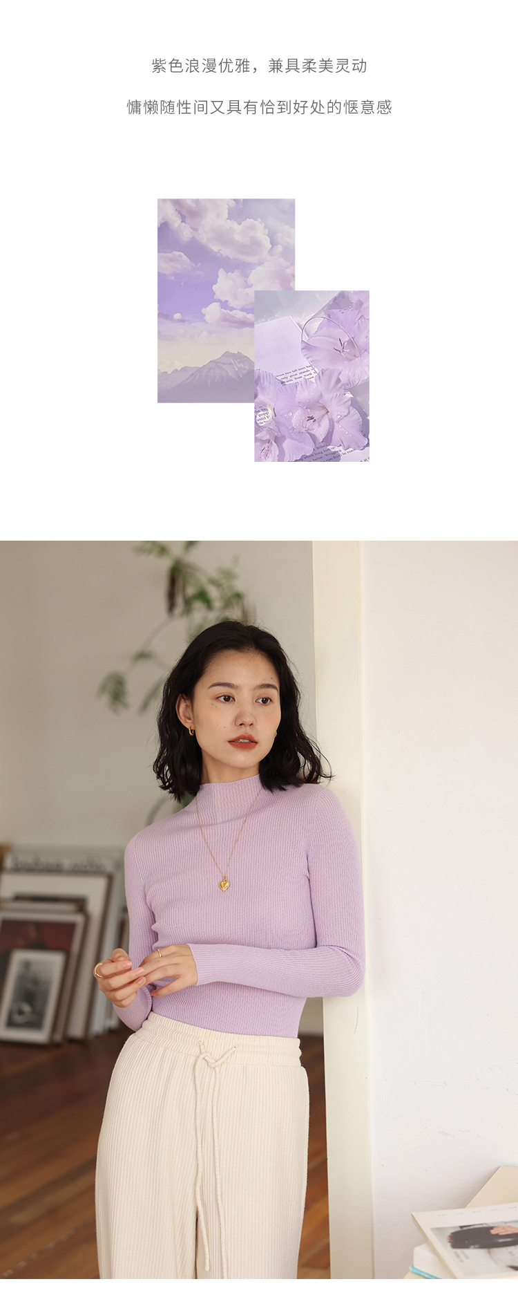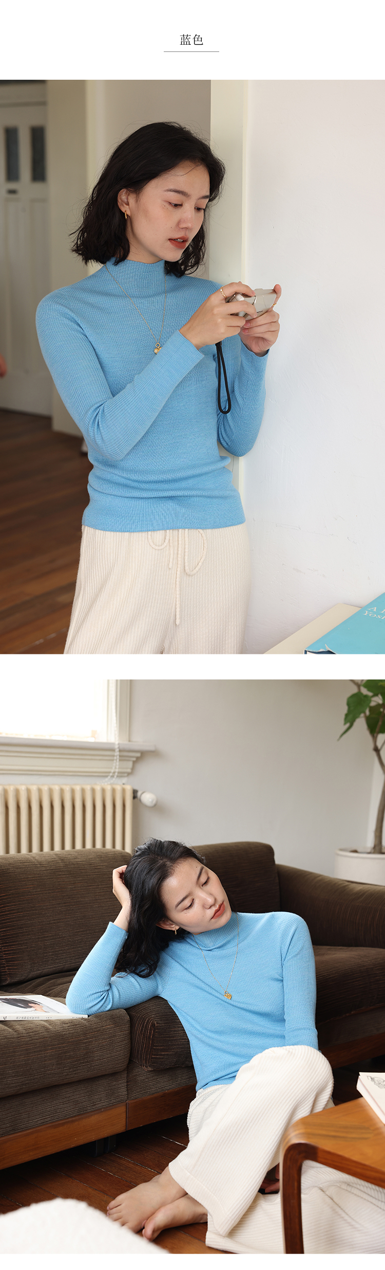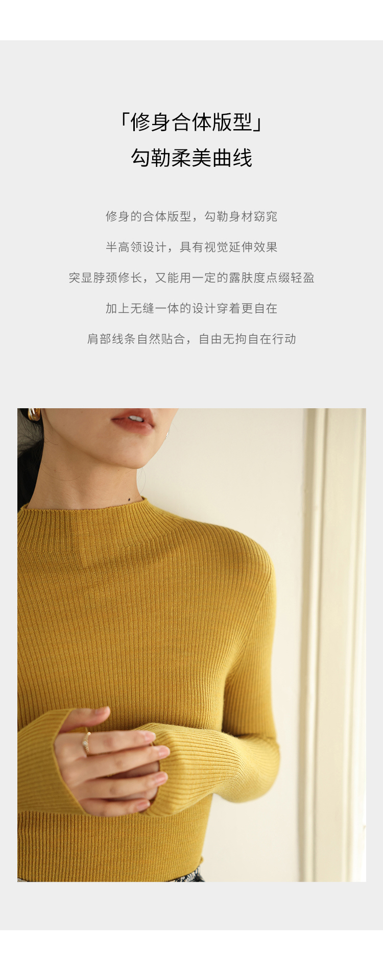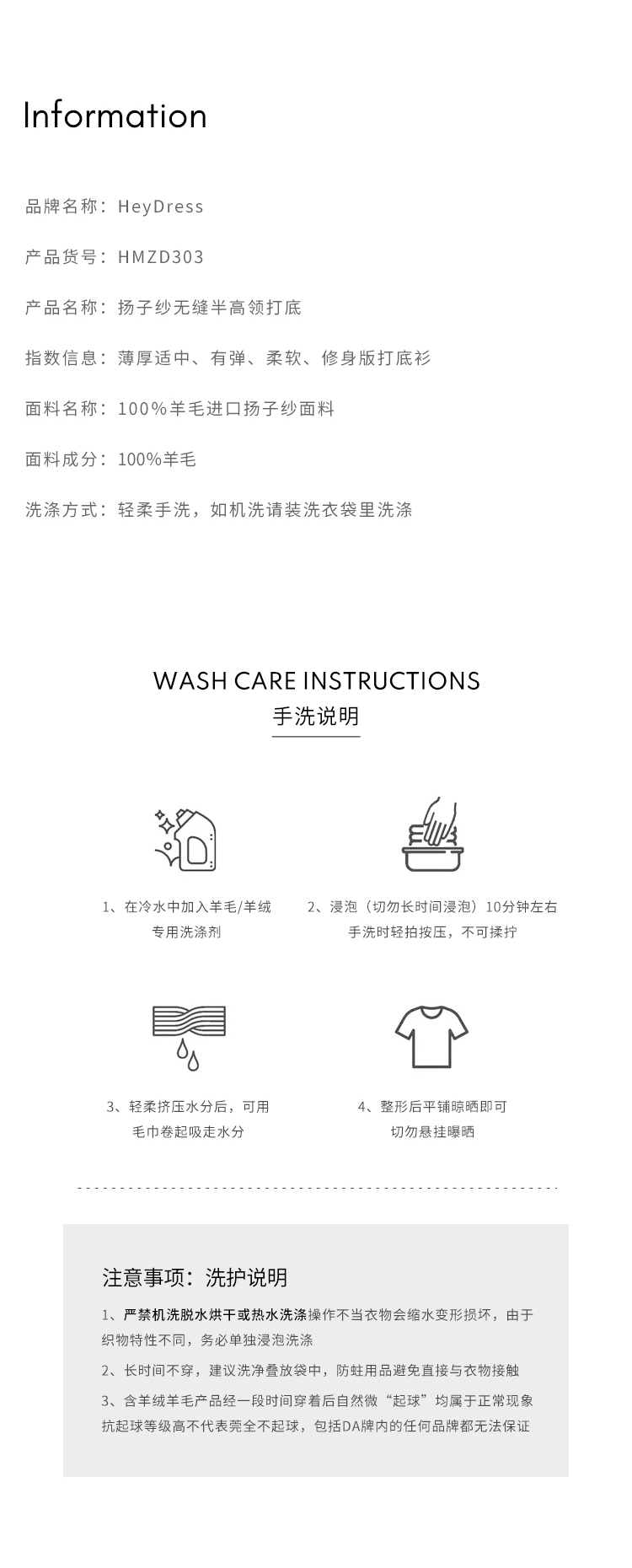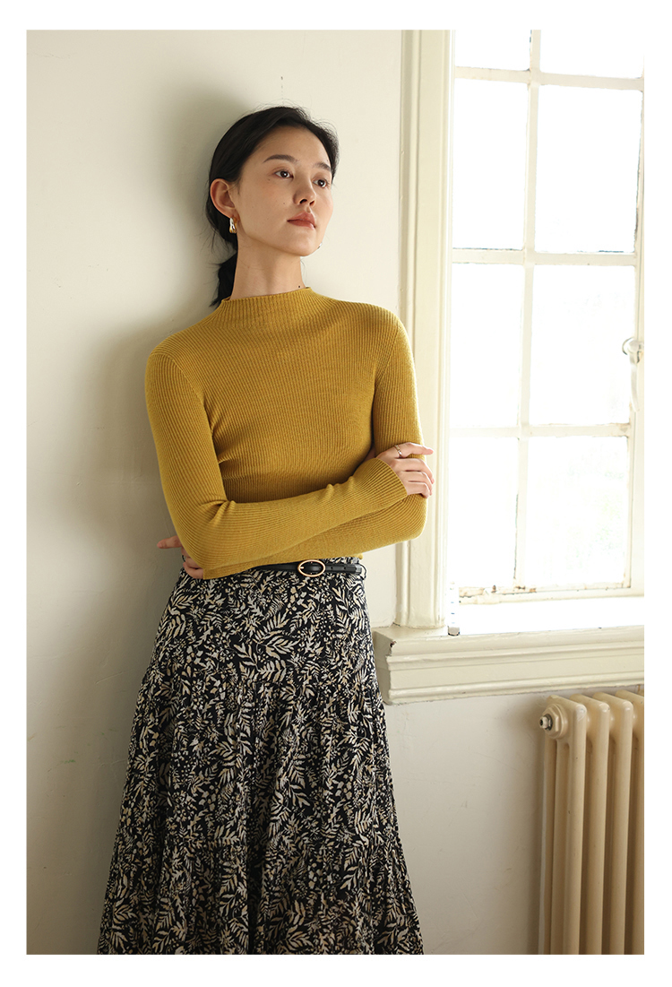 HeyDress半高领羊毛针织衫女秋冬修身扬子纱打底衫无缝一体毛衣