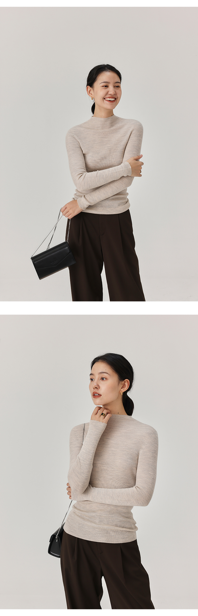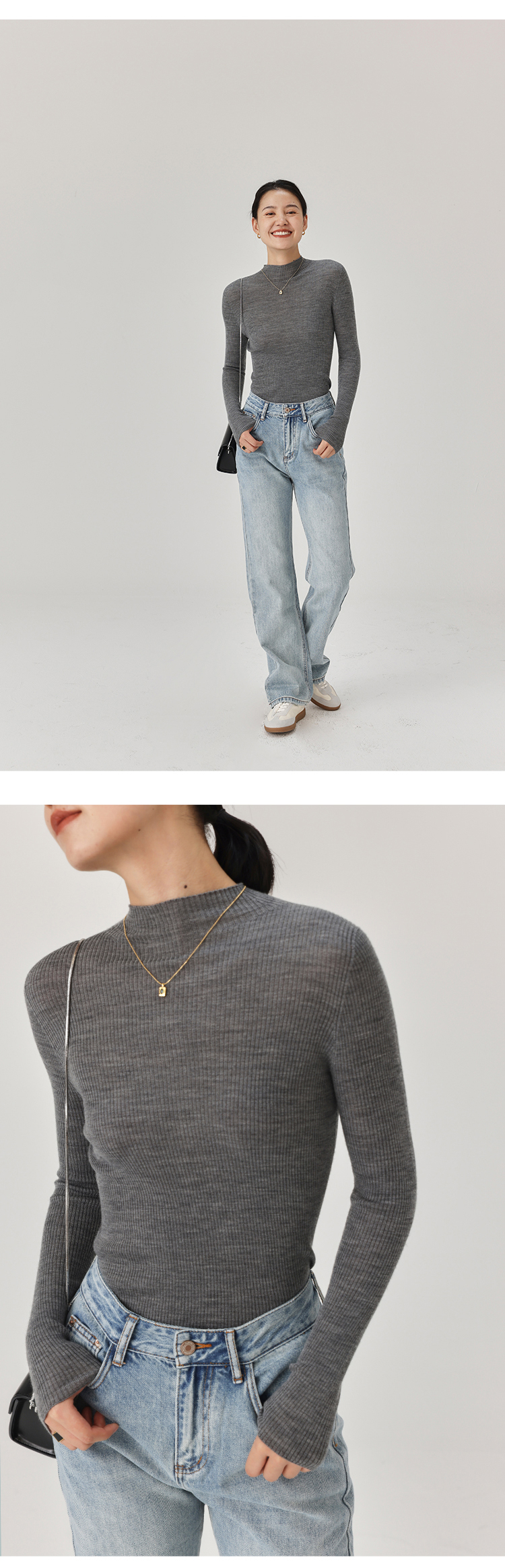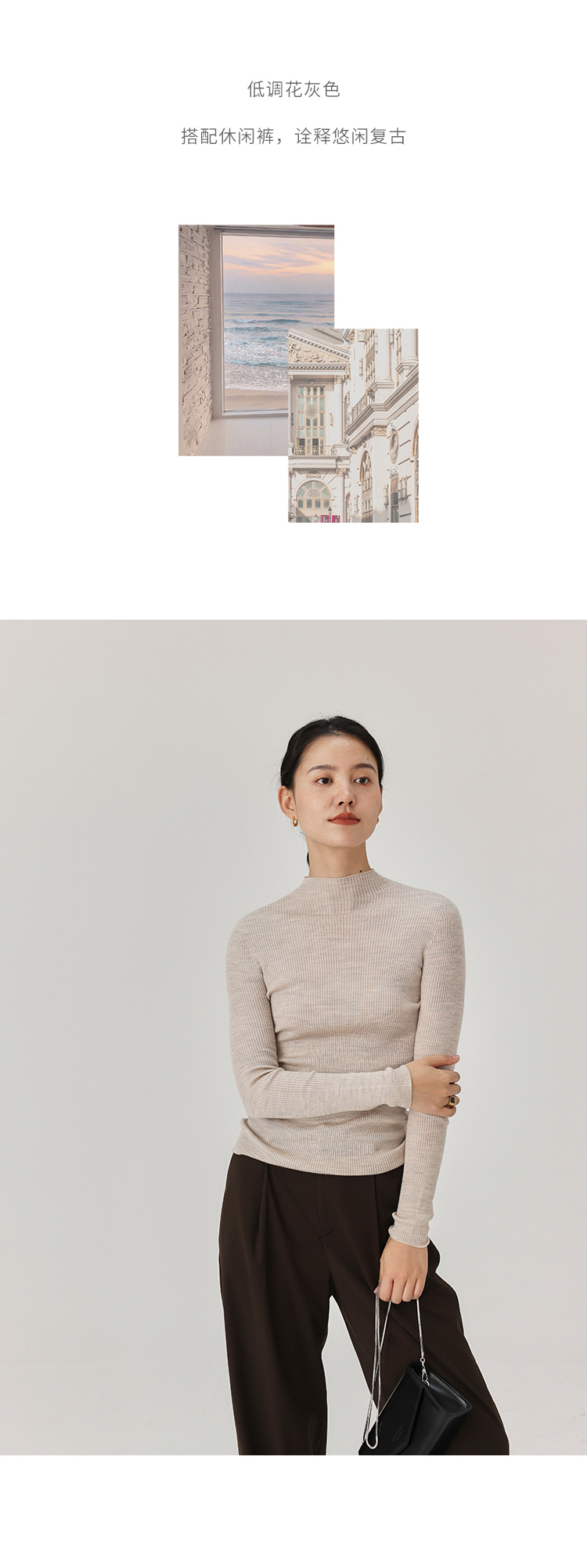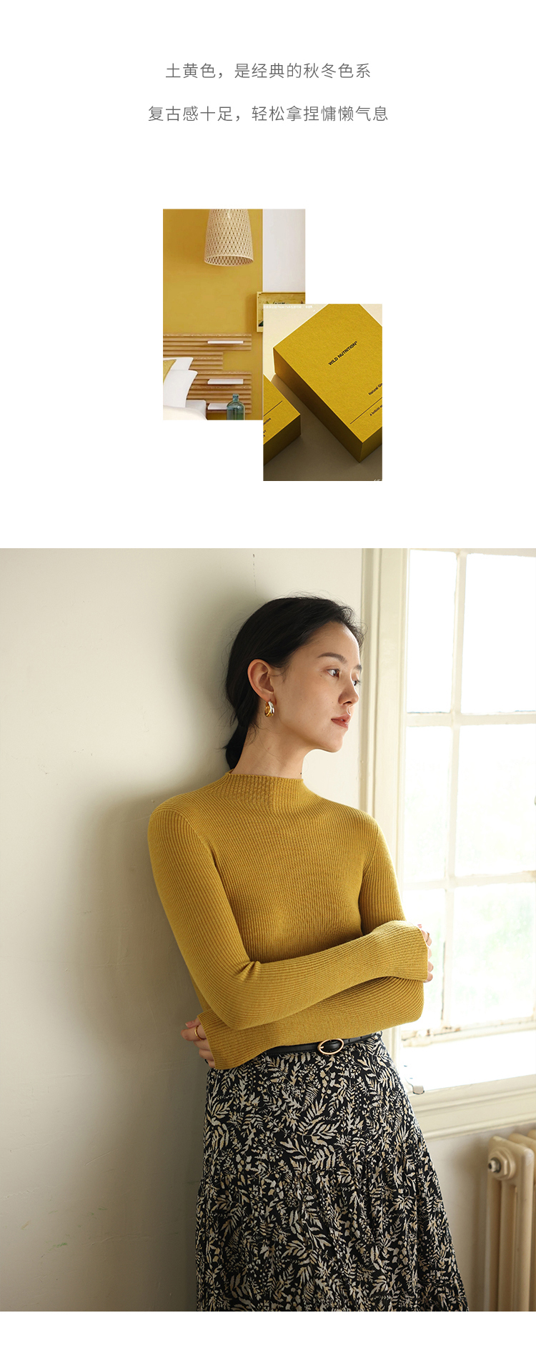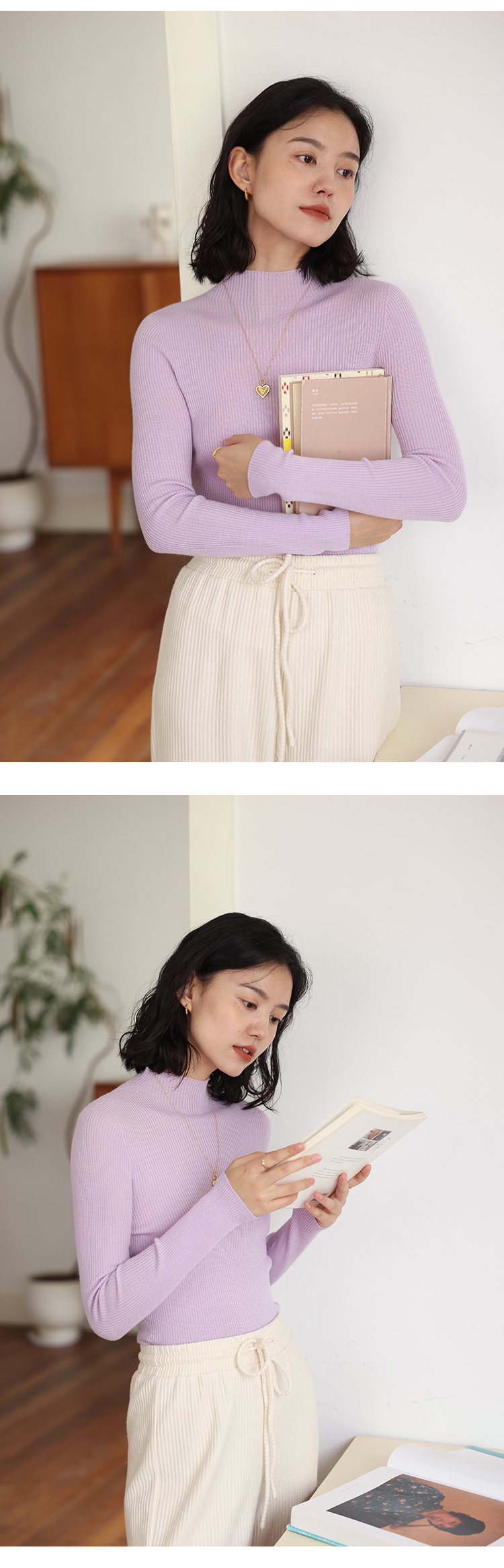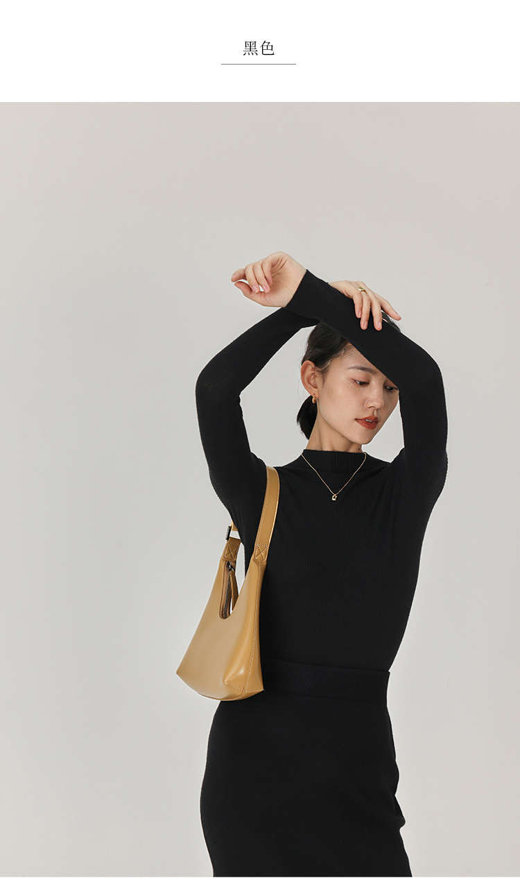 HeyDress半高领羊毛针织衫女秋冬修身扬子纱打底衫无缝一体毛衣