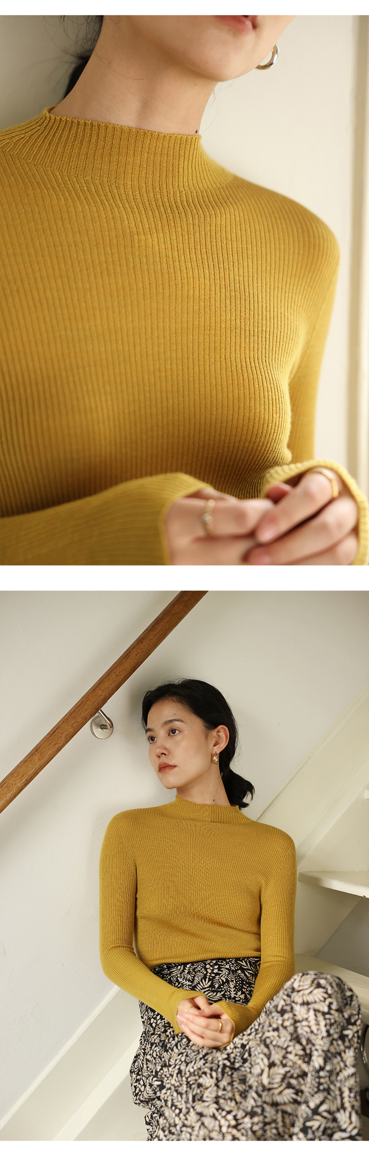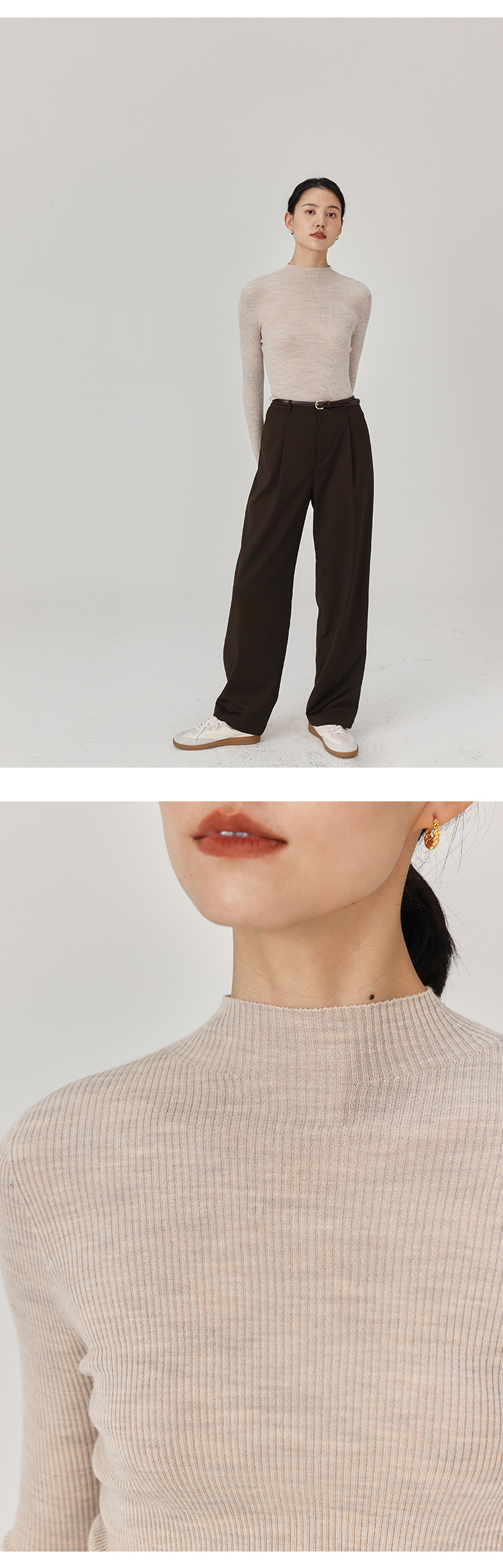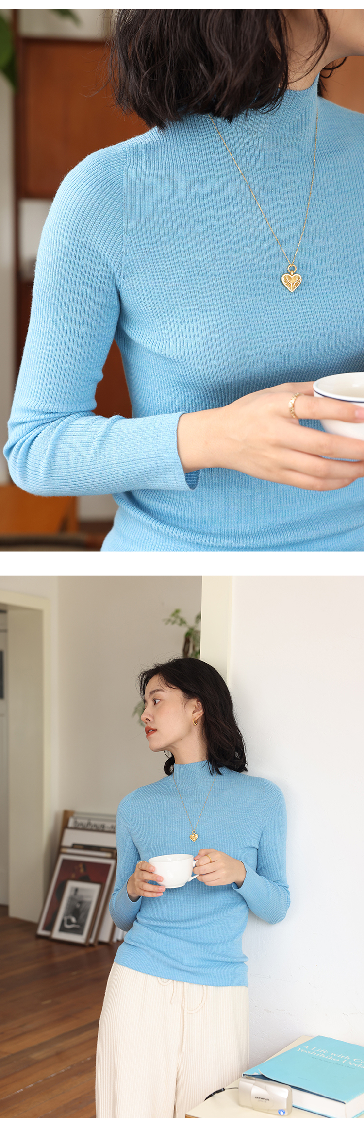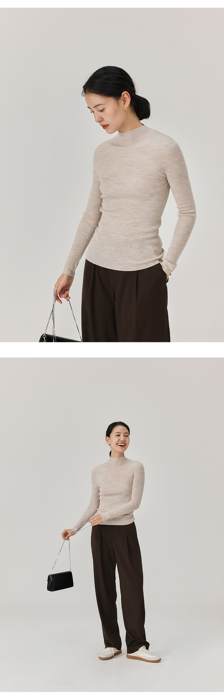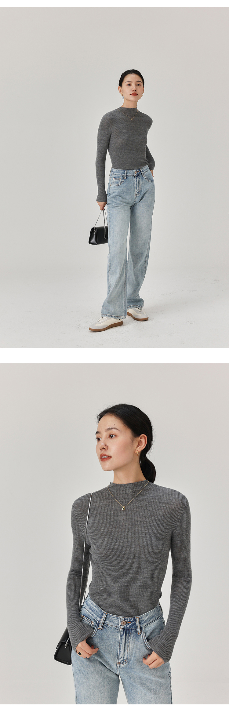 HeyDress半高领羊毛针织衫女秋冬修身扬子纱打底衫无缝一体毛衣