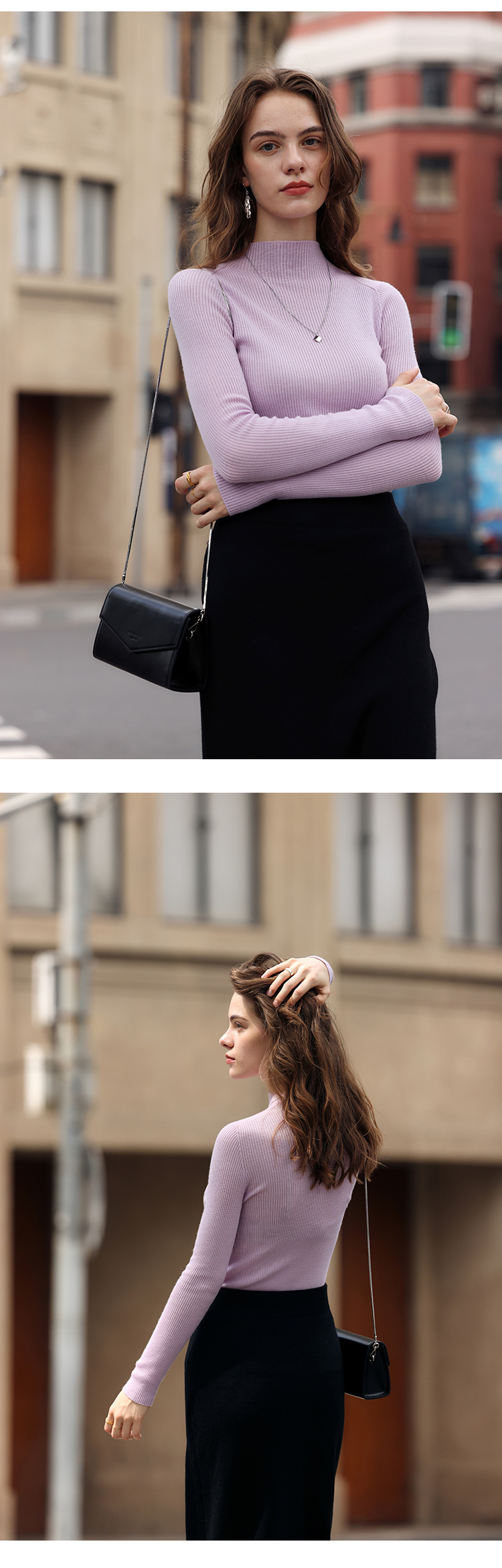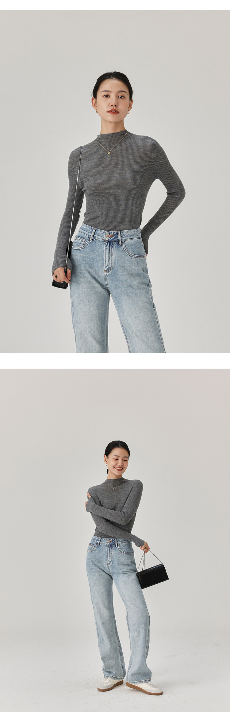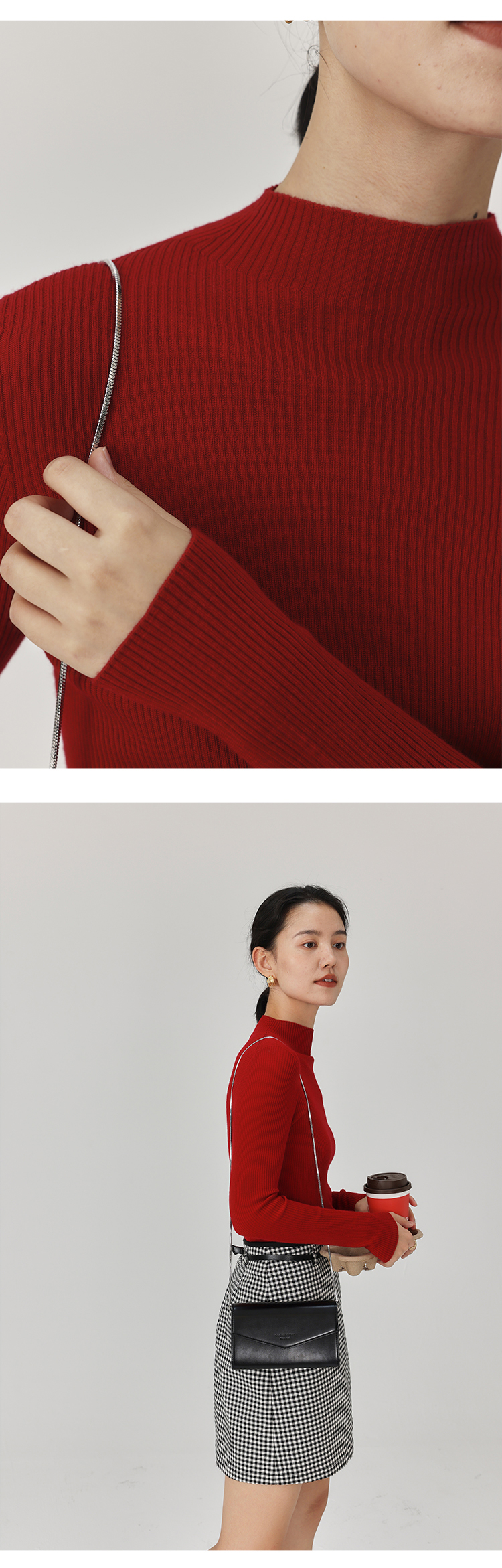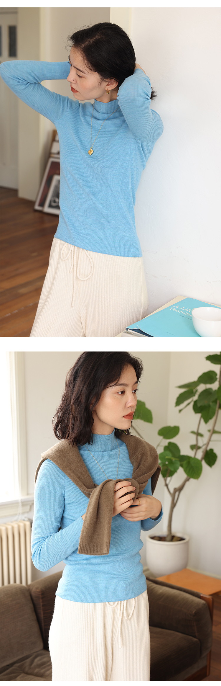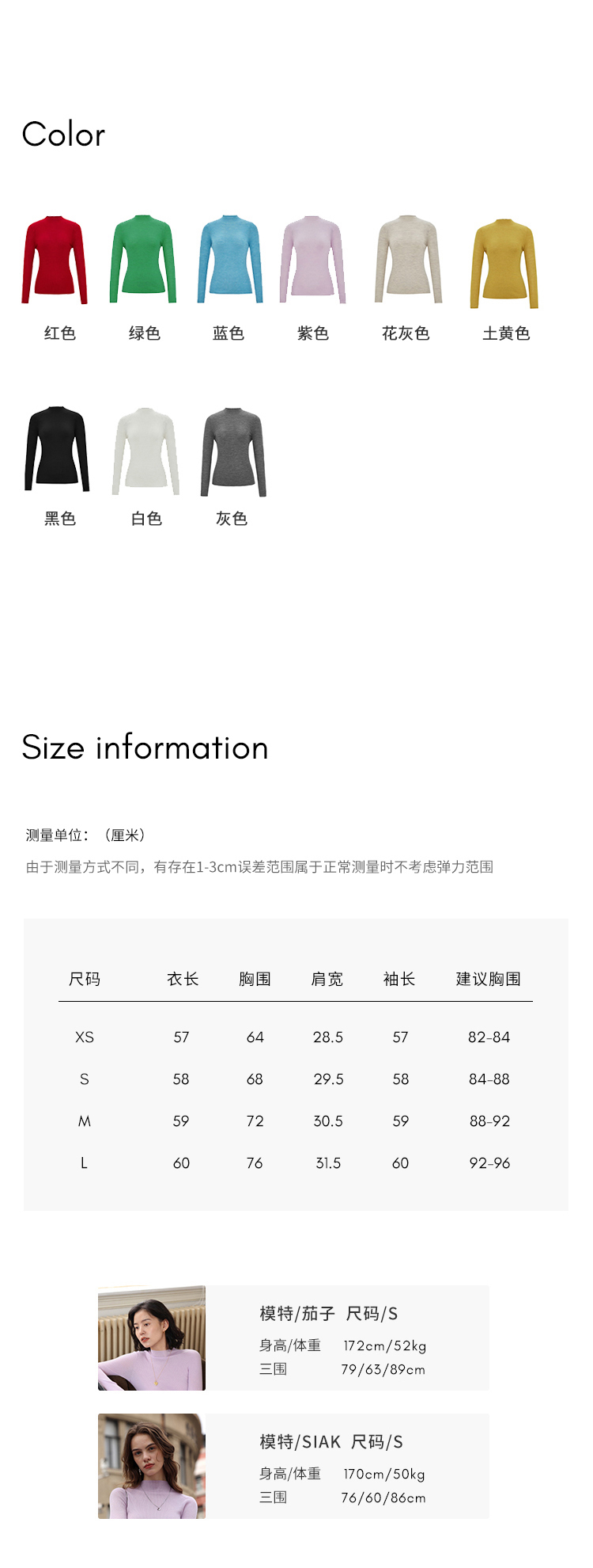 HeyDress半高领羊毛针织衫女秋冬修身扬子纱打底衫无缝一体毛衣