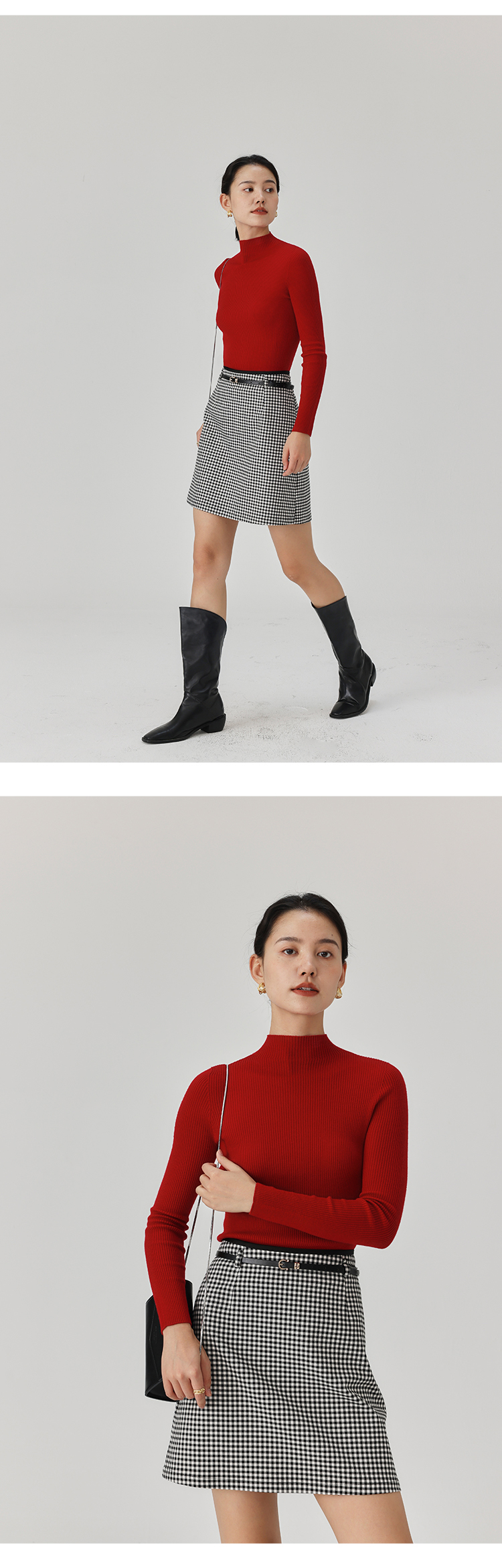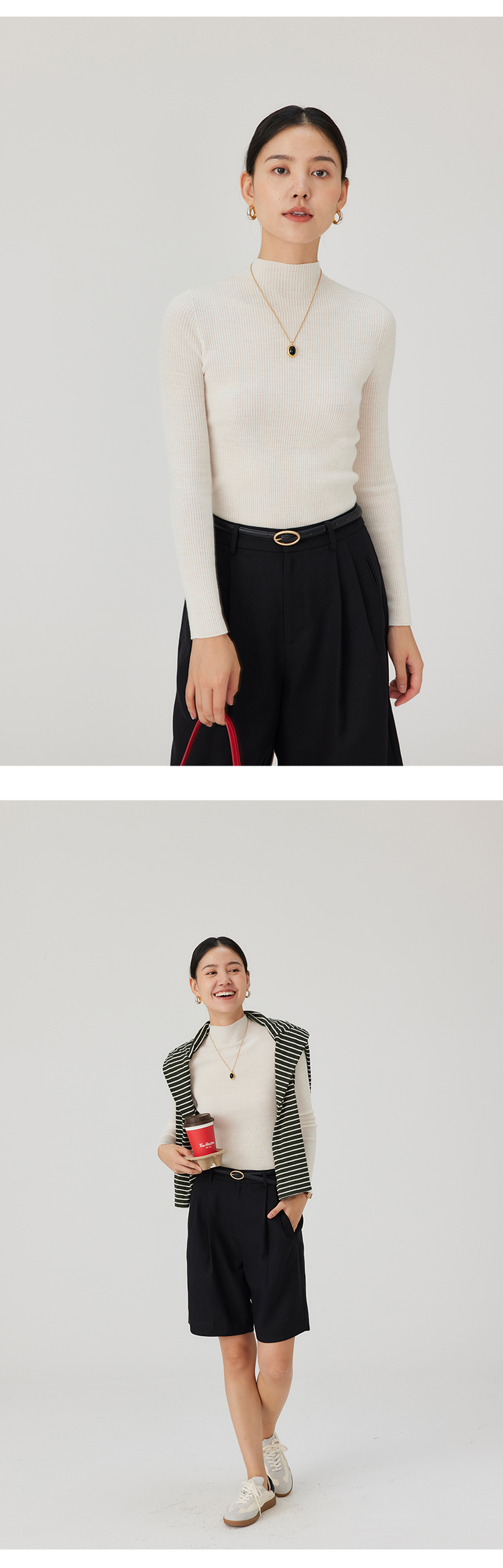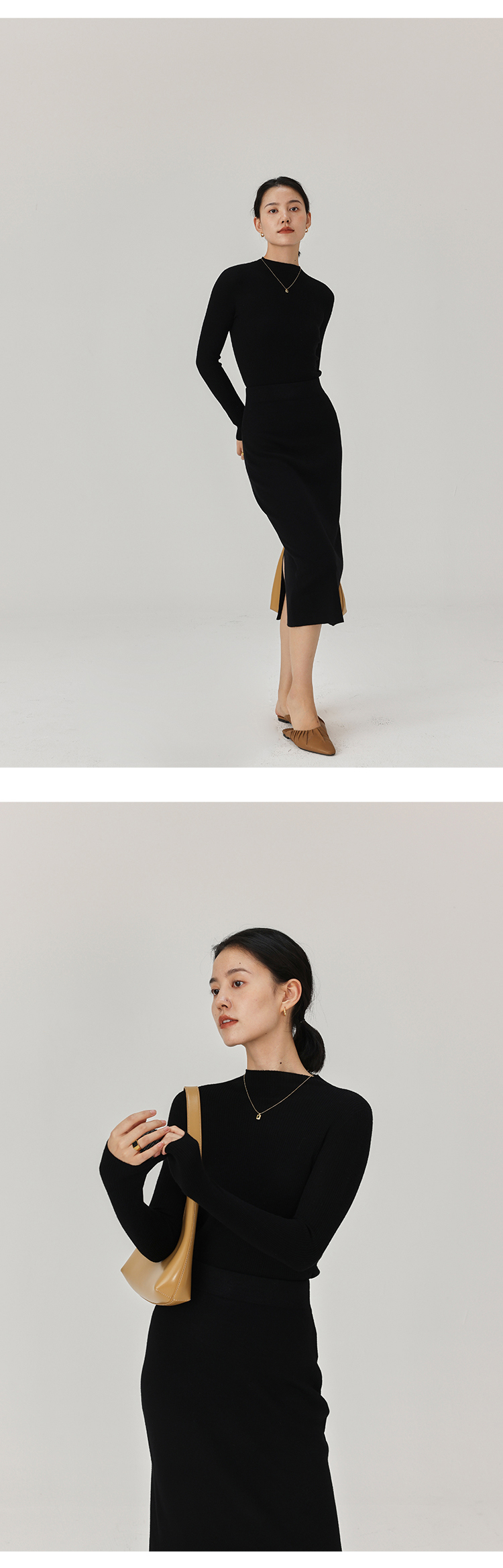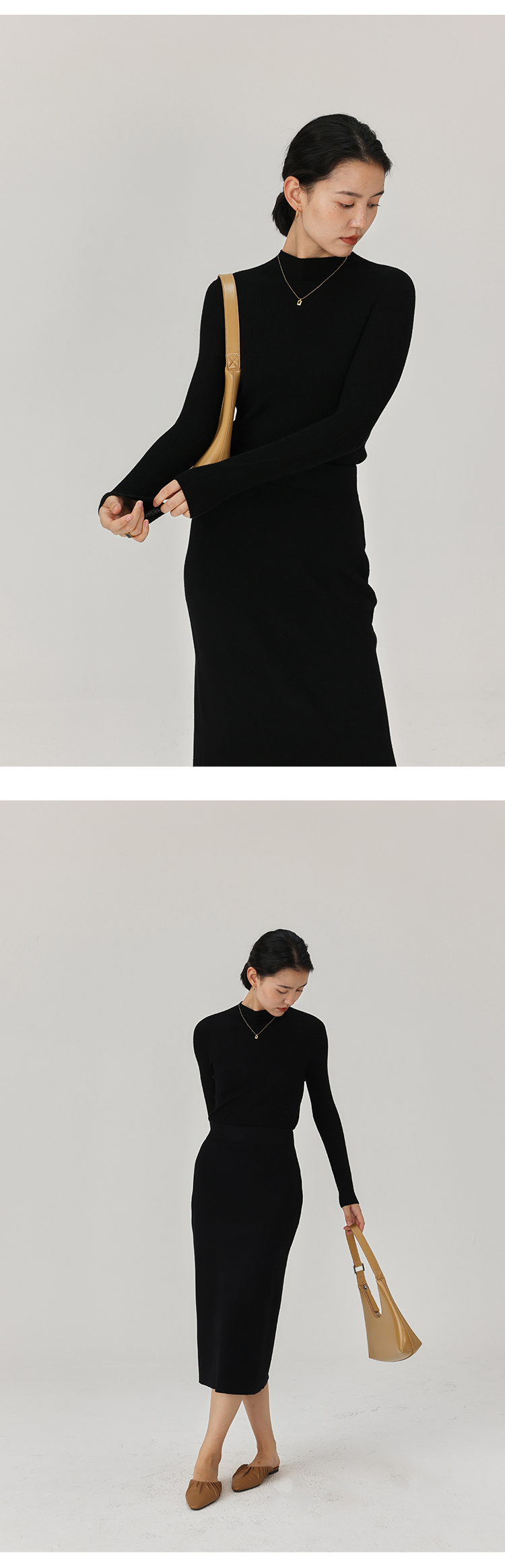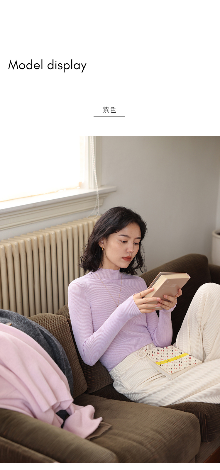 HeyDress半高领羊毛针织衫女秋冬修身扬子纱打底衫无缝一体毛衣