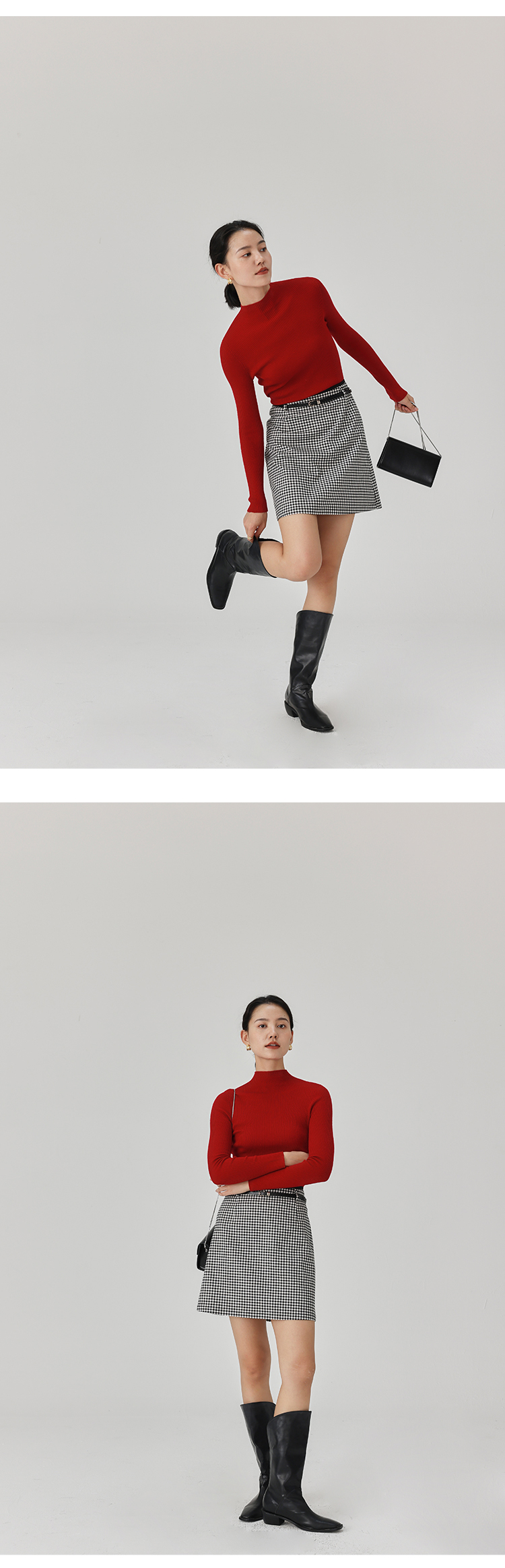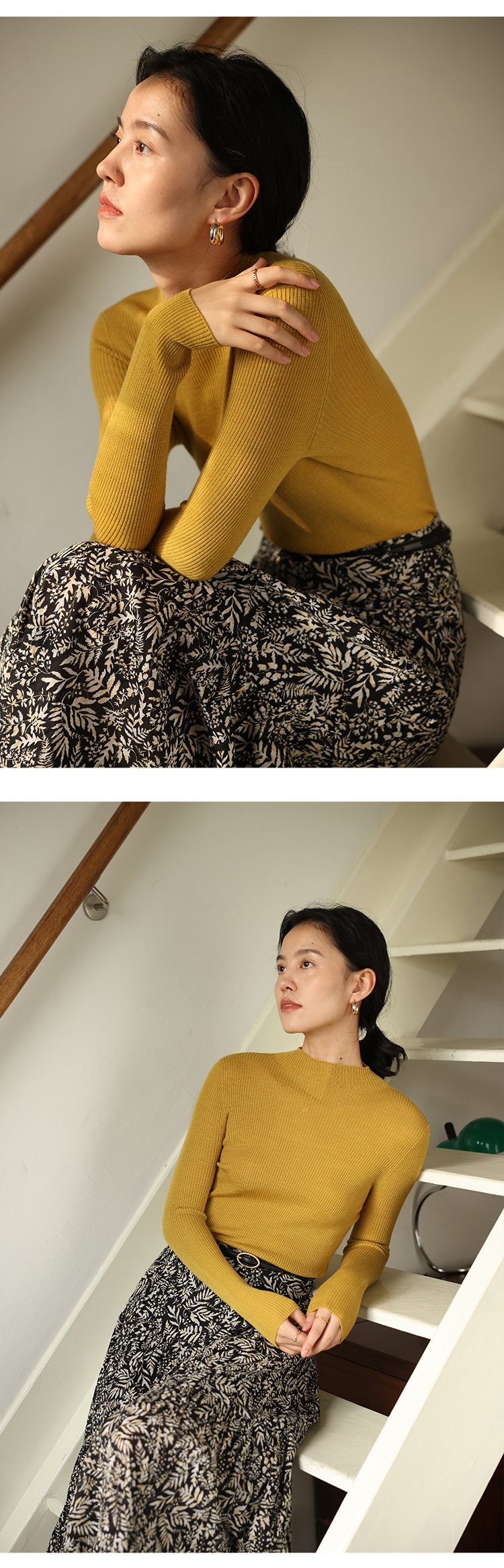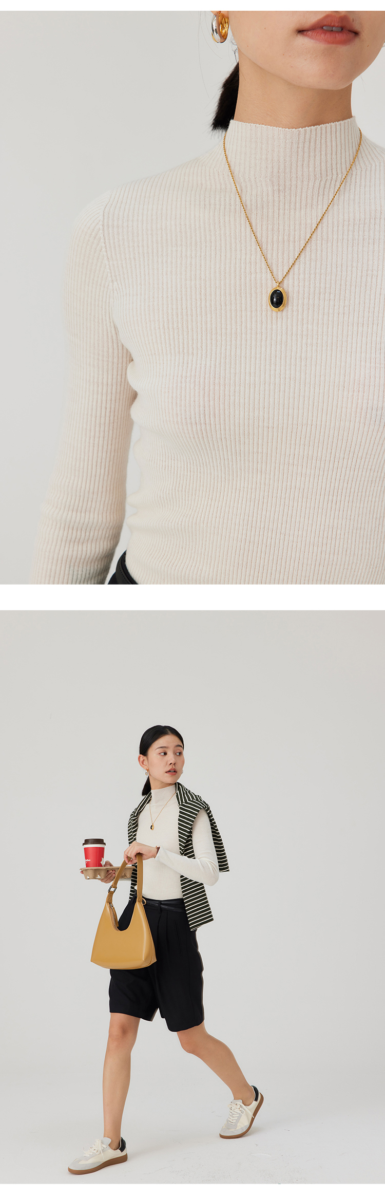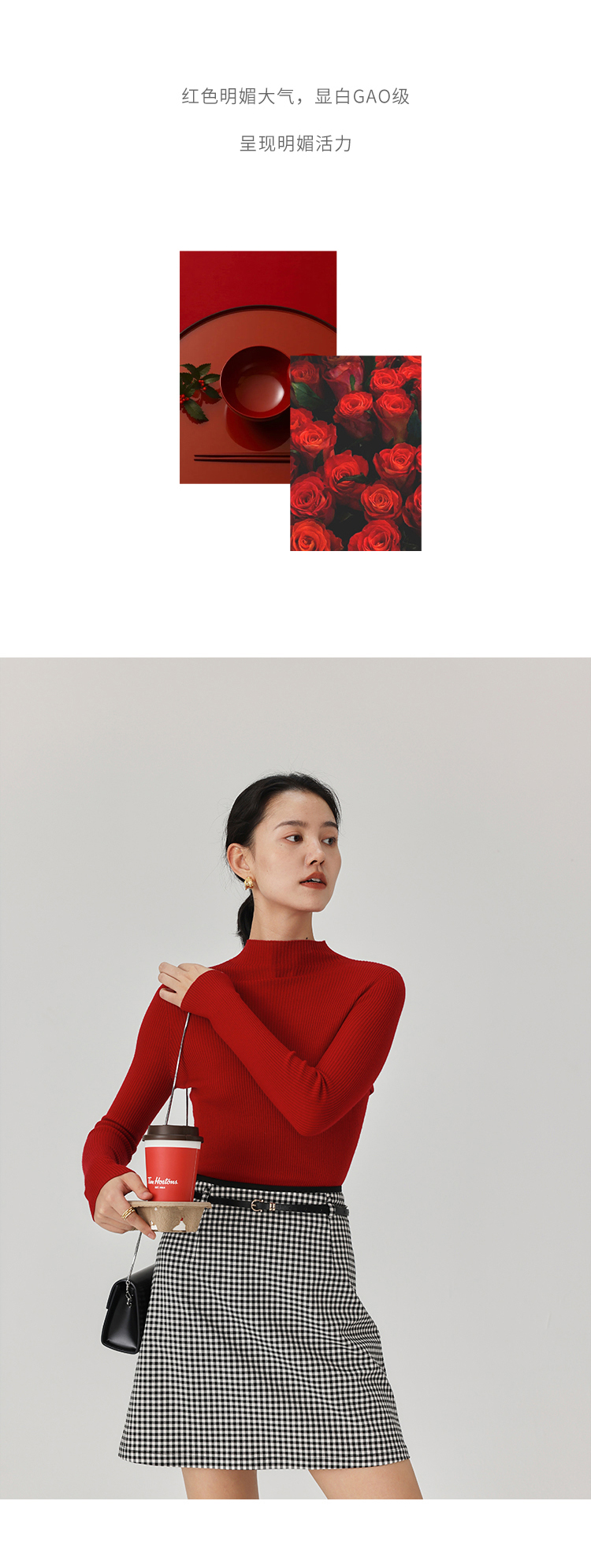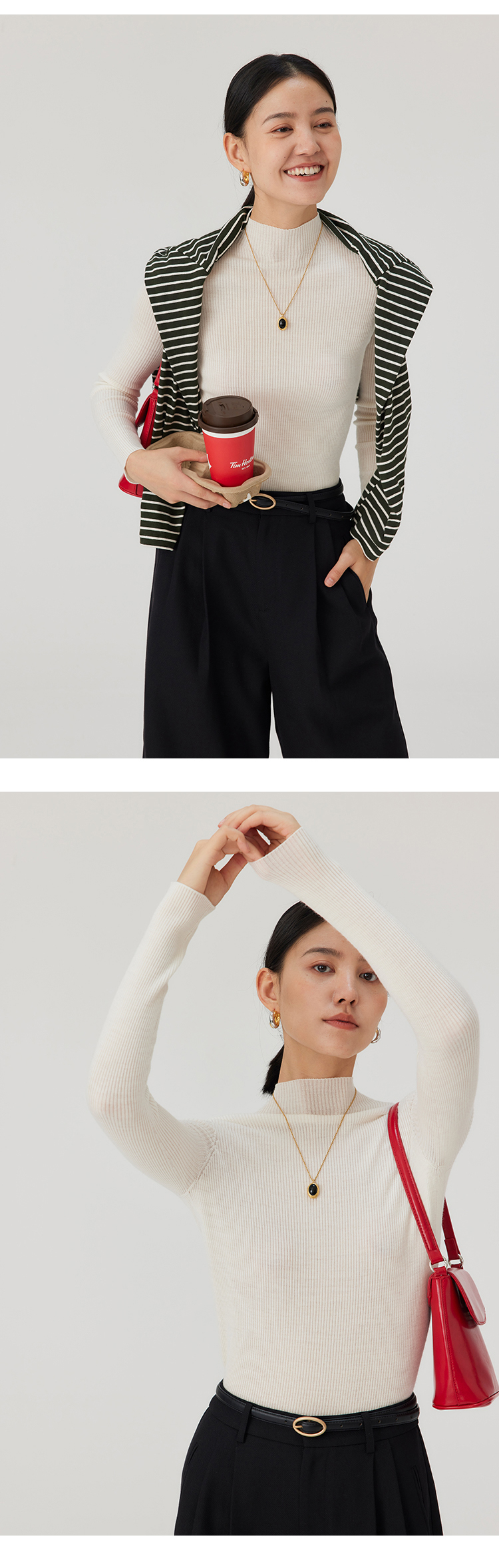 HeyDress半高领羊毛针织衫女秋冬修身扬子纱打底衫无缝一体毛衣