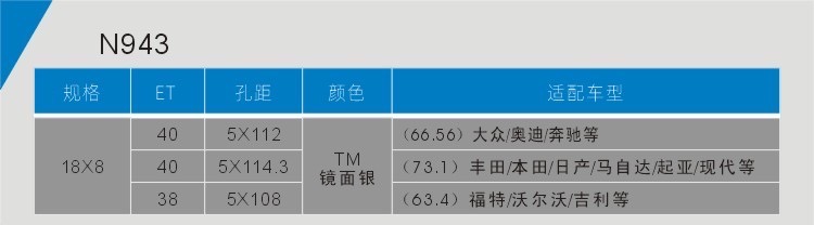 雅泛迪 N943 18寸 8J 旋压工艺 仅8.1KG 5*108/112/114.3