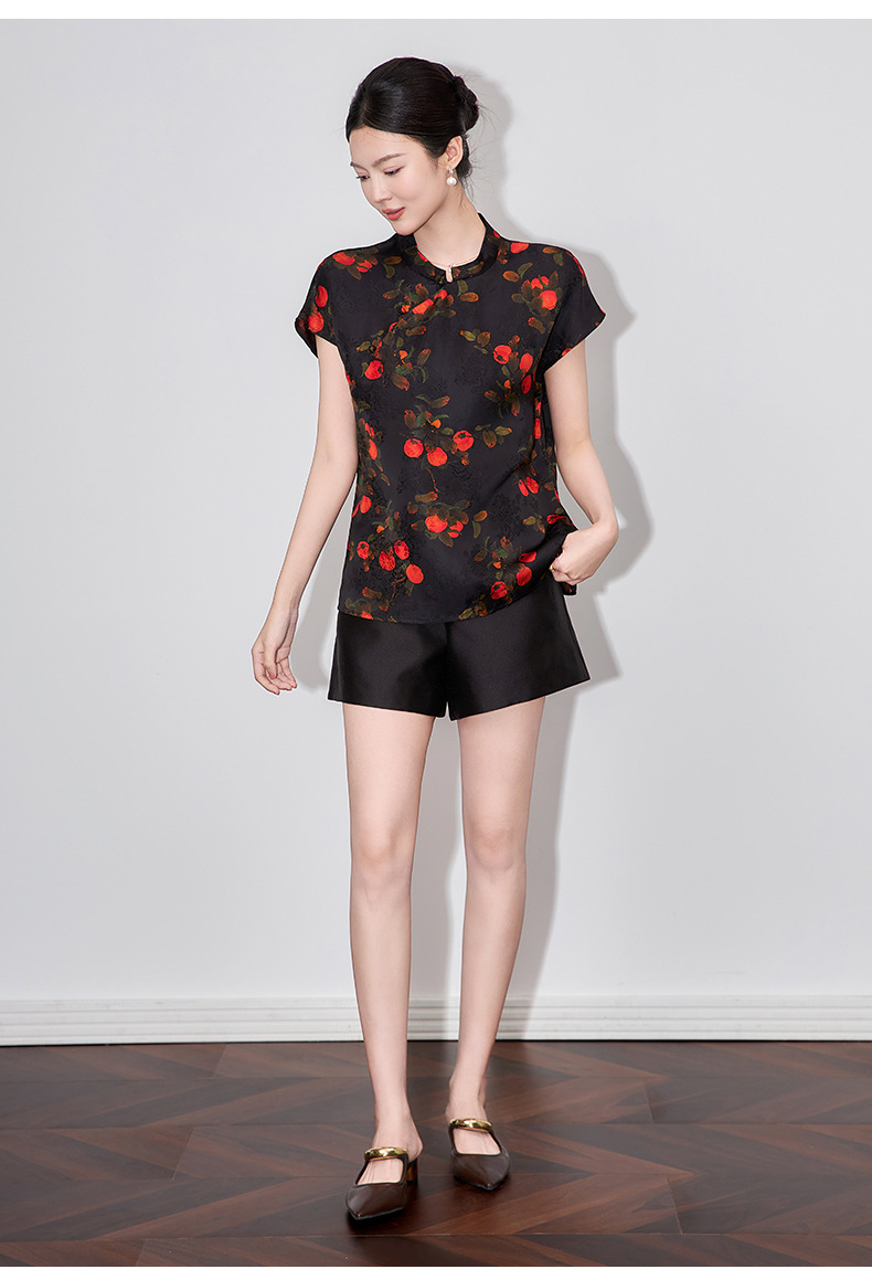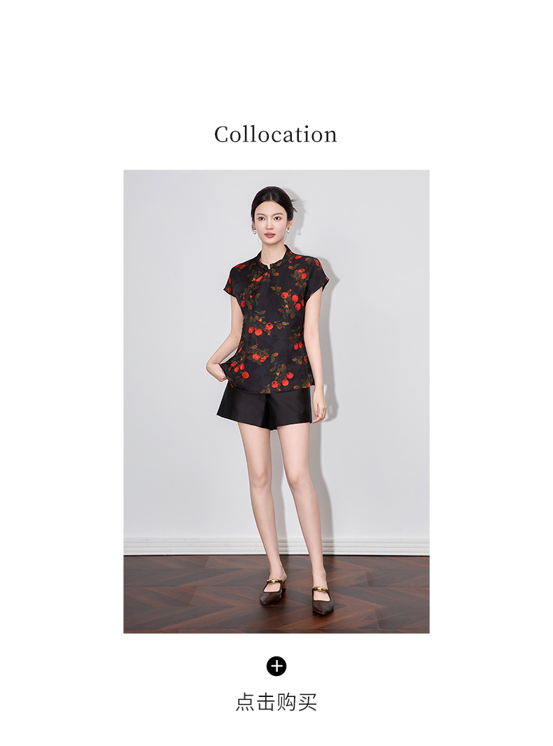 「高货wl」全新升级【铂金会员293/天猫389/差价96】(01120)洛诗琳夏季新款新中式国风香云纱立领旗袍扣复古上衣女