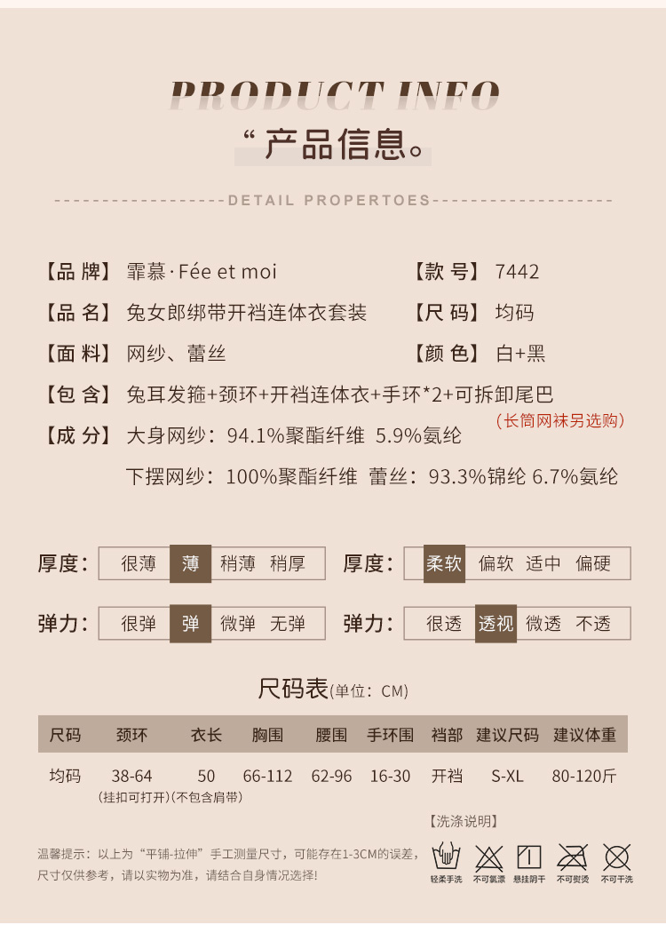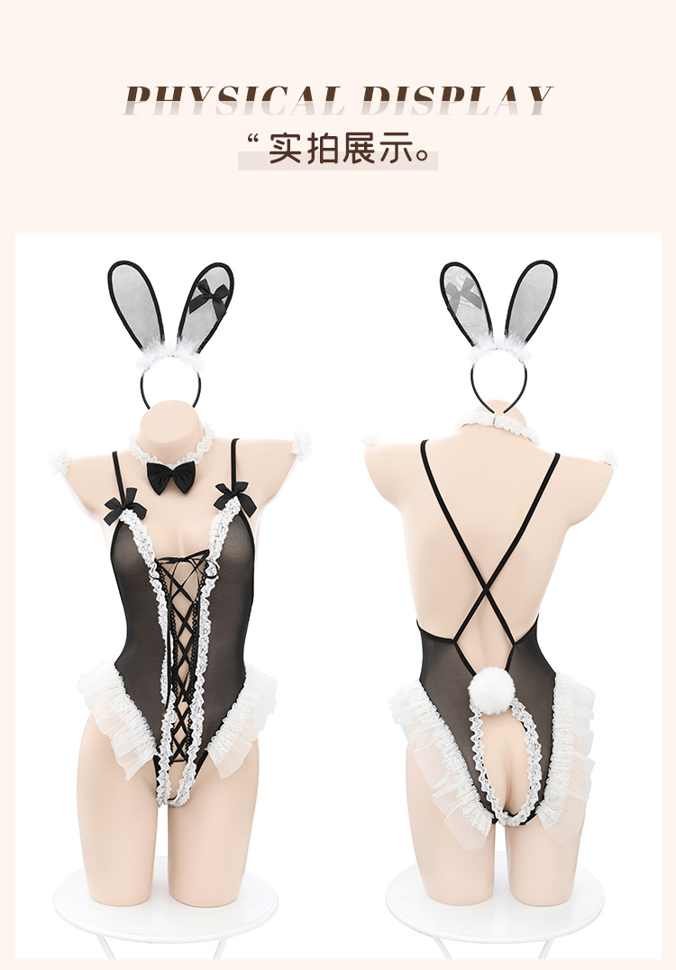 【绑带收胸 性感兔姐】霏慕 兔女郎绑带开裆连体衣套装 情趣内衣7442