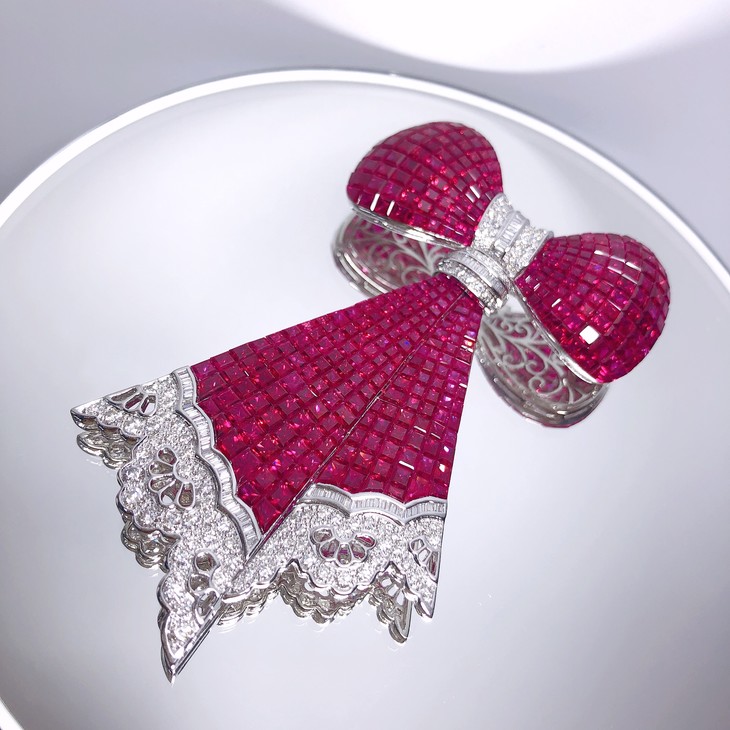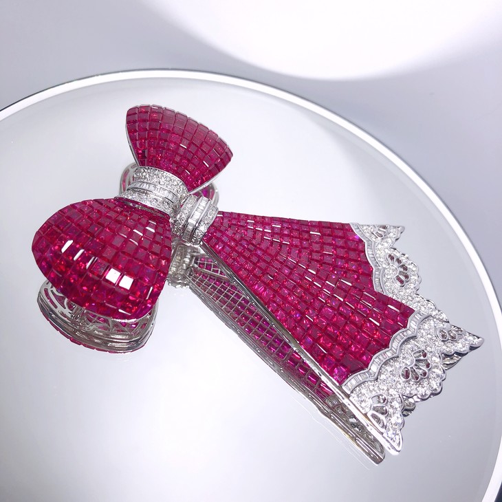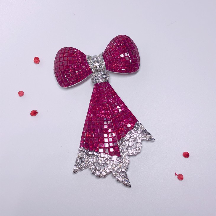 「蝴蝶结」隐形镶嵌红宝石钻石胸针