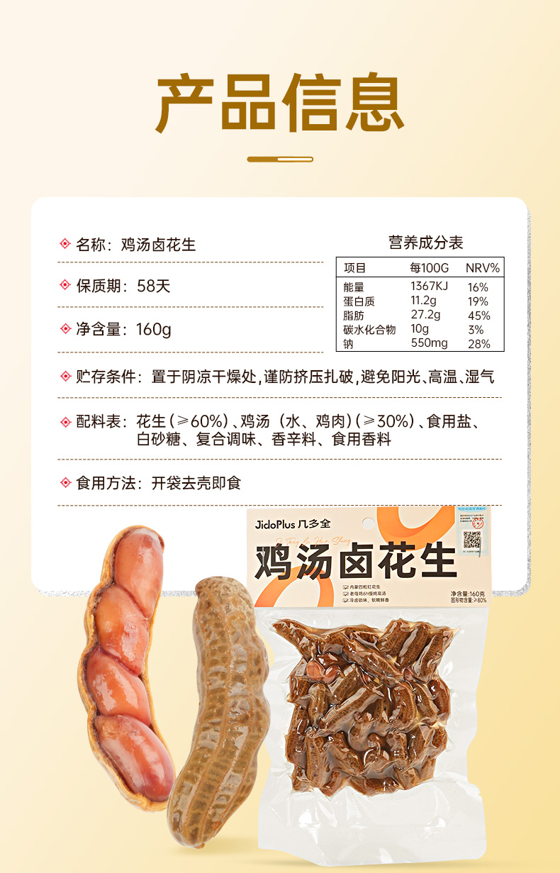 【鲜食新品】几多全鸡汤卤花生 160g 老母鸡高汤鲜卤 回味悠长