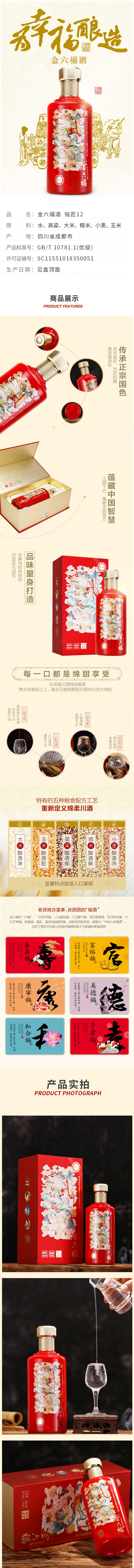 【推荐】金六福白酒 铭匠12 500ml*6瓶整箱装 50度浓香型白酒