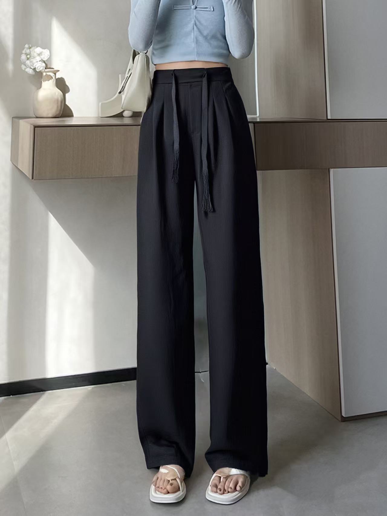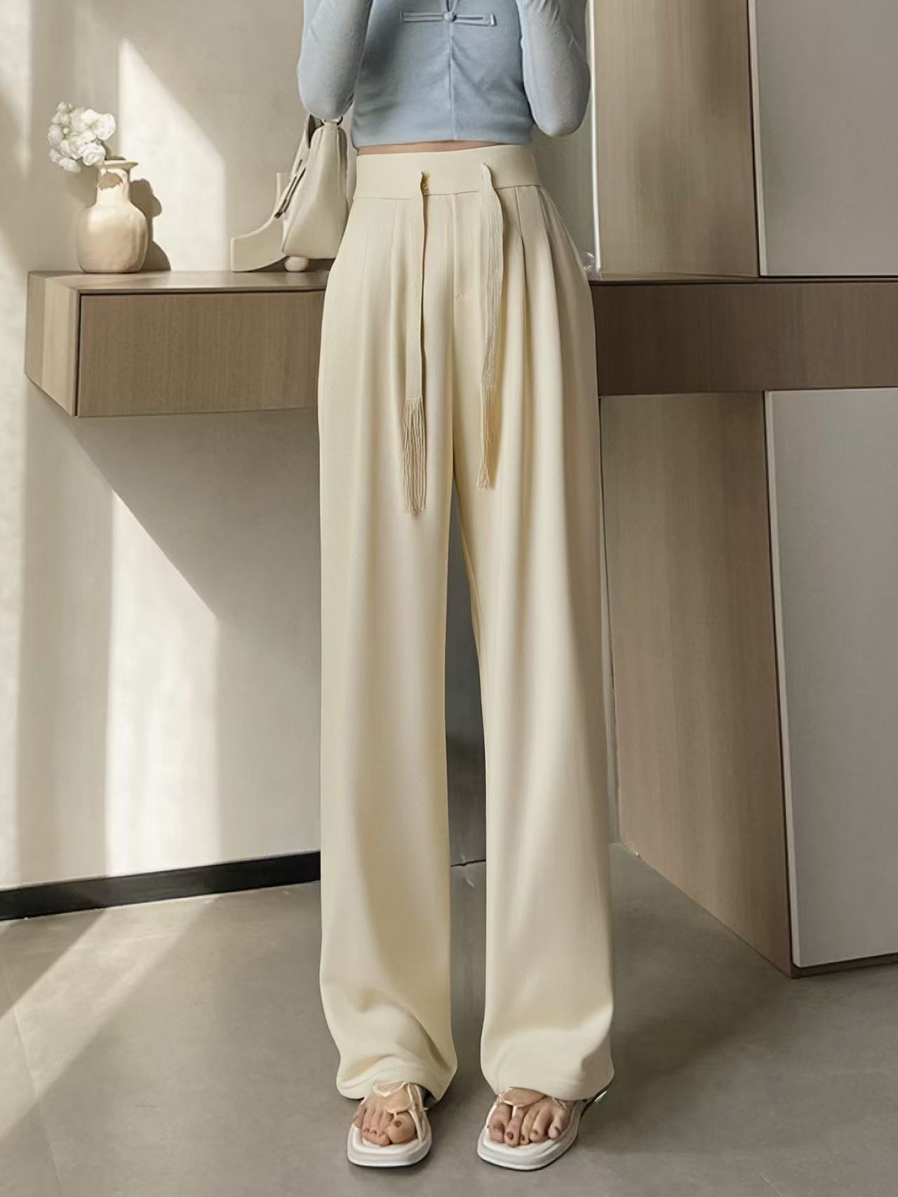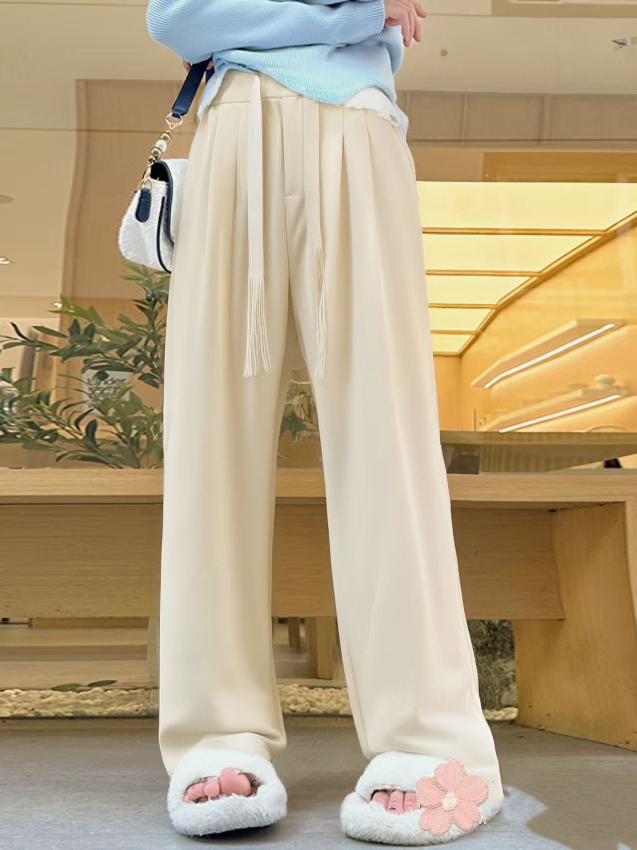 双十二福利!【诗铭洛可】MJ195云感裤流苏腰带绳休闲直筒裤