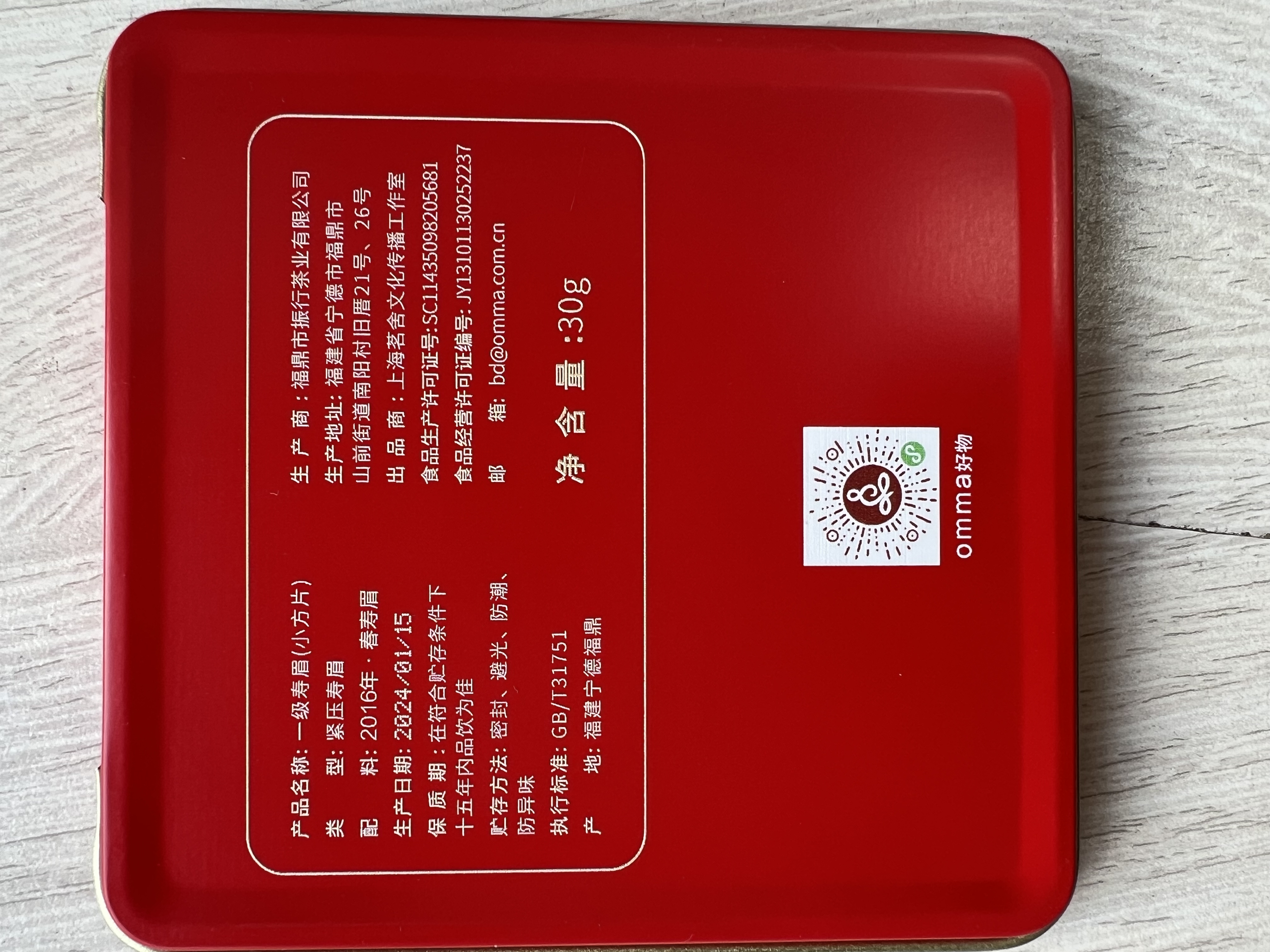 omma白茶小方片(一级寿眉)30g