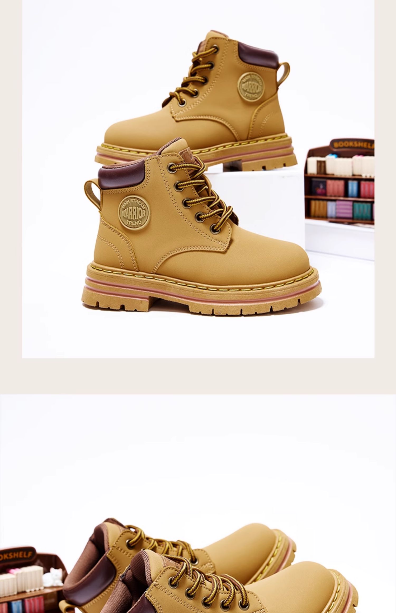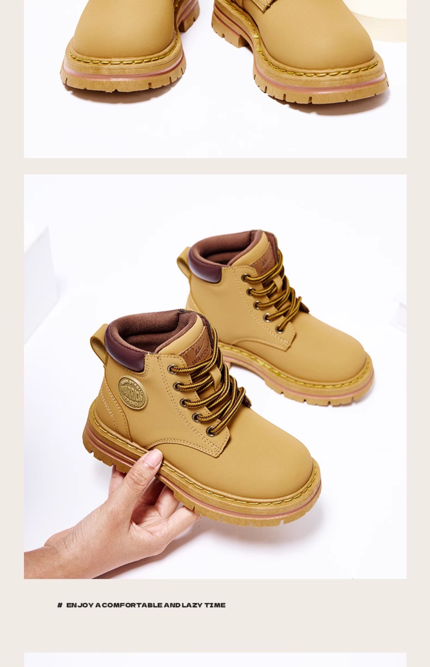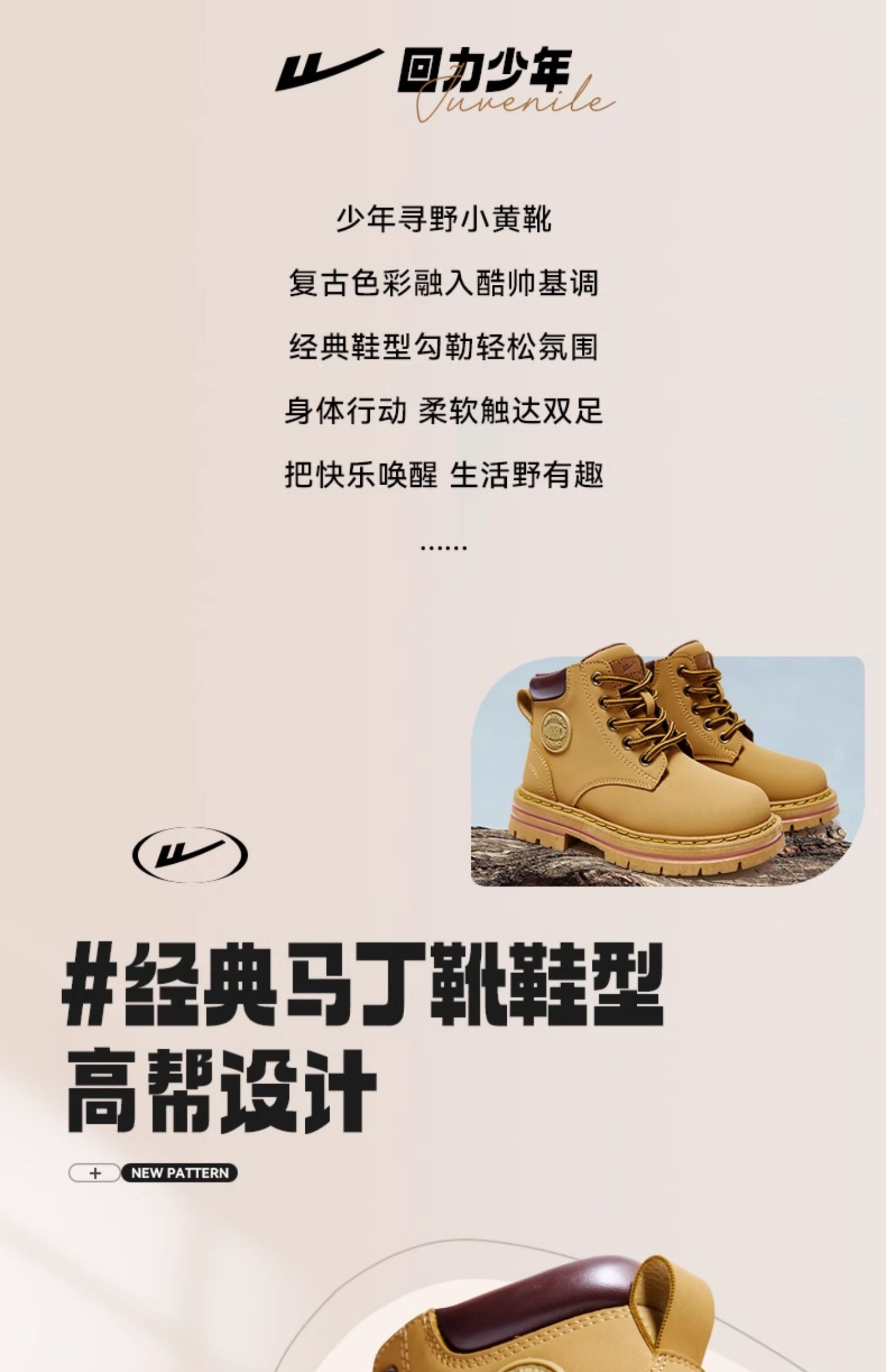 回力儿童马丁靴冬季新款加绒亲子户外登山鞋子男童靴子女童大黄靴