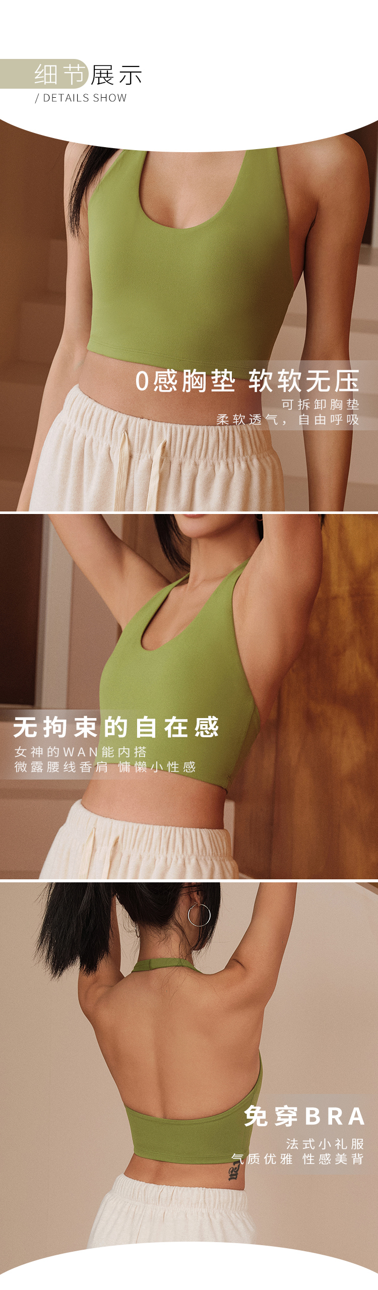 【3~5天发货】跃牌【美度空间】系列莱卡裸感挂脖半固定罩杯瑜伽文胸 WX1522(一体式胸垫)