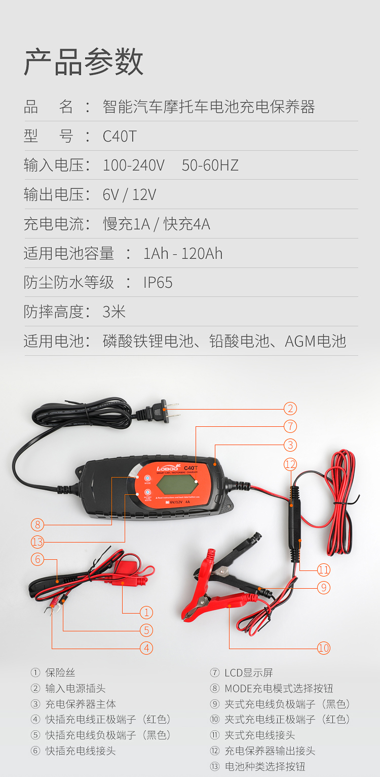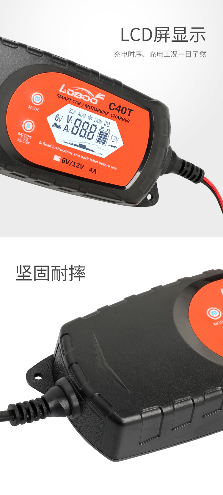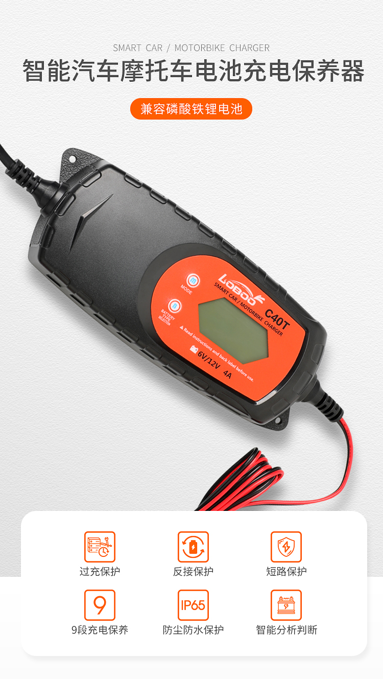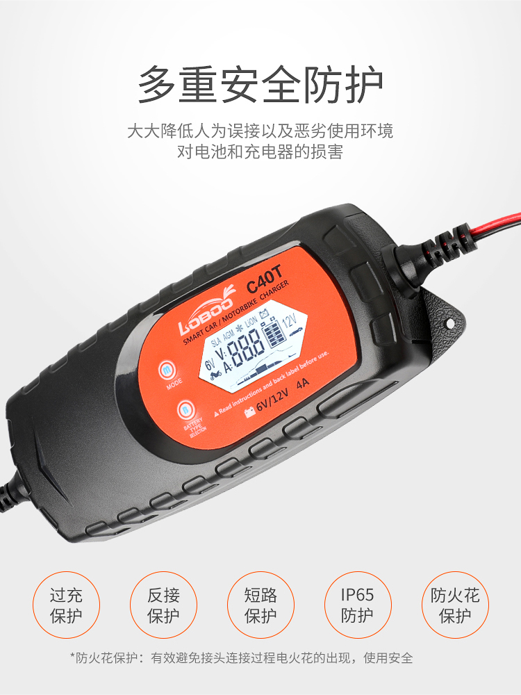 LOBOO萝卜 摩托车电瓶充电器12V
