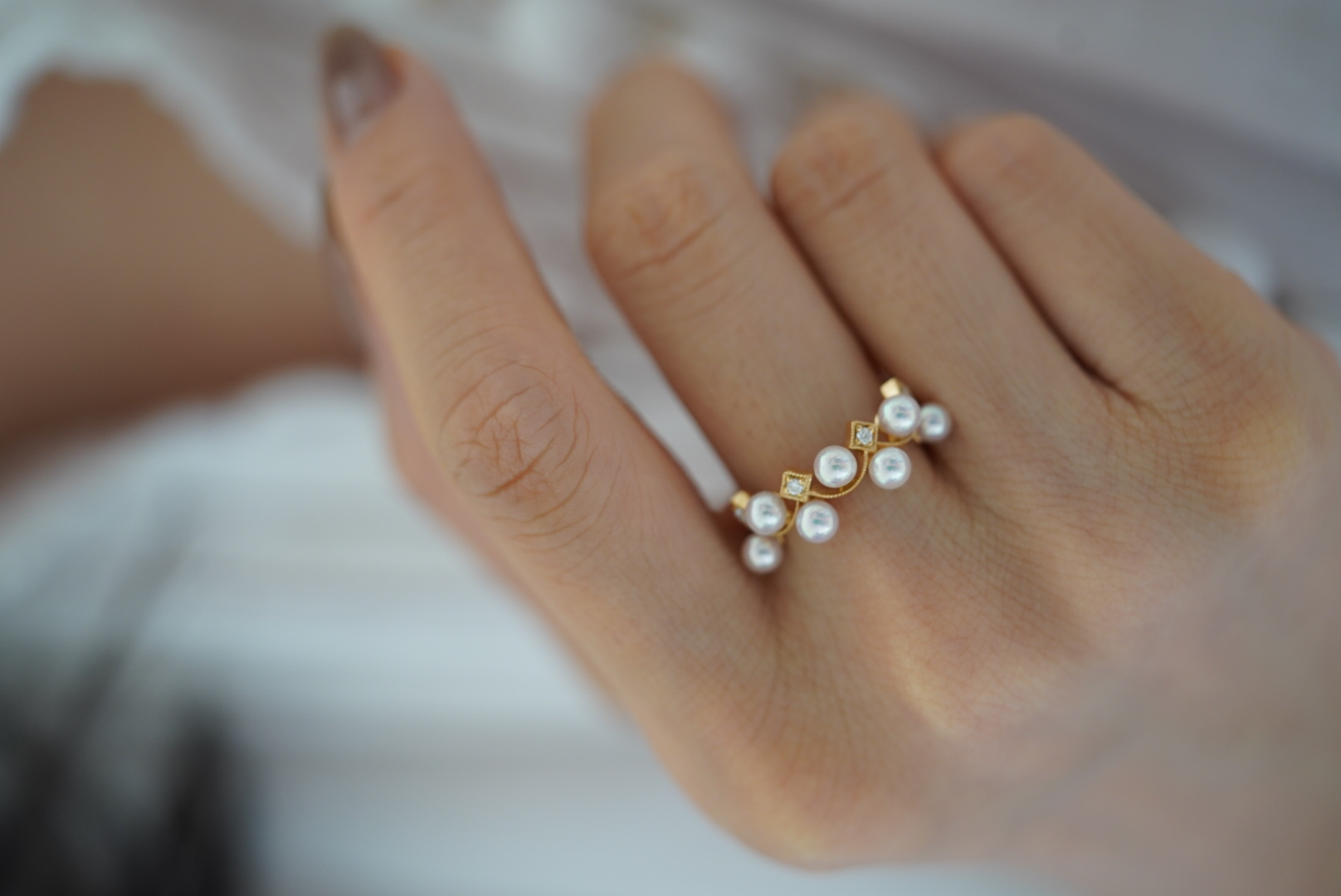 Akoya多珠戒指天花板彩凛珠&白月光 配18K钻石花环款4699🉐️