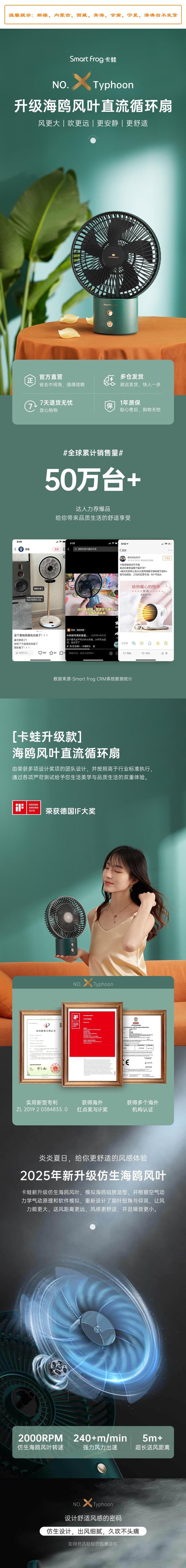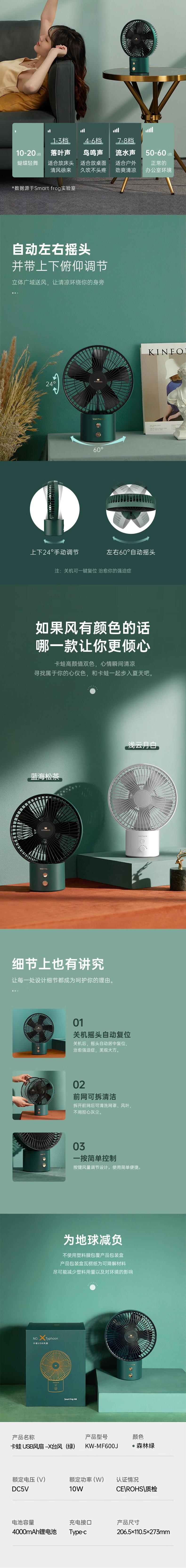 SmartFrog卡蛙 10W桌面USB风扇绿色 KW-MF600J