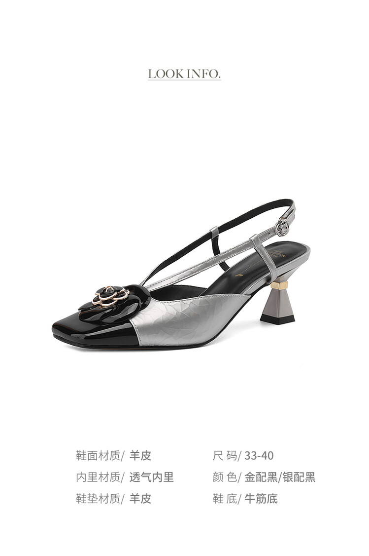 货号:5327鞋面材质:羊皮内里:透气内里鞋垫:羊皮鞋底材质:牛筋底尺码:34--39颜色: 金配黑 银配黑