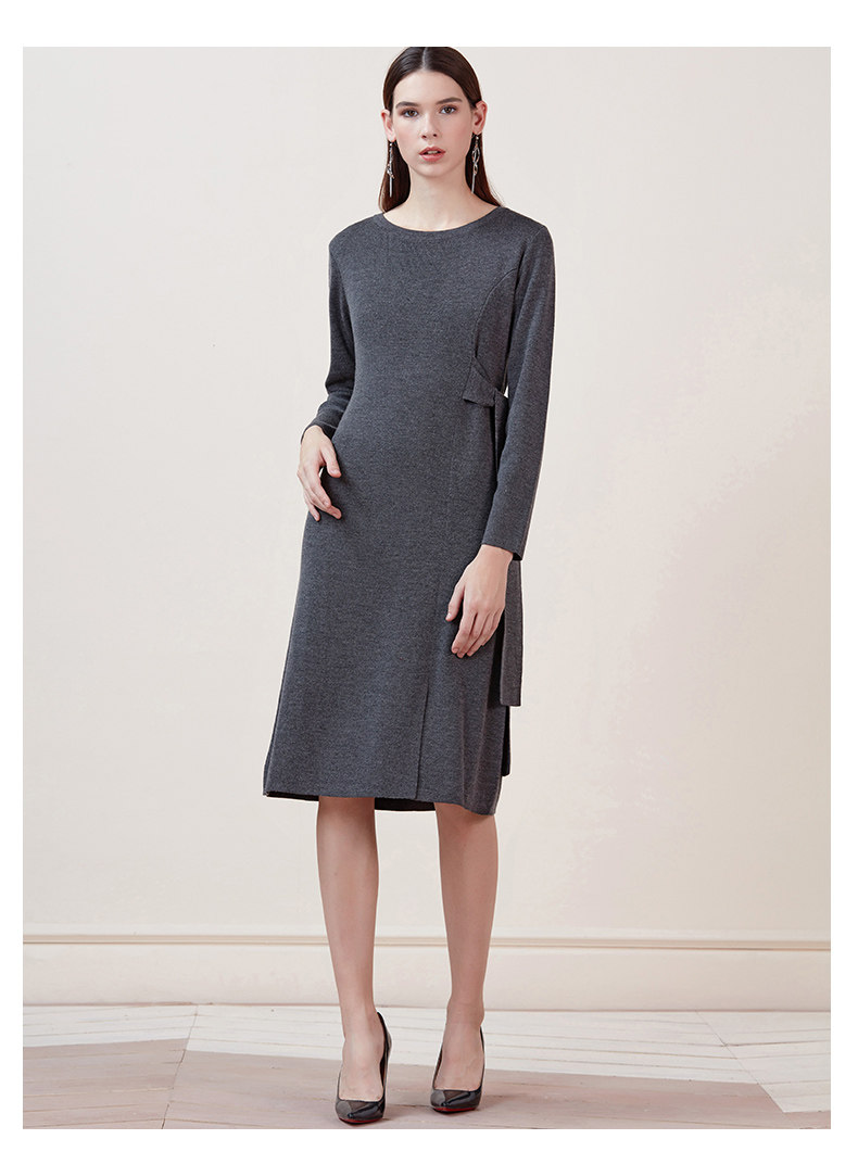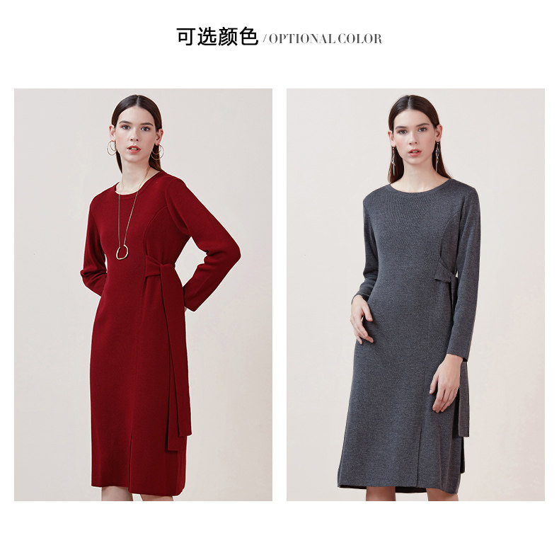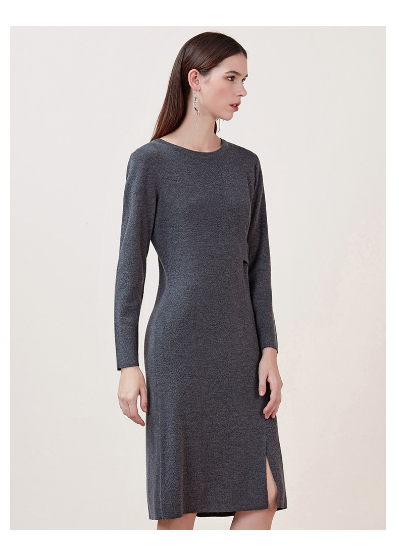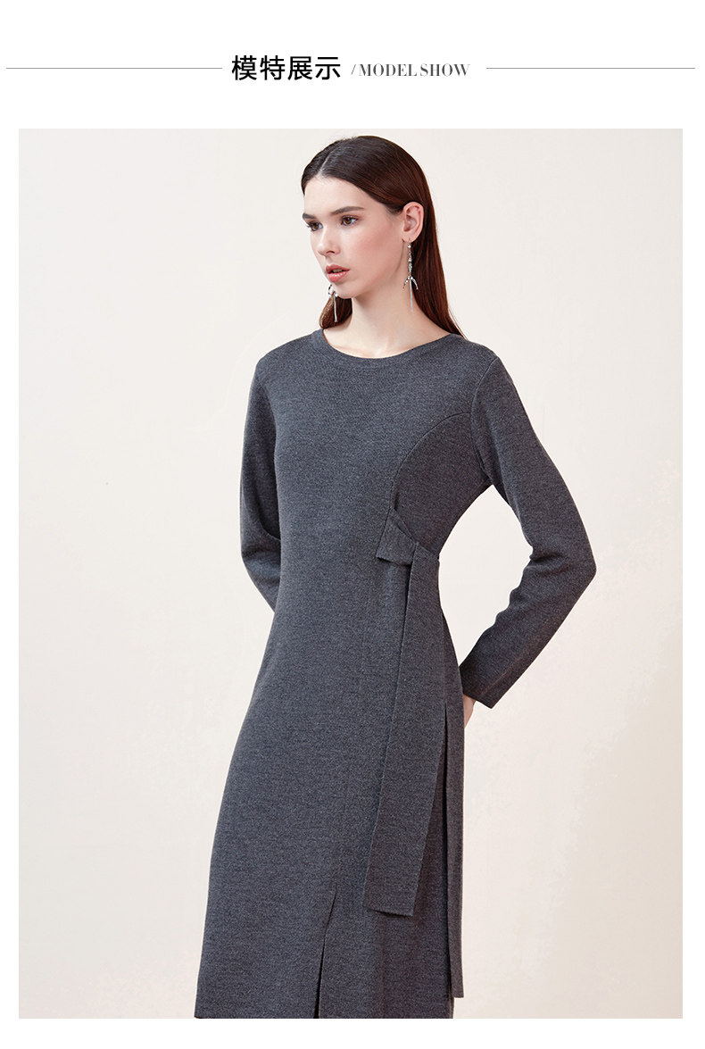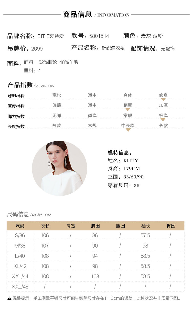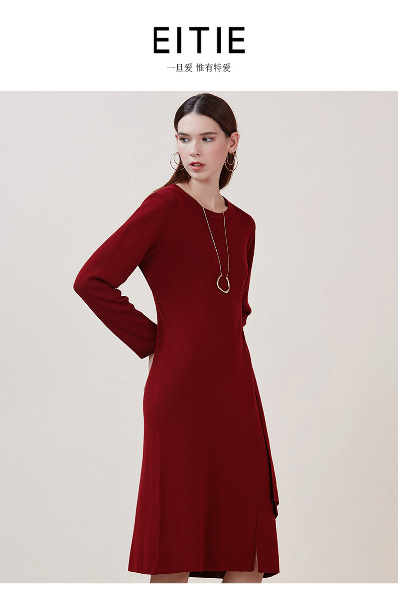 EITIE爱特爱品牌女装冬季修身圆领羊毛中长款毛织连衣裙5801514