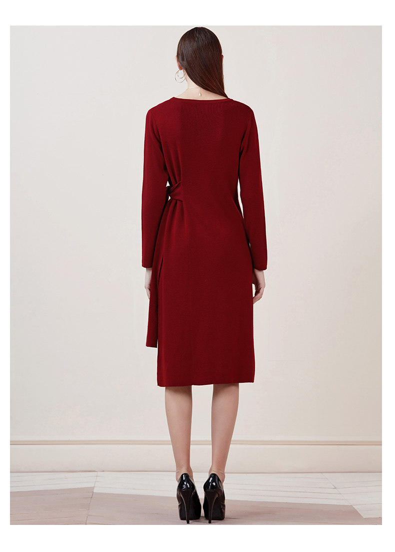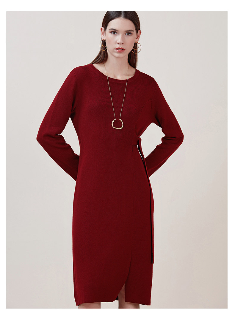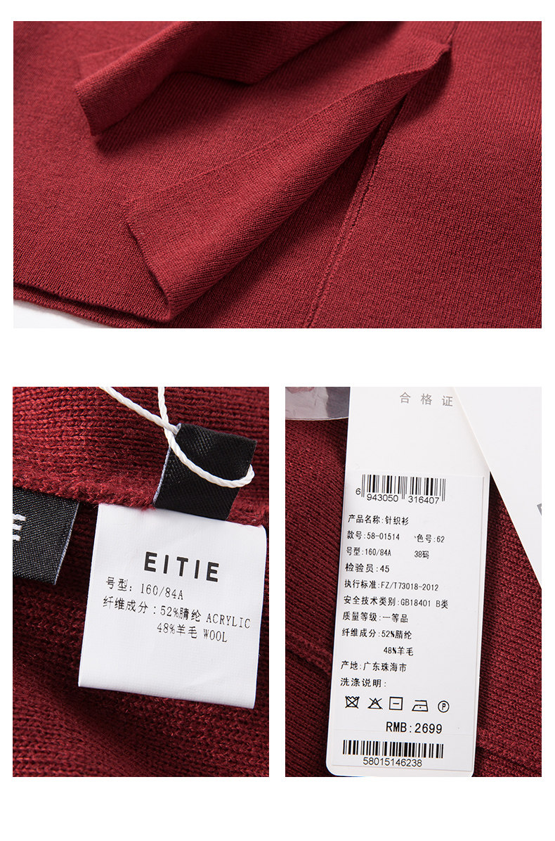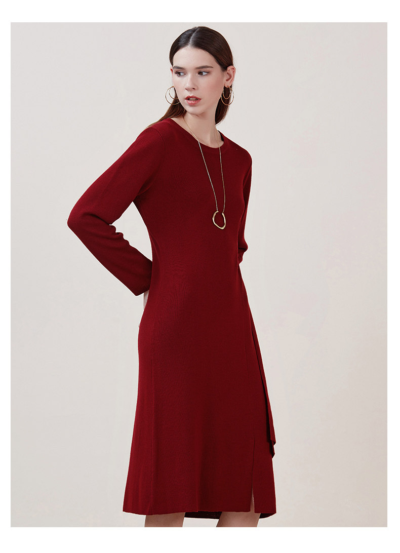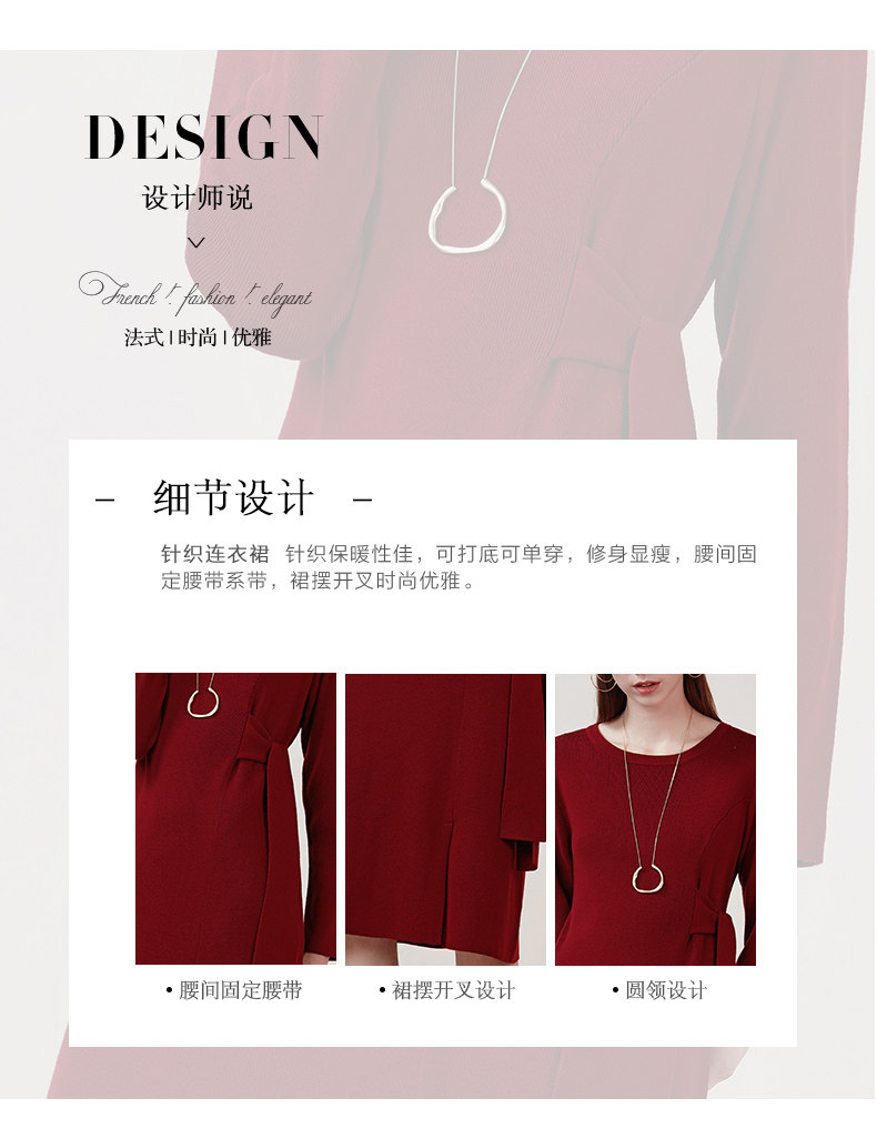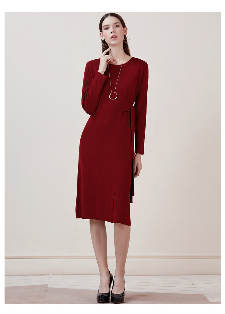 EITIE爱特爱品牌女装冬季修身圆领羊毛中长款毛织连衣裙5801514