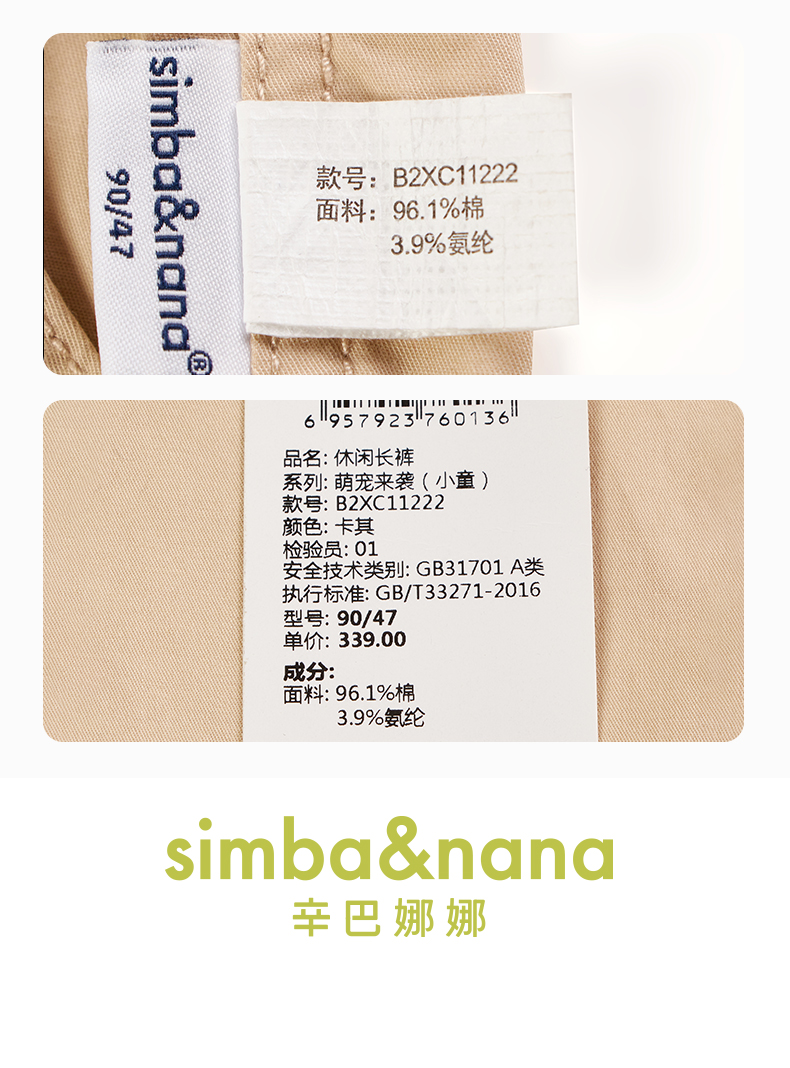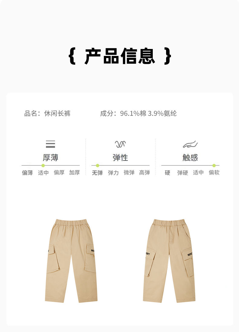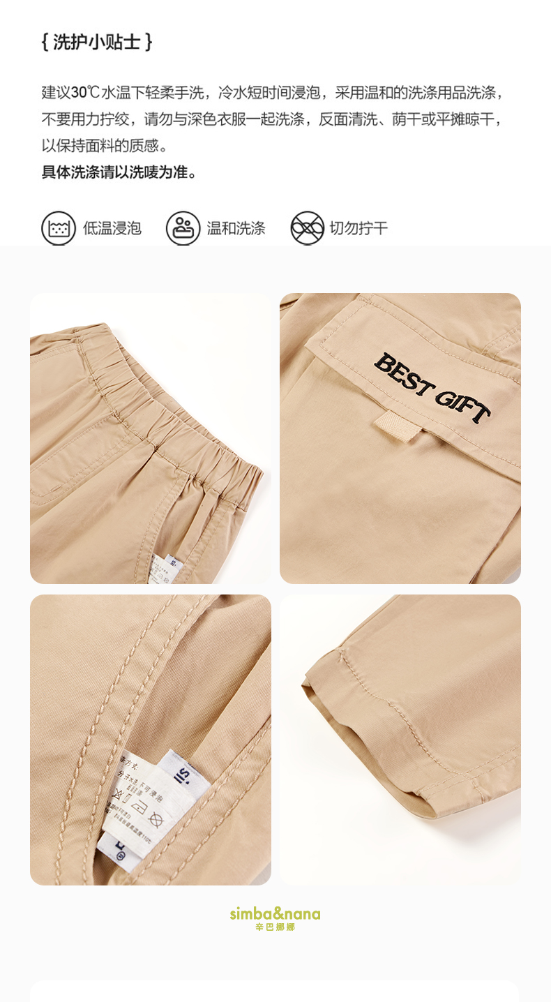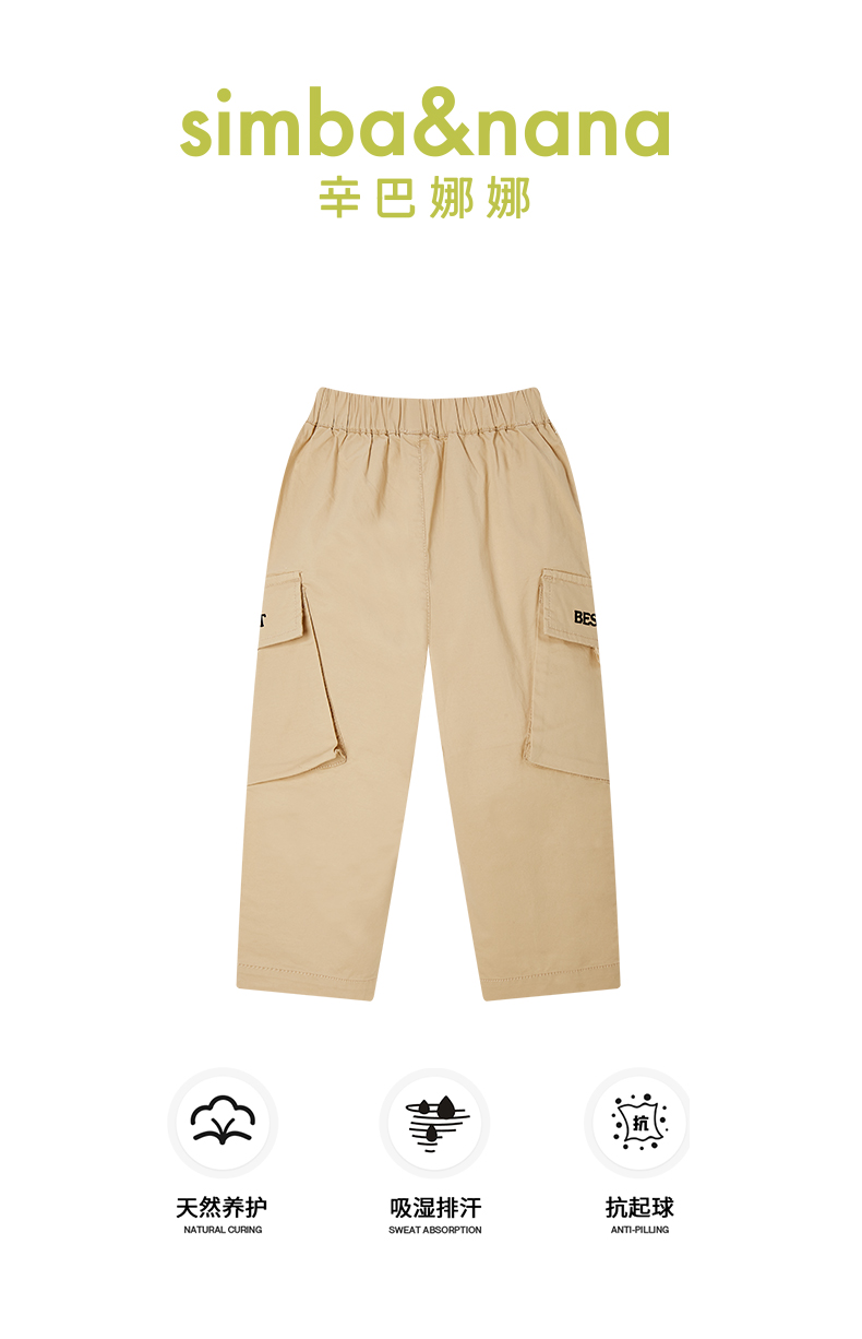 【辛巴娜娜】simbanana春秋季梭织大口袋小童男孩潮酷时尚运动长裤防风