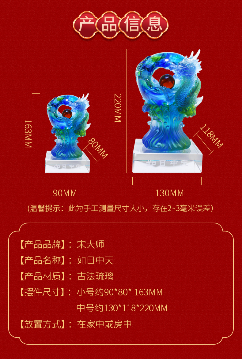 宋韶光新款 如日中天 古法琉璃摆件商务工艺礼品