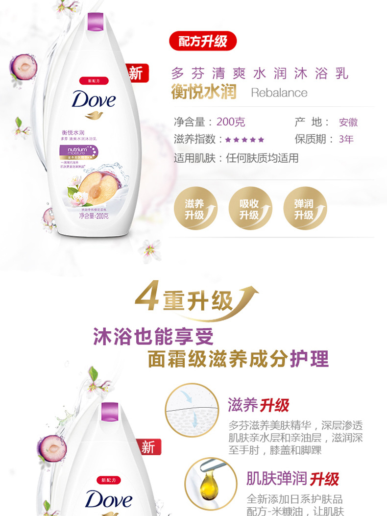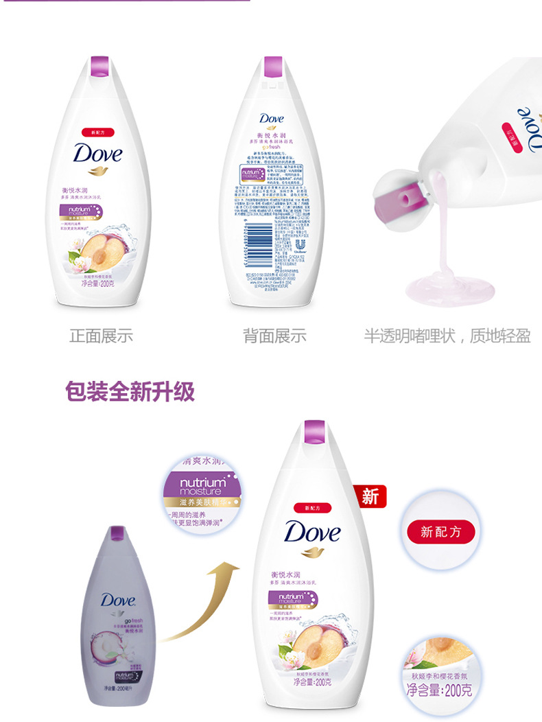 【品牌直发】多芬(DOVE)沐浴露200g 衡悦水润深层莹润 滋养活肤沐浴乳多香型