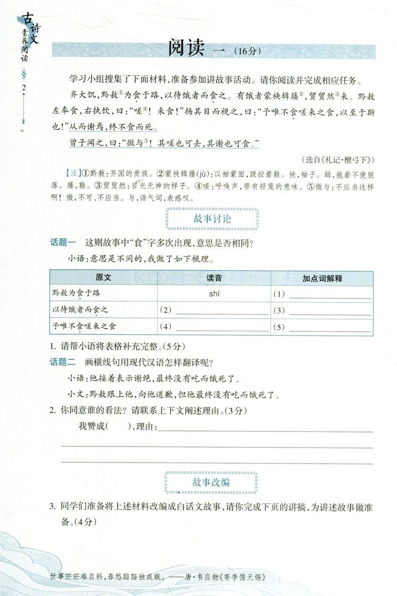 乐支点【古诗文素养阅读】名著导学导练 理解初中七八九年级中考考点必背文言文古诗词学素养同步文学中考总复习