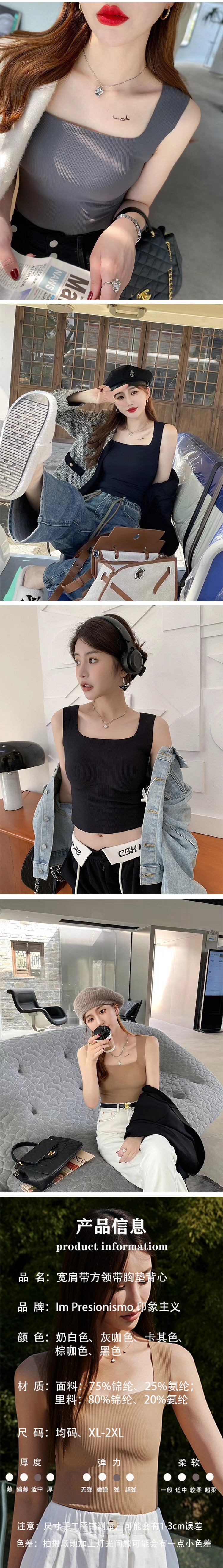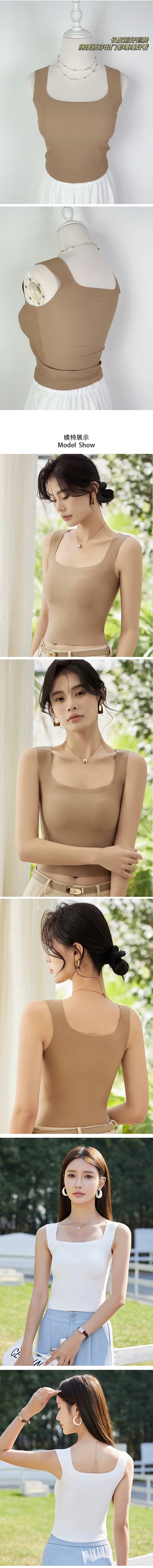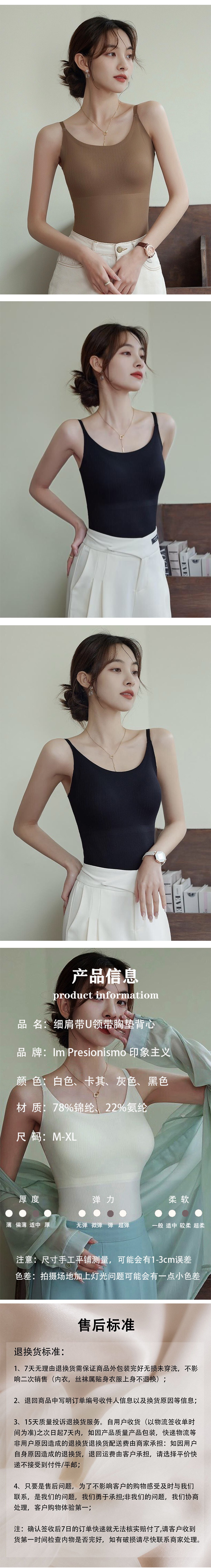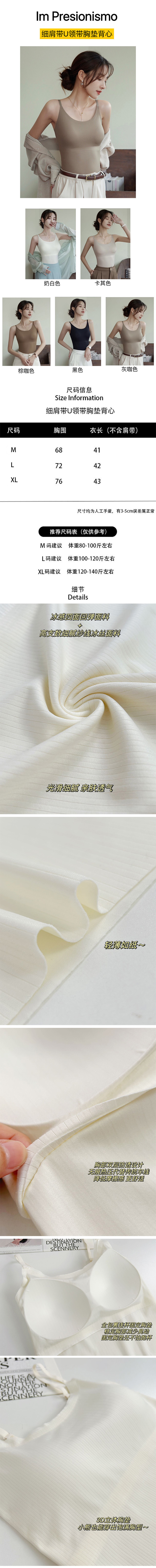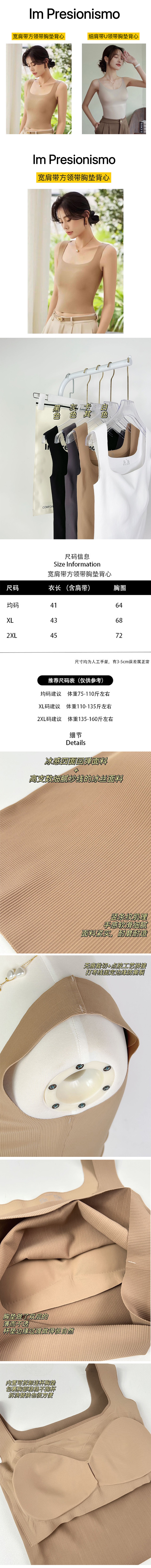 宽肩带方领带胸垫背心/细肩带U领带胸垫背心