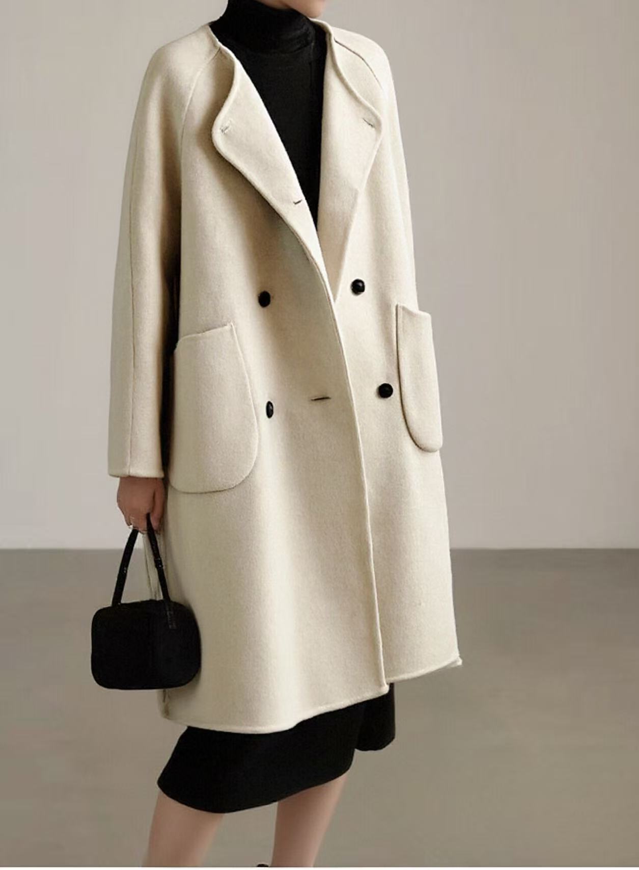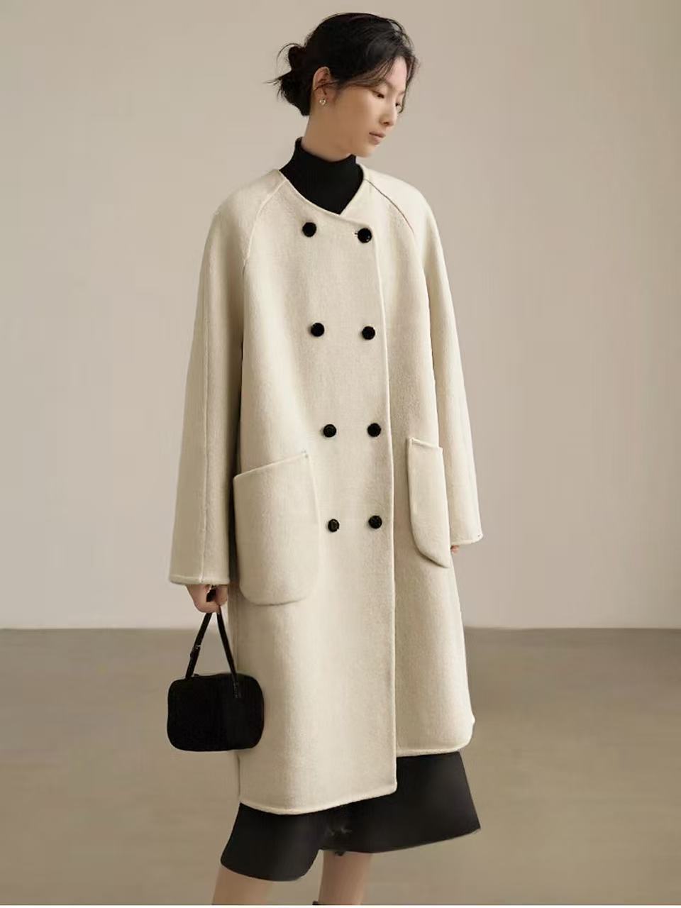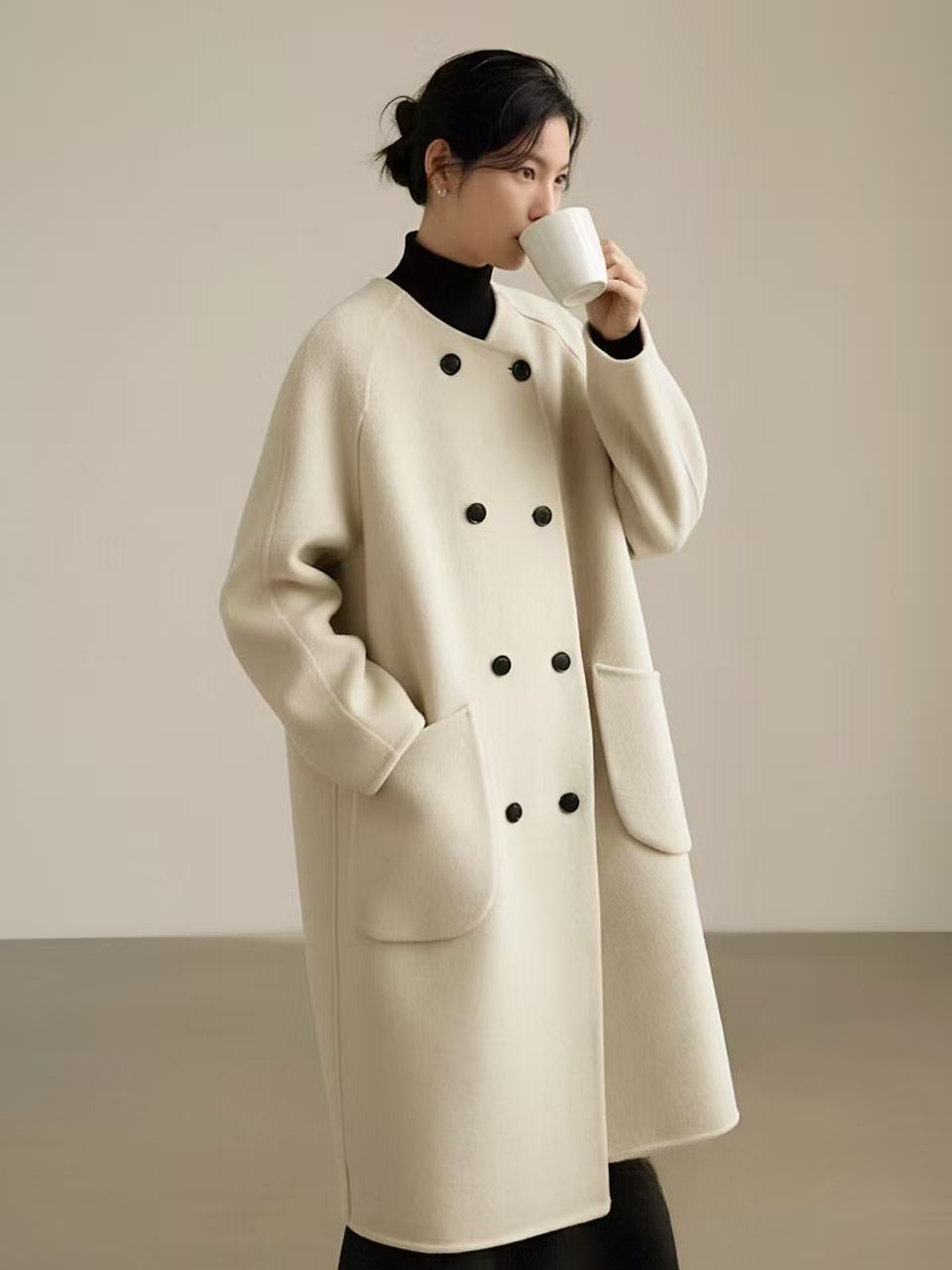 【轻奢双面尼】2514(绵羊毛➕山羊绒)气质款双排扣简约双面尼大衣-喜出