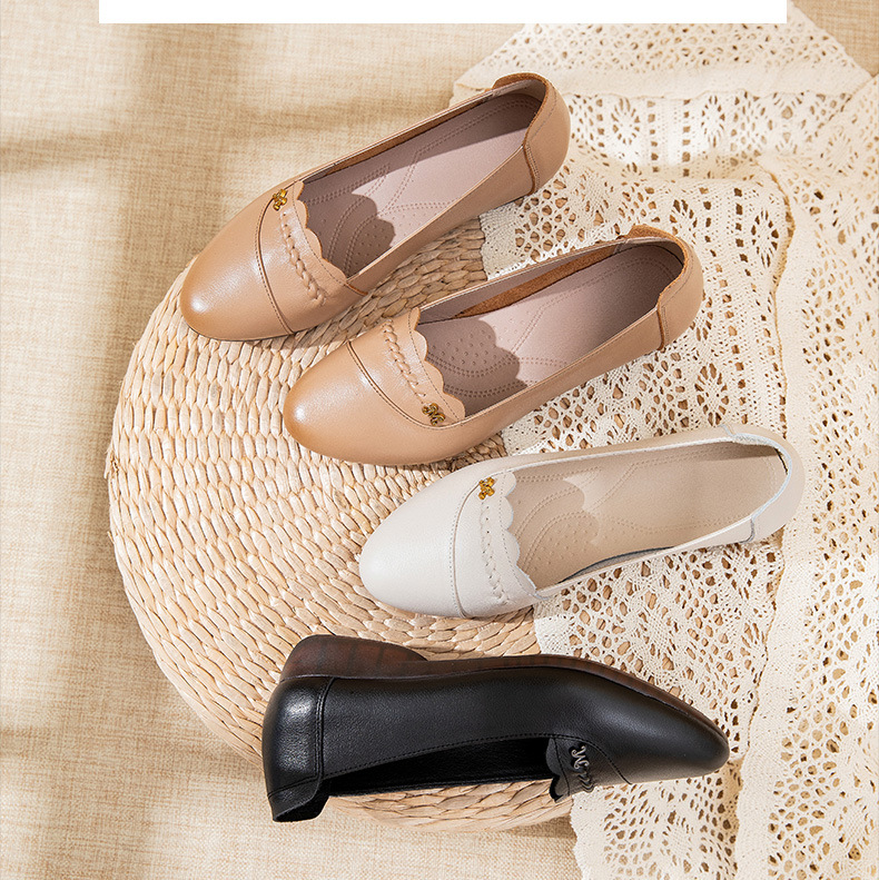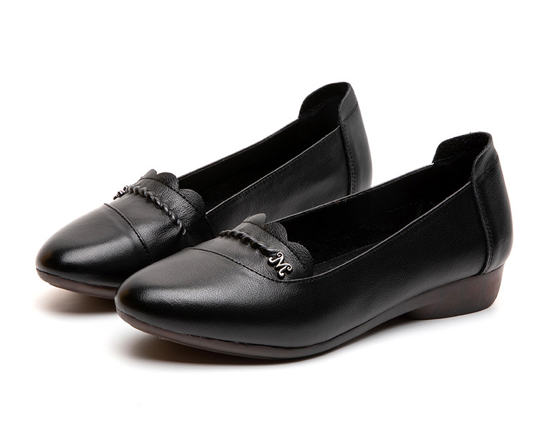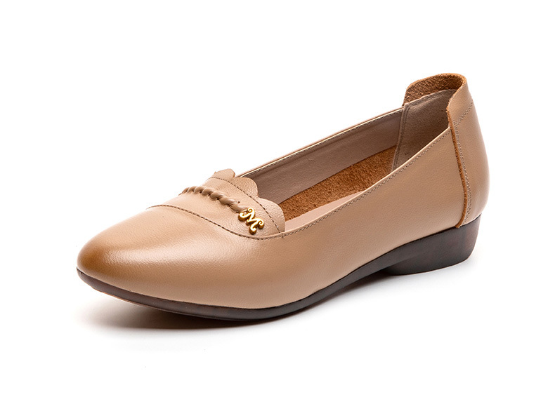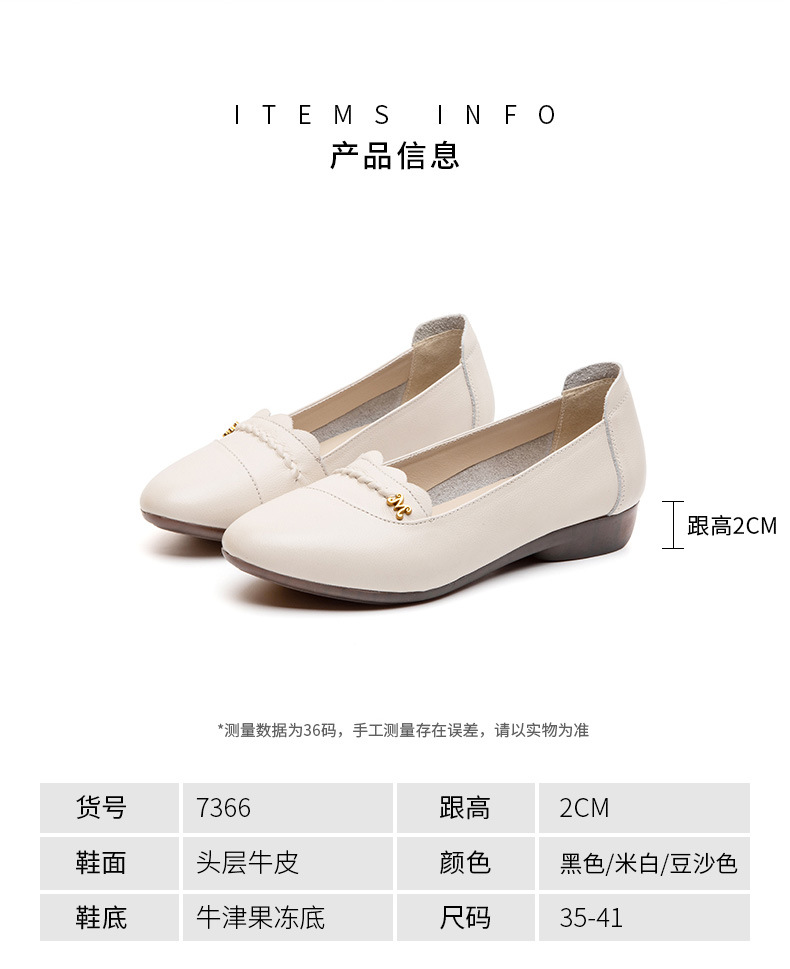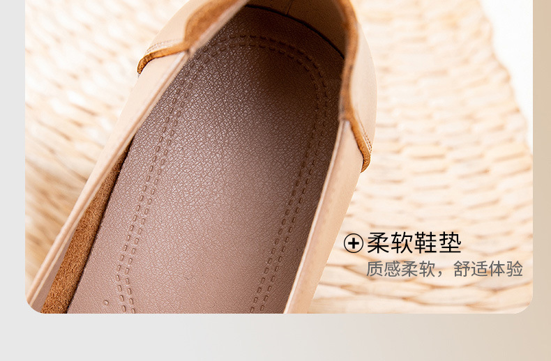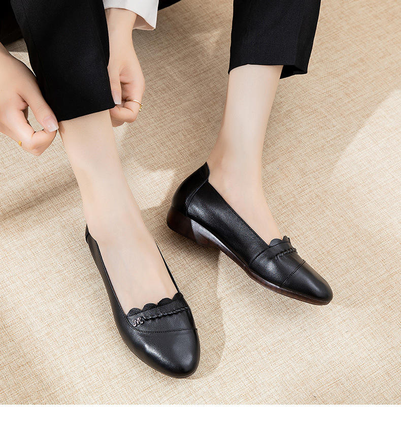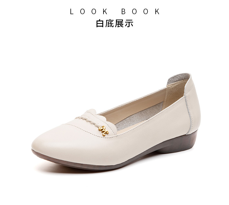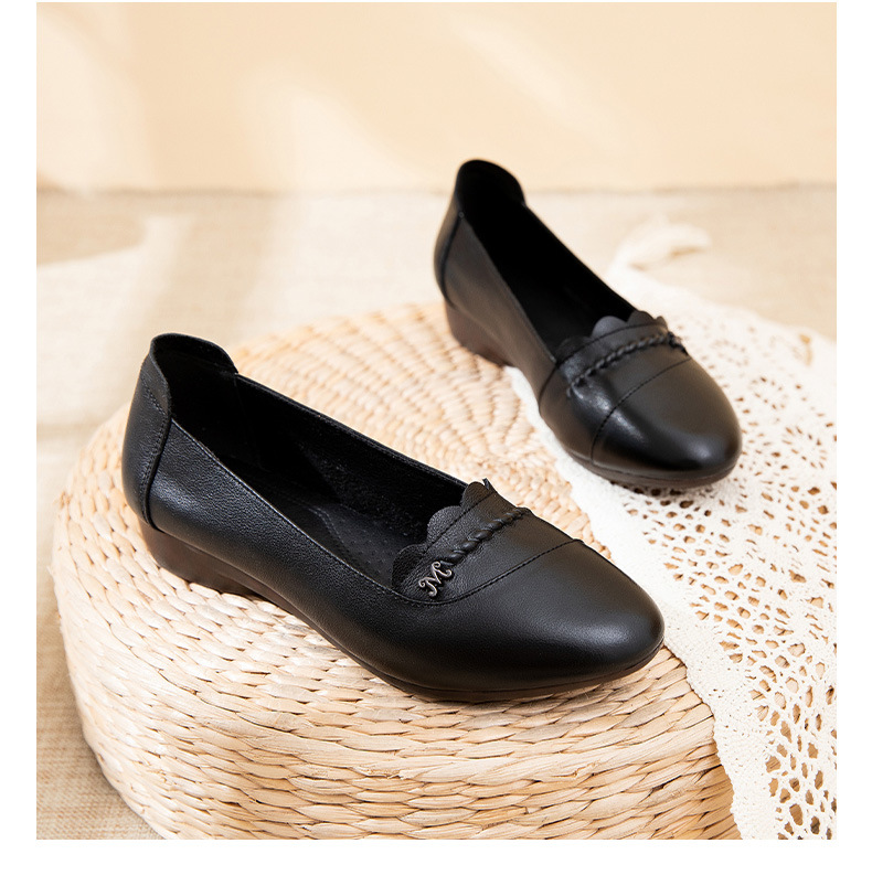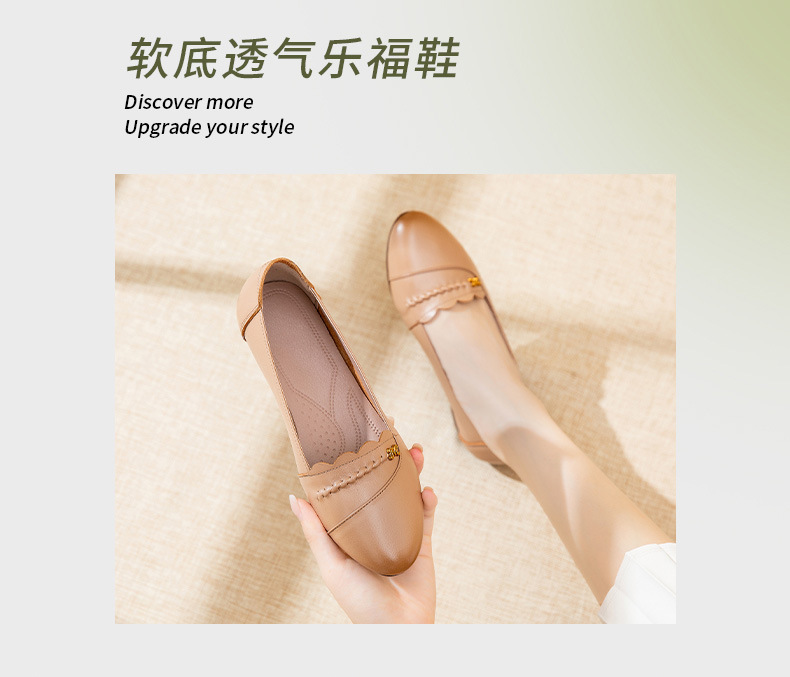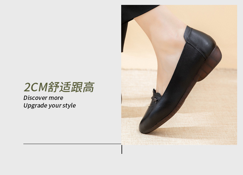 时尚休闲,秋季新款头层牛皮软底单鞋工作鞋浅口平底妈妈鞋MLD-7366