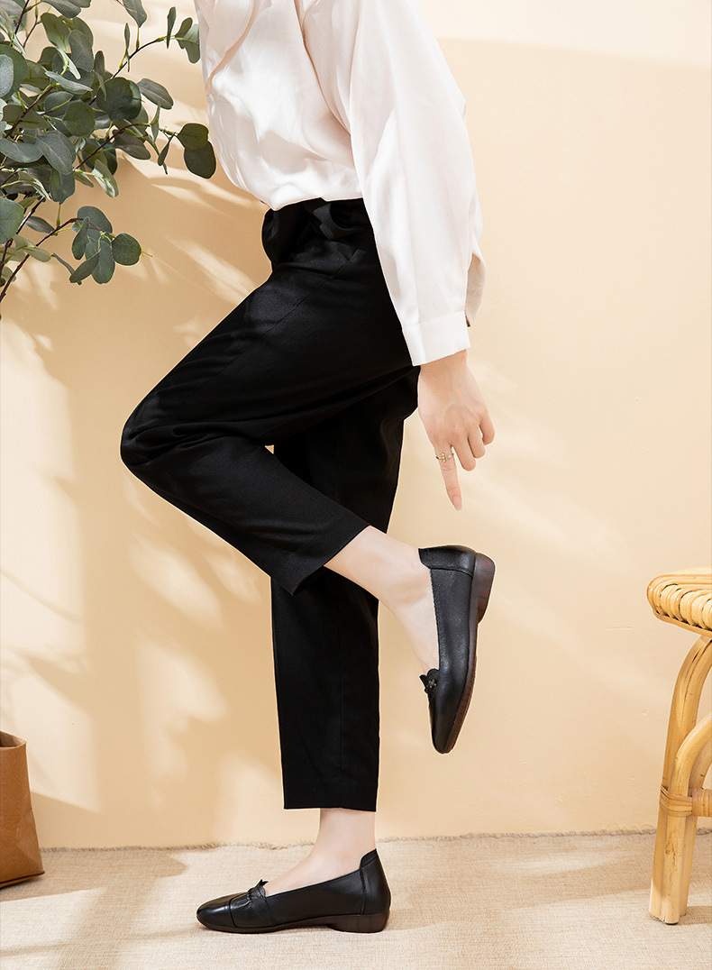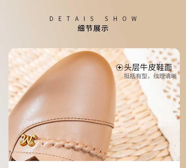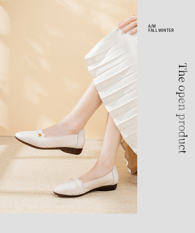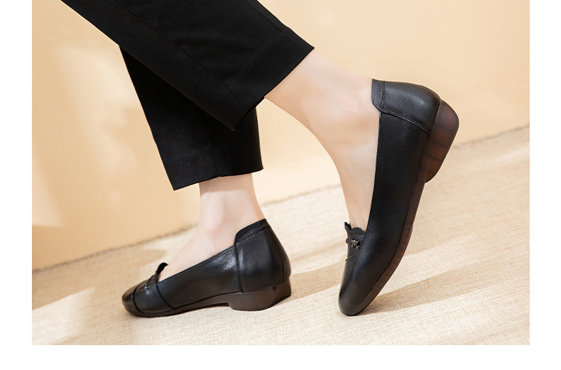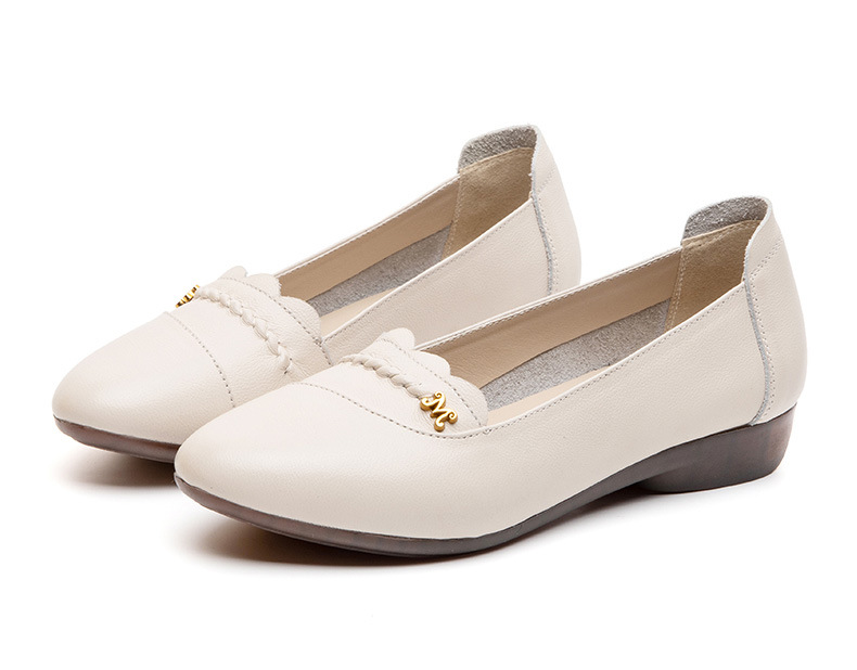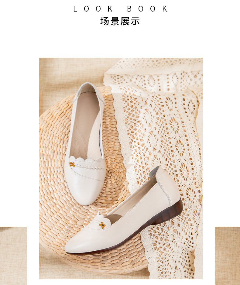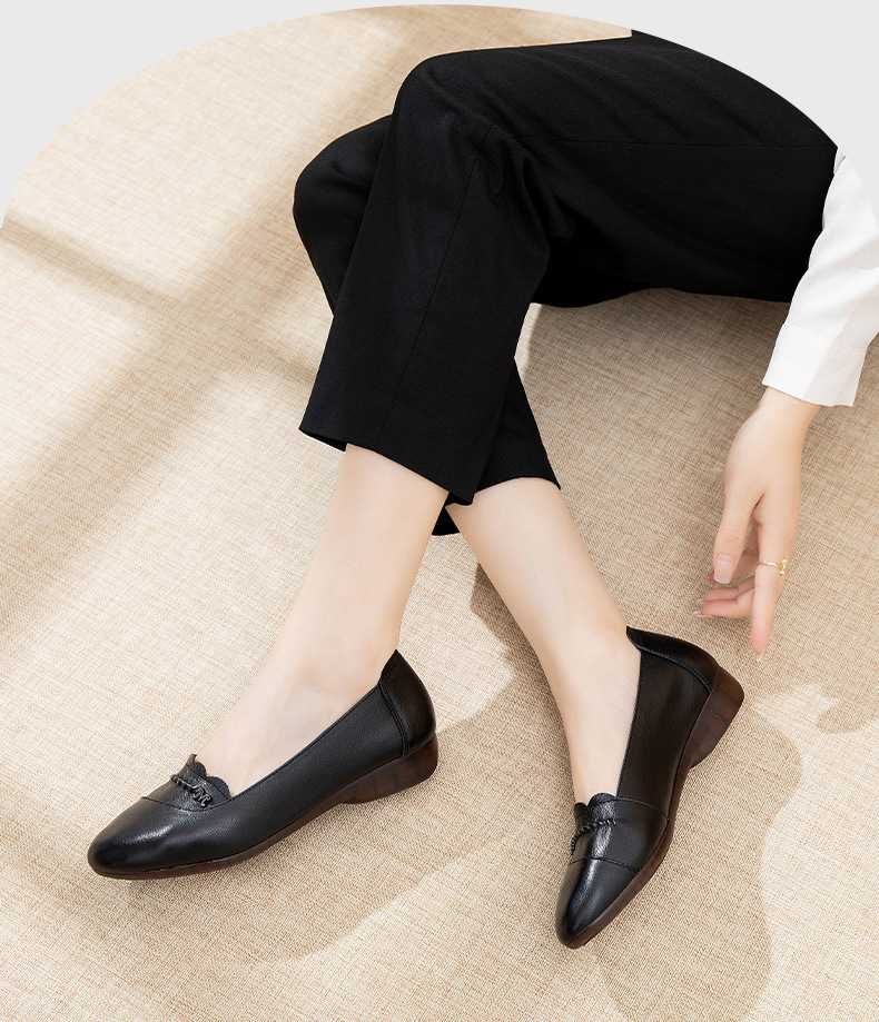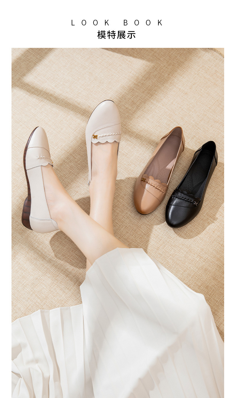 时尚休闲,秋季新款头层牛皮软底单鞋工作鞋浅口平底妈妈鞋MLD-7366