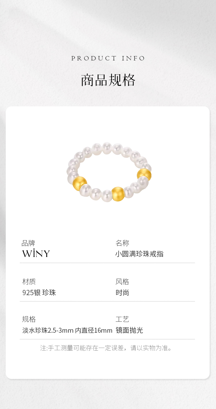 Winy925纯银小圆满珍珠戒指送女友闺蜜节日生日礼物