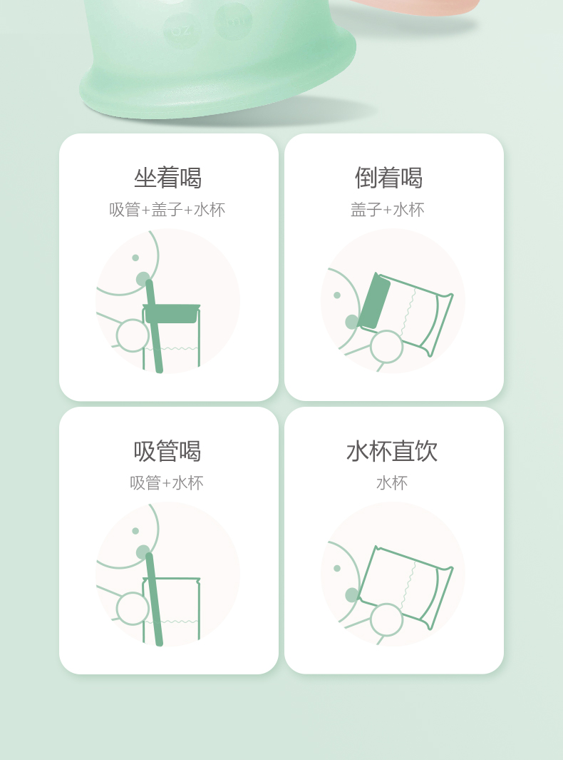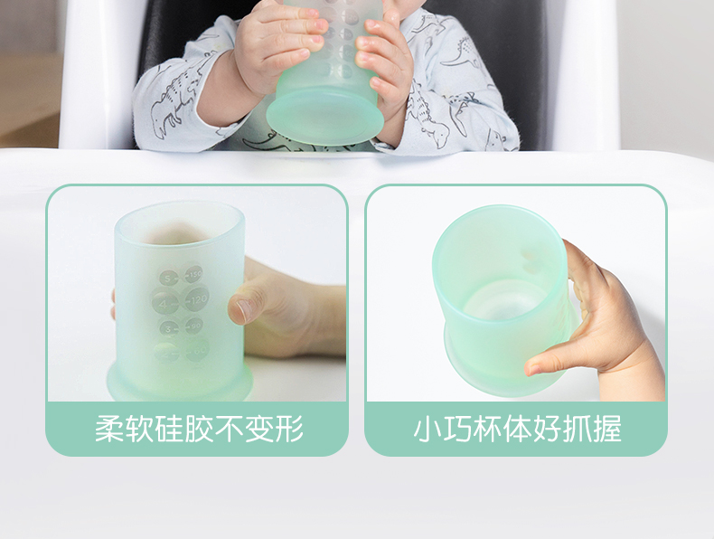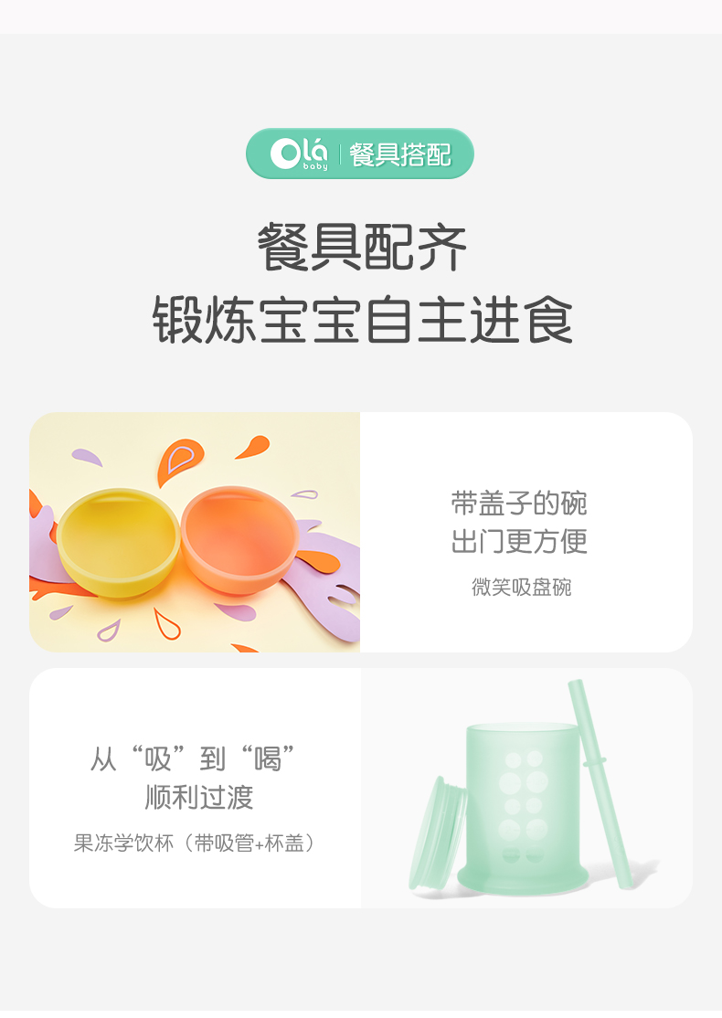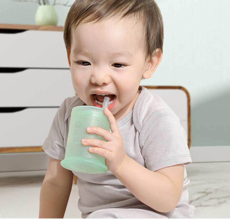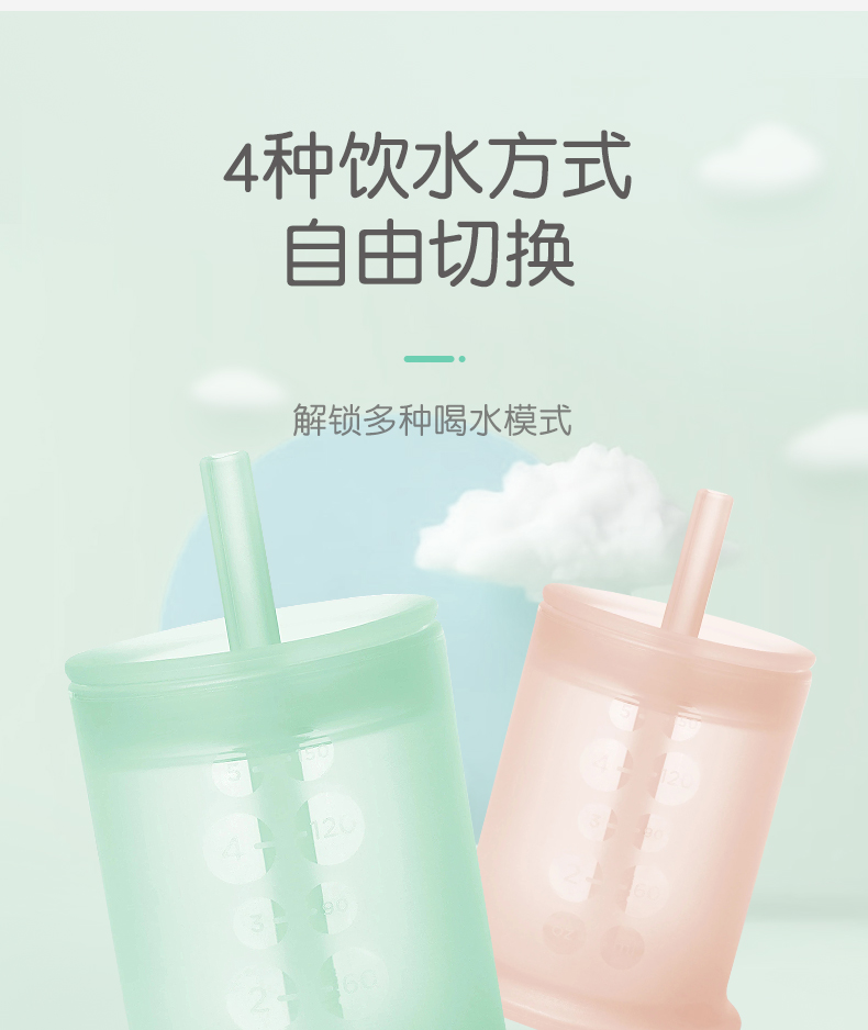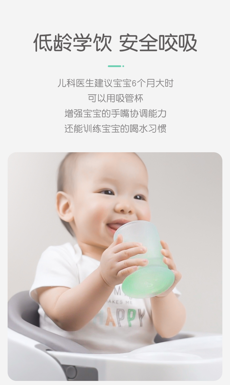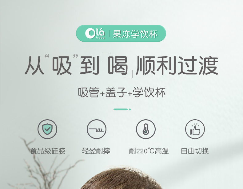 olababy硅胶婴儿童吸管学饮杯喝水两用防摔奶瓶大宝宝训练杯6个月