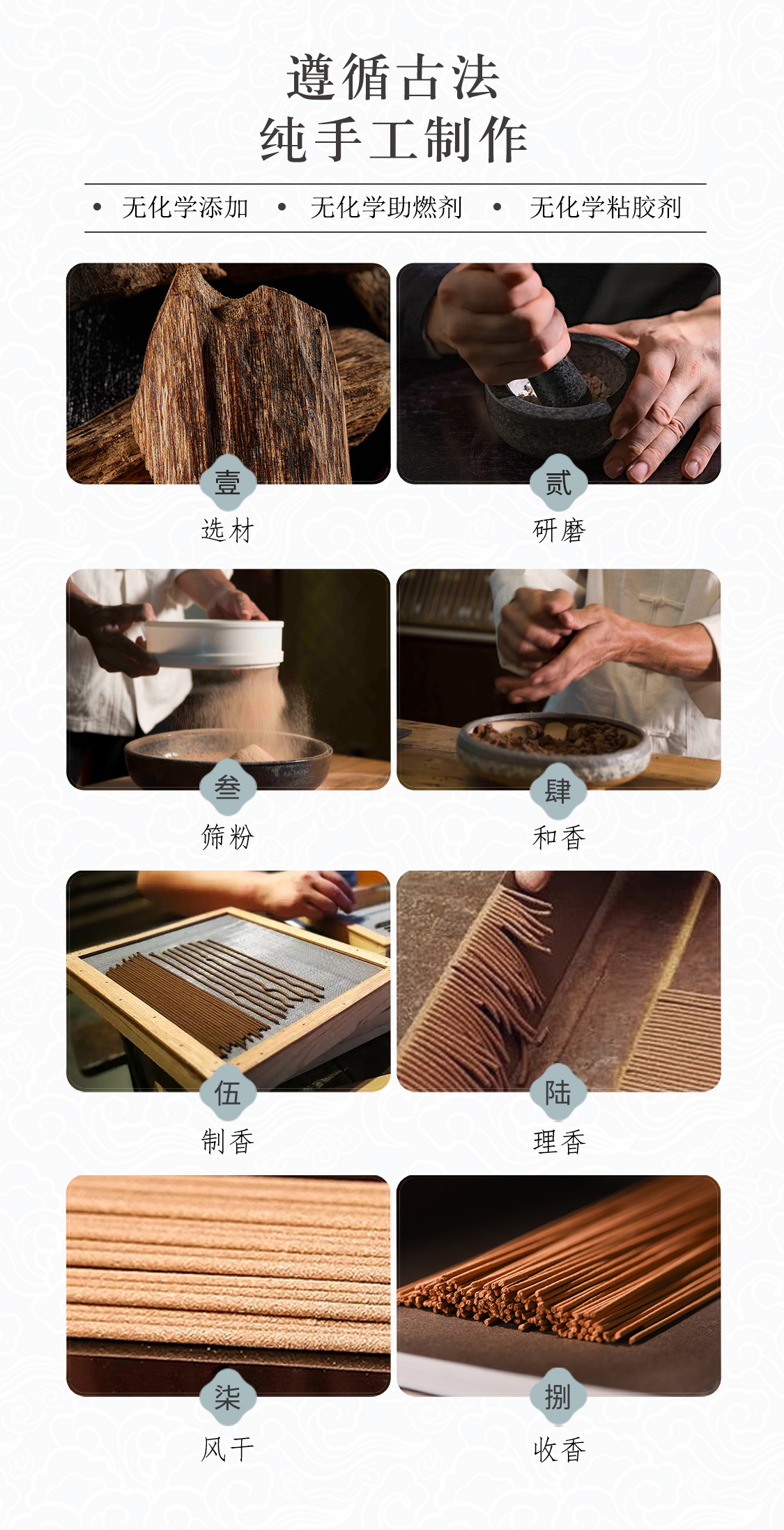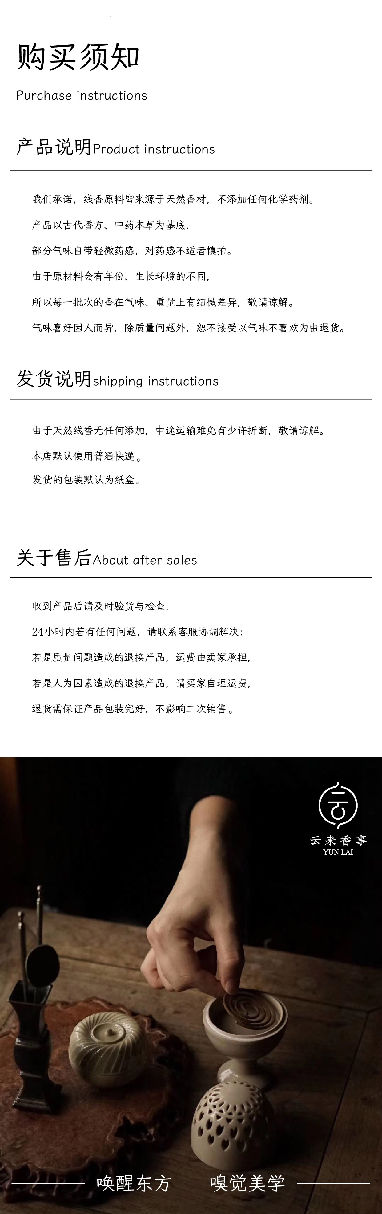 1、我们承诺,线香原料皆来源于天然香材,不添加任何化学药剂。产品以古代香方、中药本草为基底,部分气味自带轻微药感,对药感不适者慎拍。