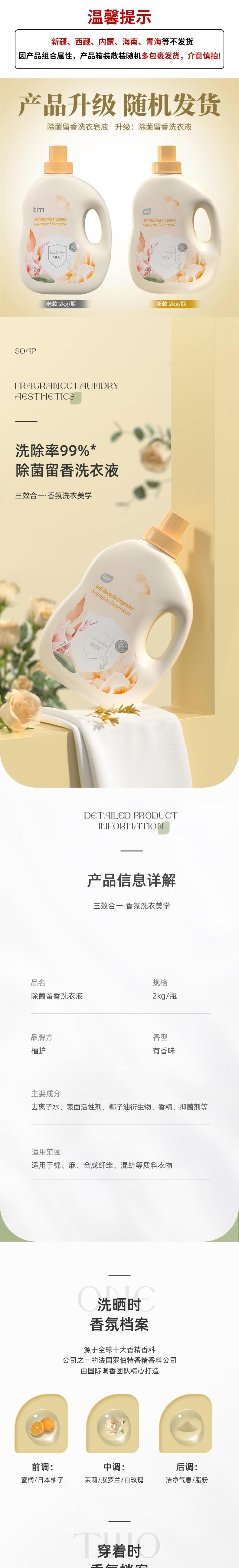 植护 除菌留香洗衣皂液2kg*3瓶 DT2071N3