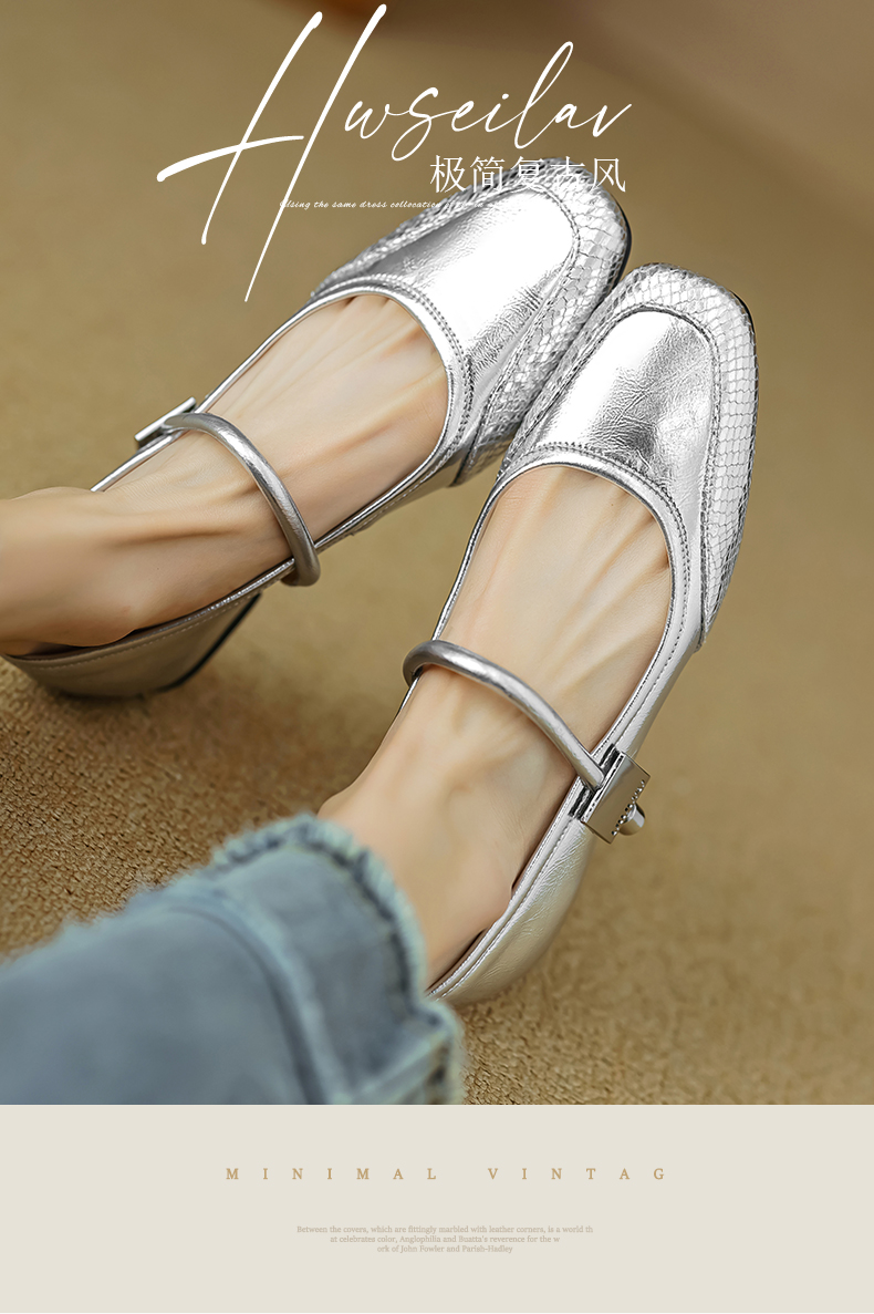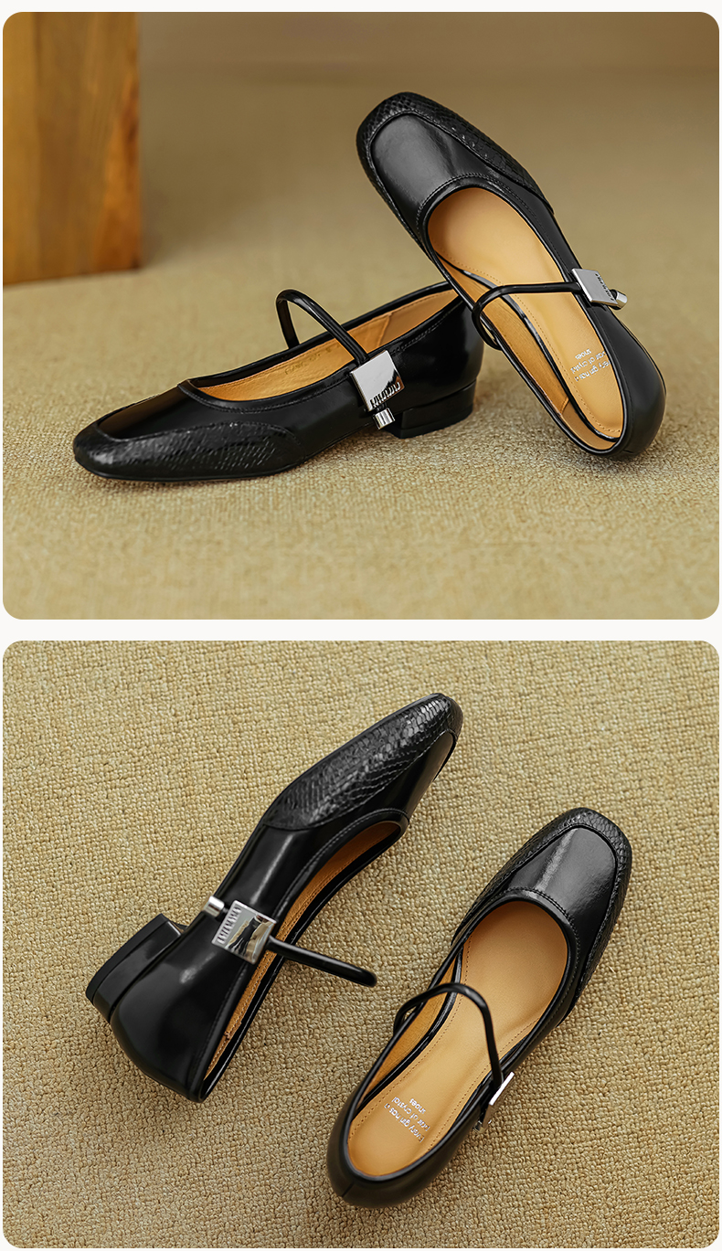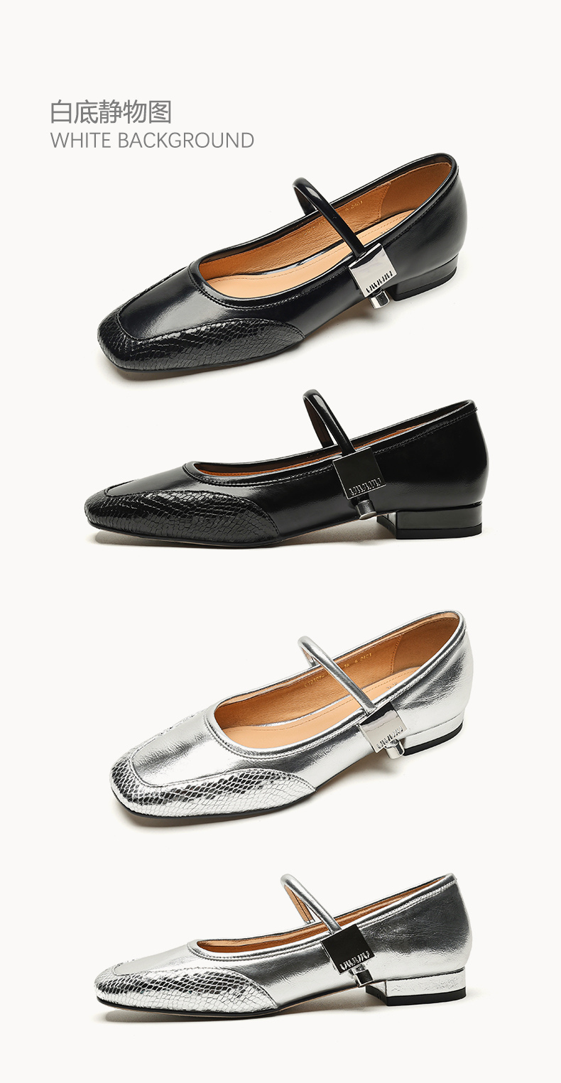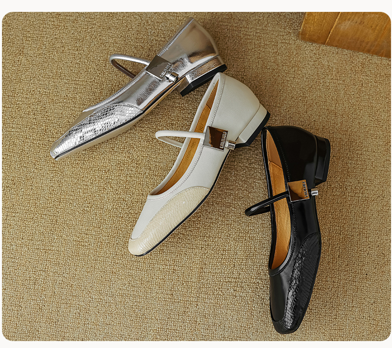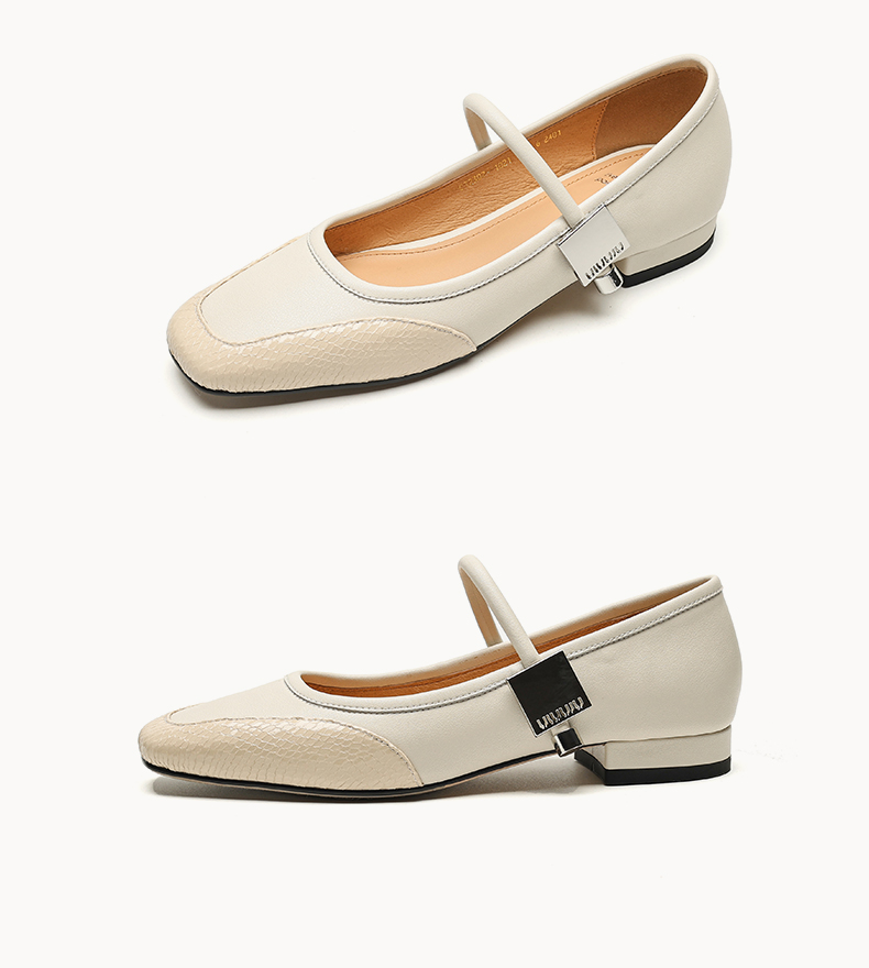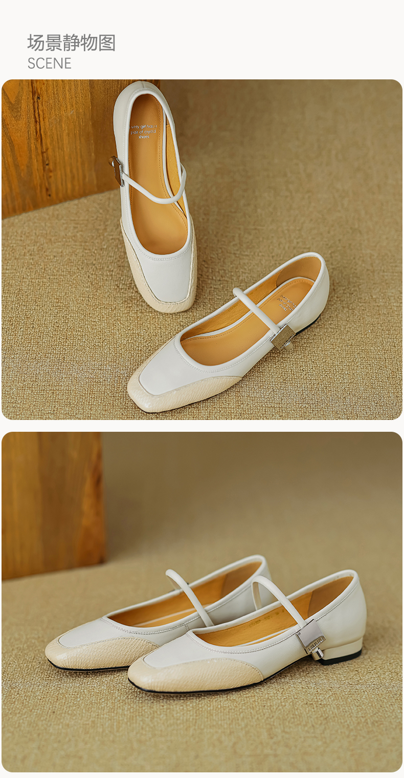 春季新款,真皮拼色浅口低跟单鞋HB-1021
