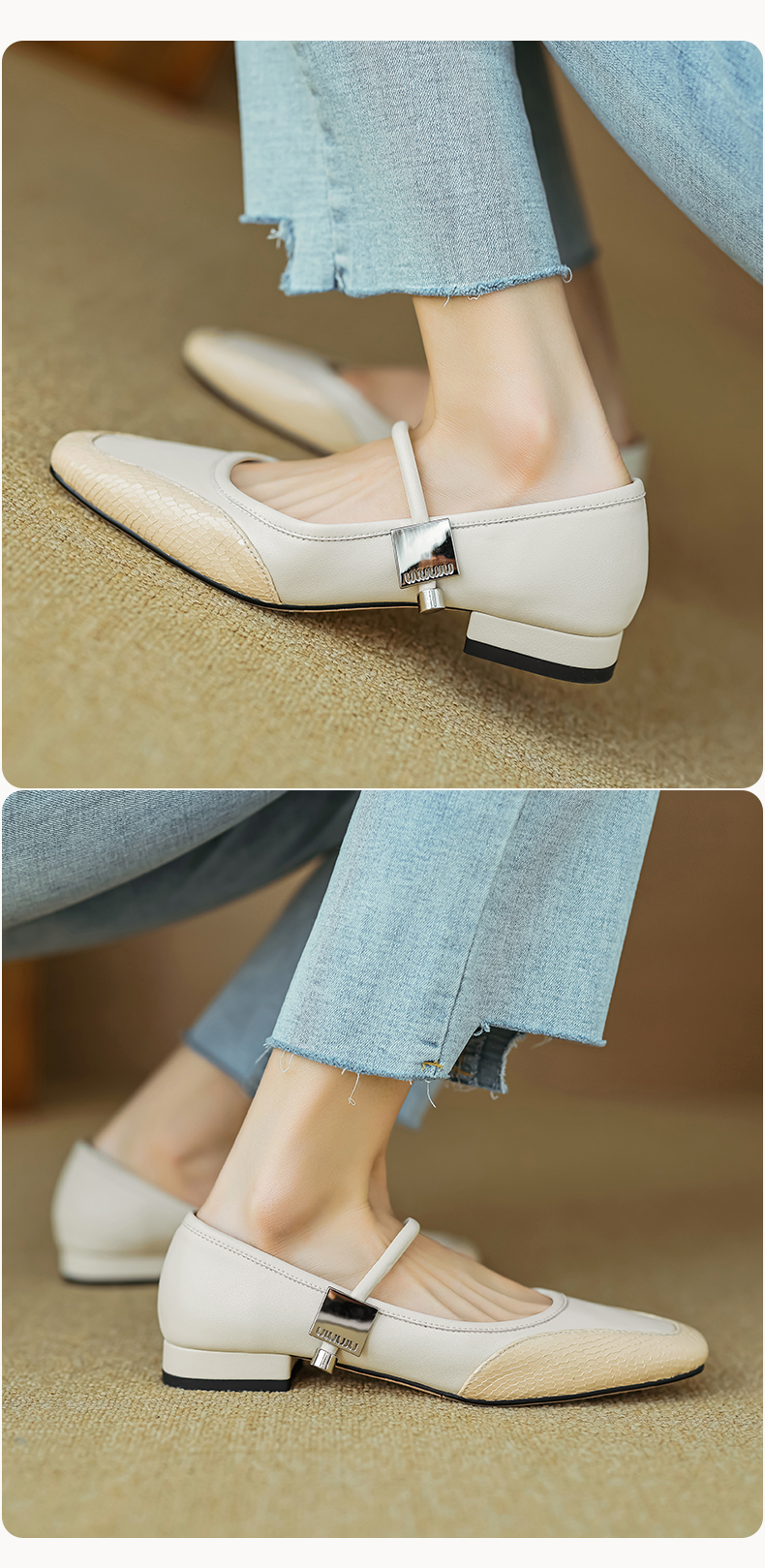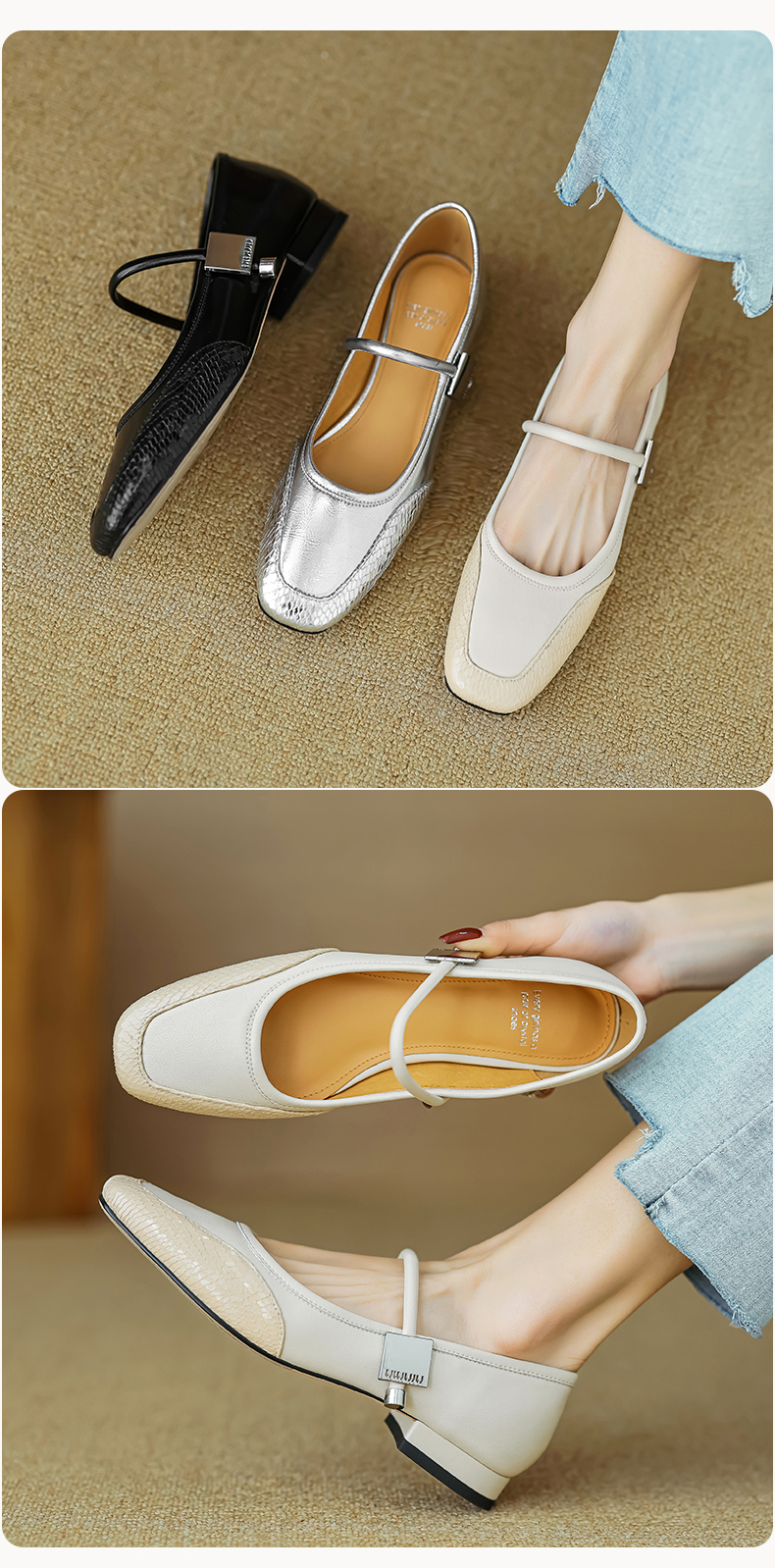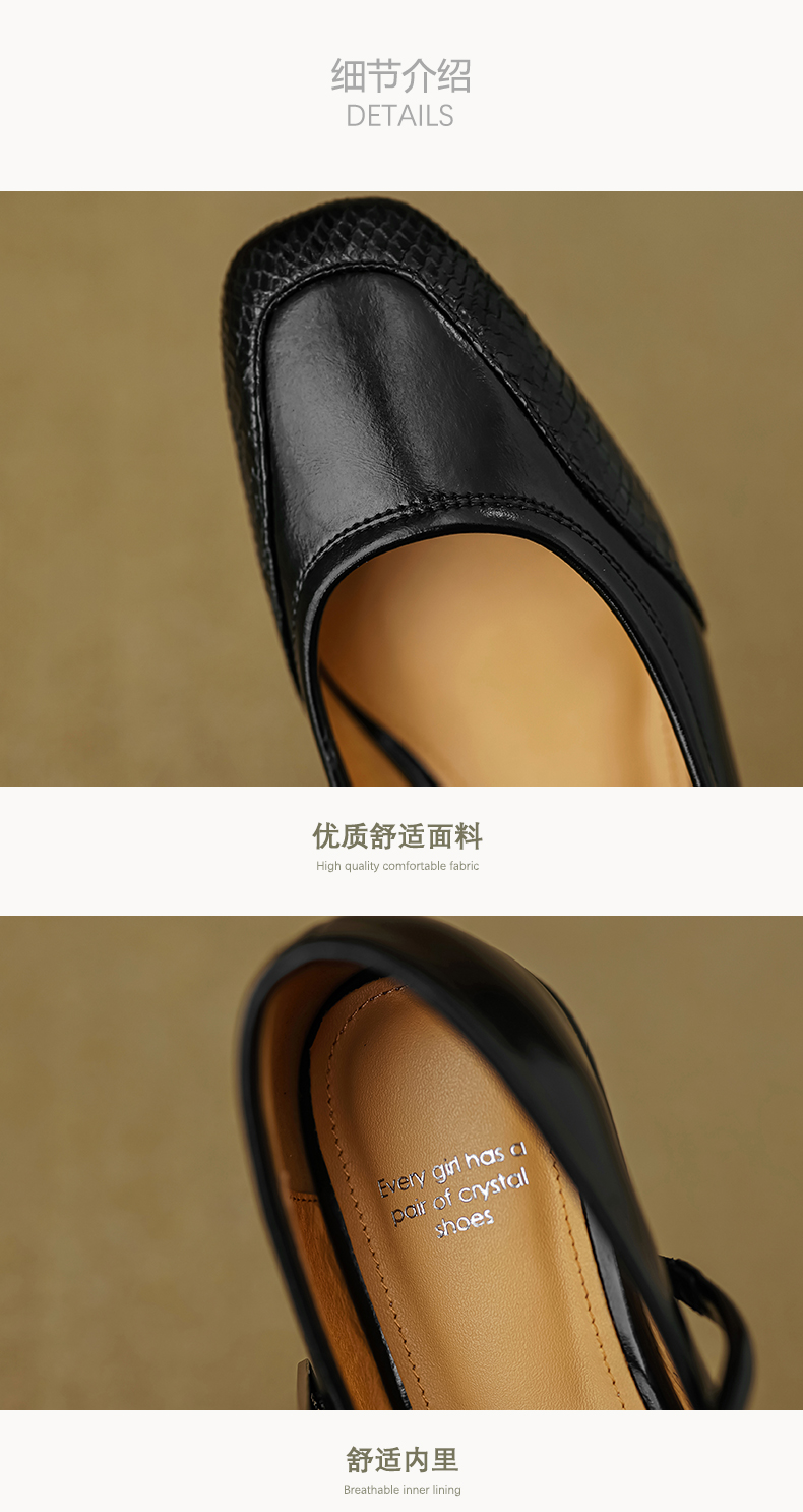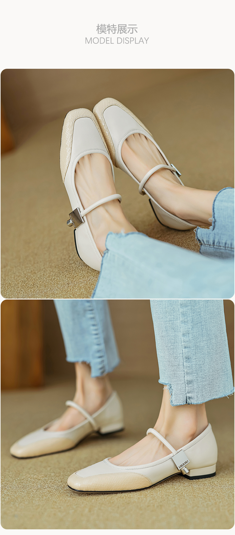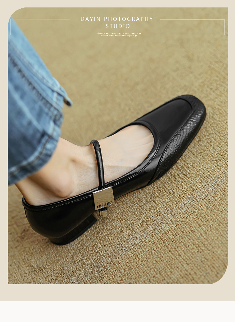 春季新款,真皮拼色浅口低跟单鞋HB-1021