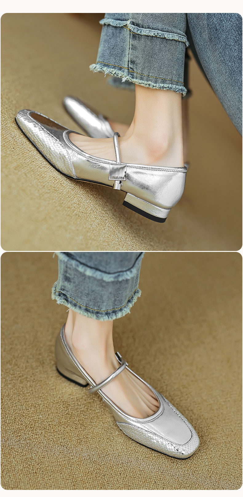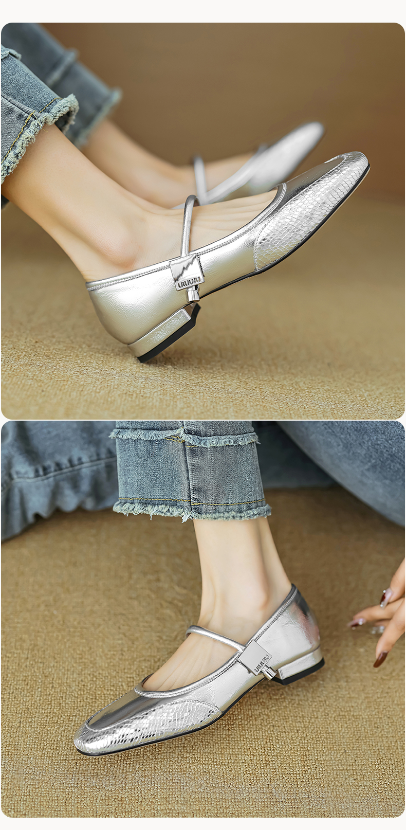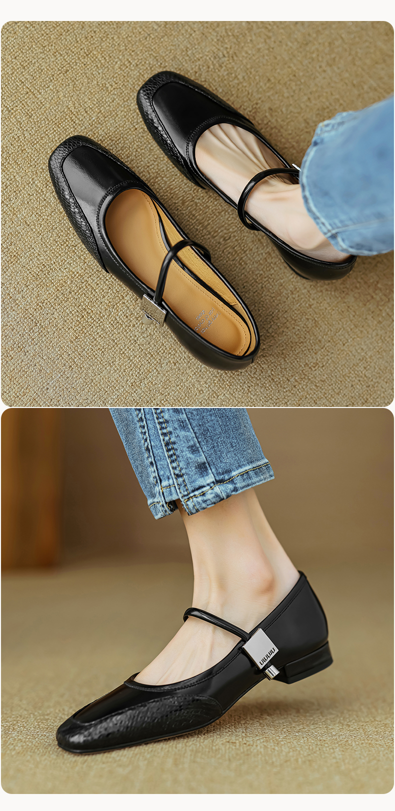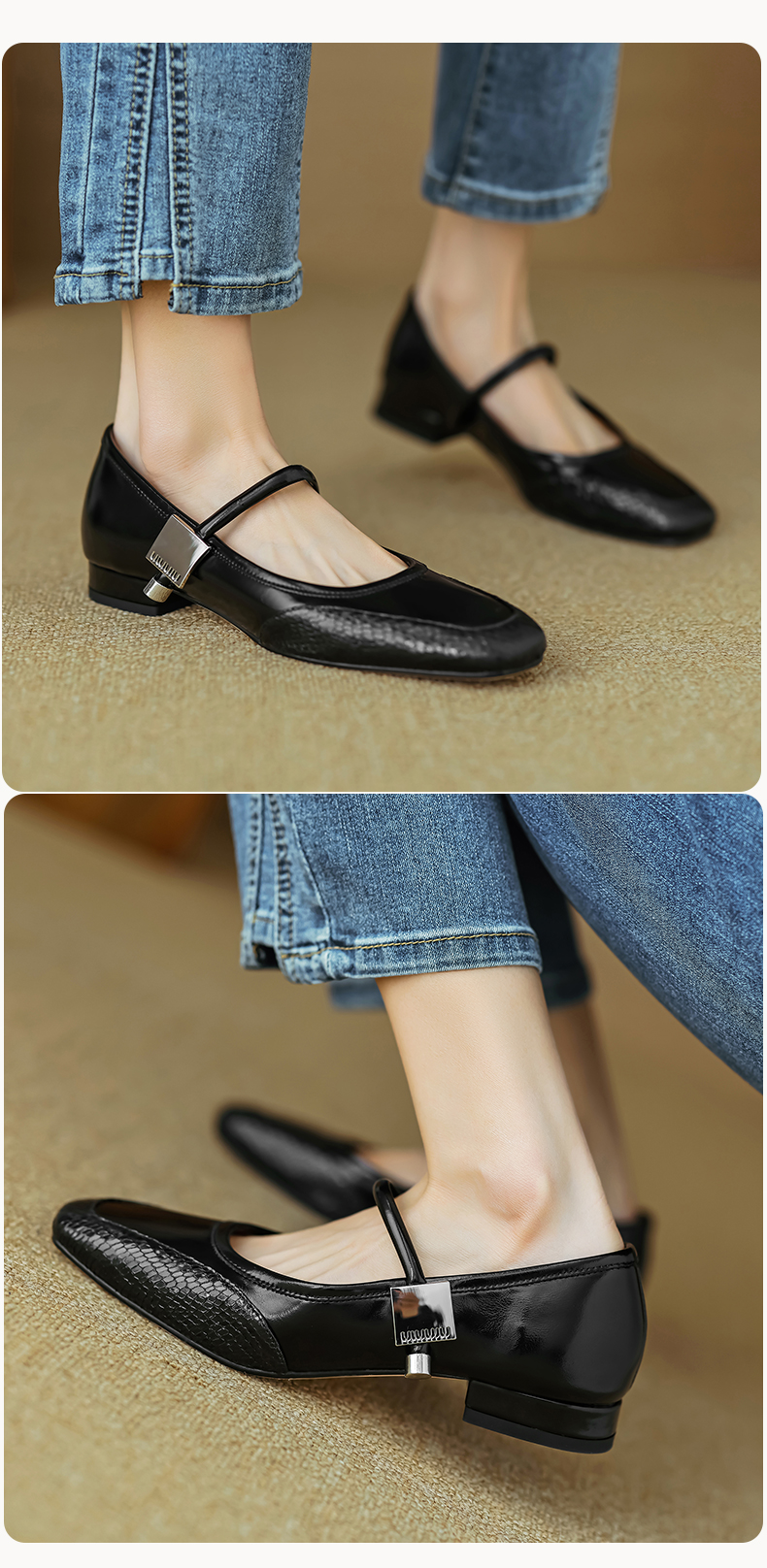 春季新款,真皮拼色浅口低跟单鞋HB-1021