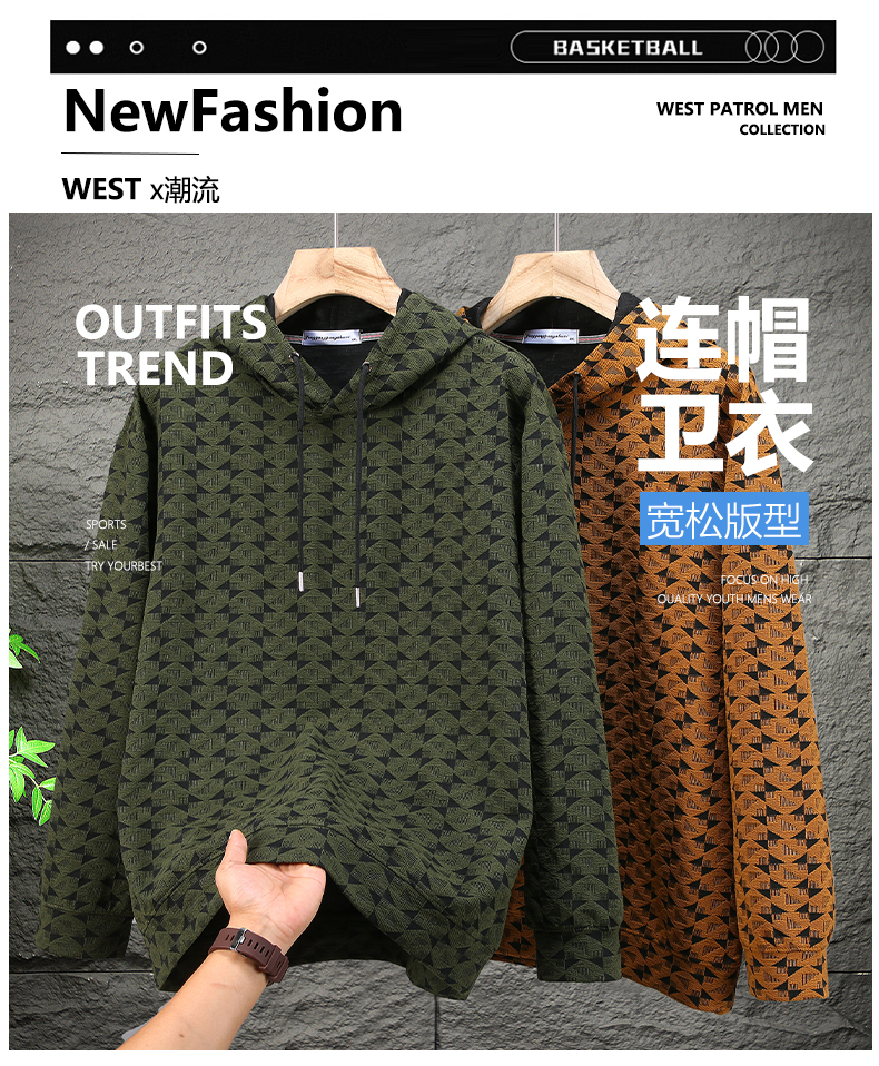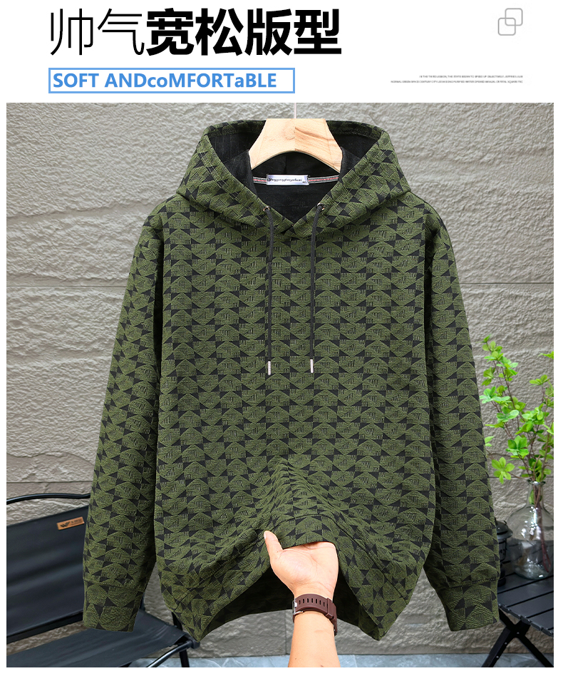 【特大码】【新款DFF】大依优型大码连帽卫衣男宽松休闲上衣胖子加肥加大男士潮流