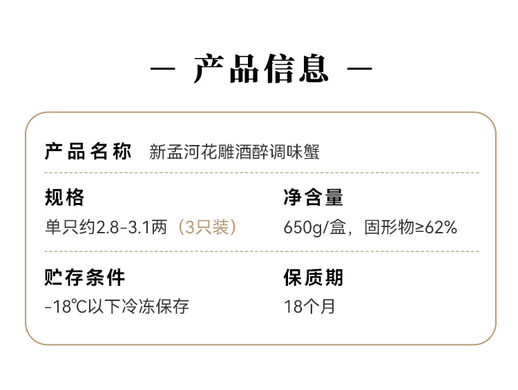 【3两全母醉蟹 多买多减】新孟河全母花雕熟醉蟹 650g/盒 (约3两/只 3只/盒) 液氮锁鲜 顺丰速运