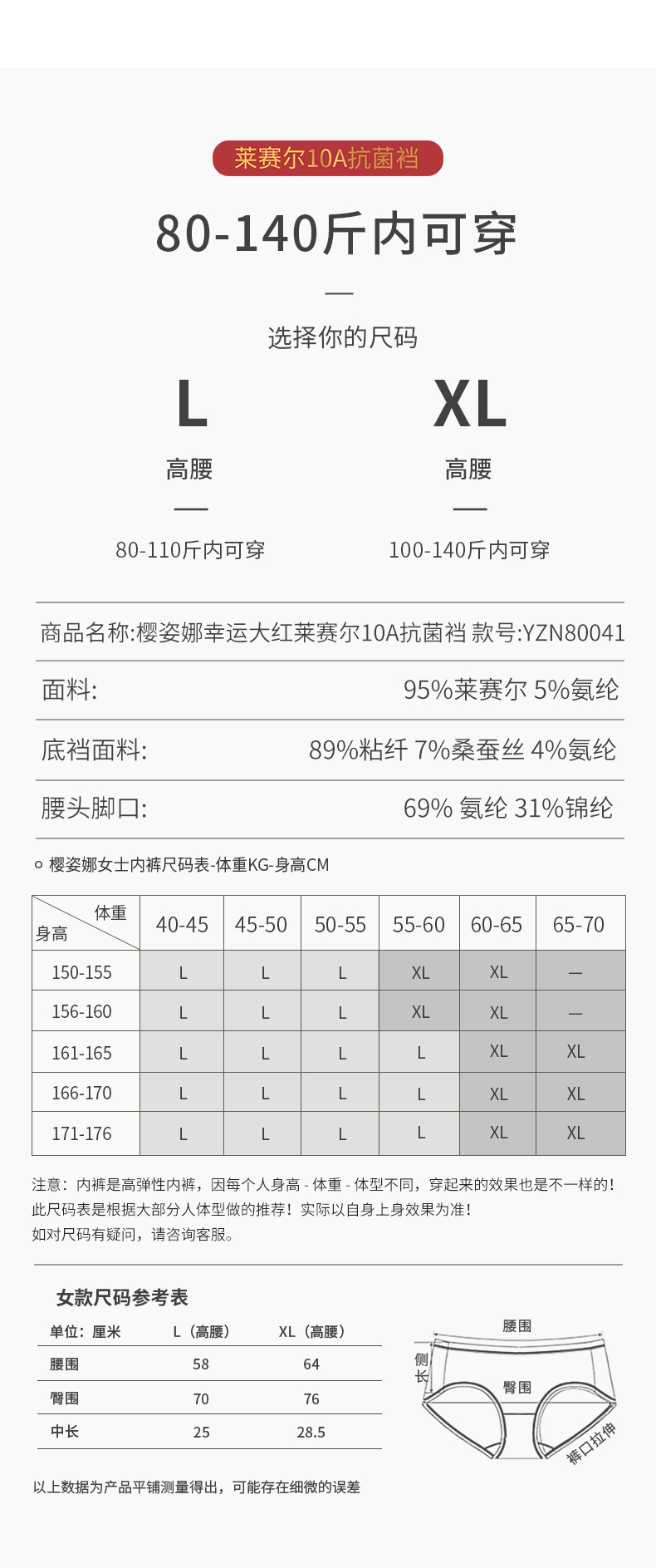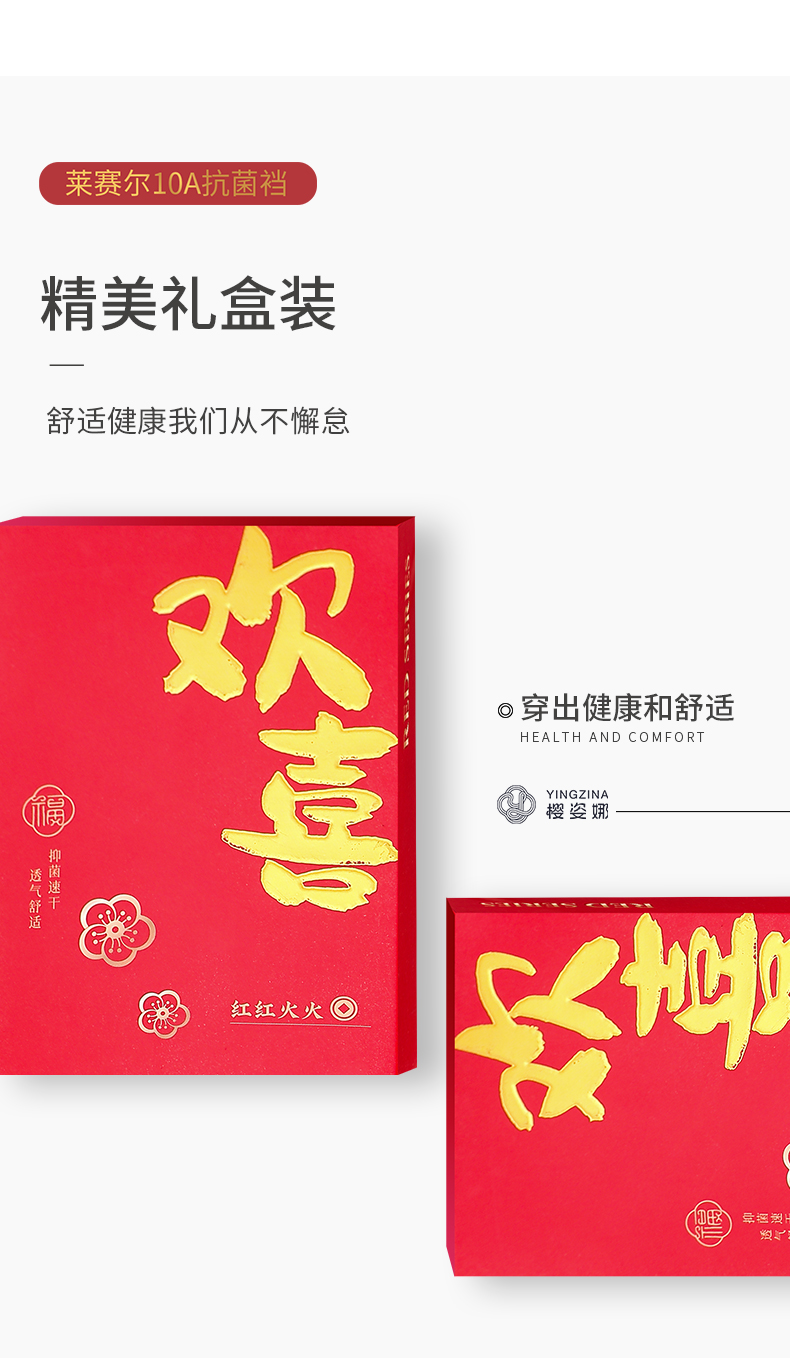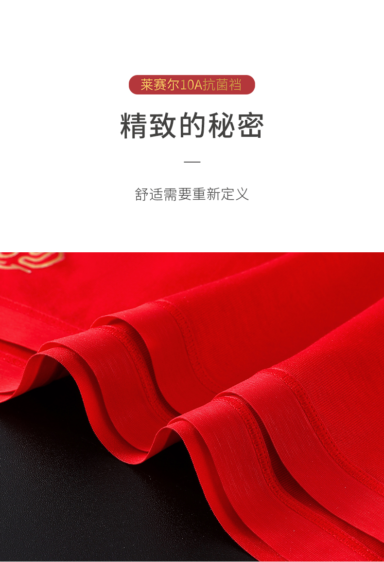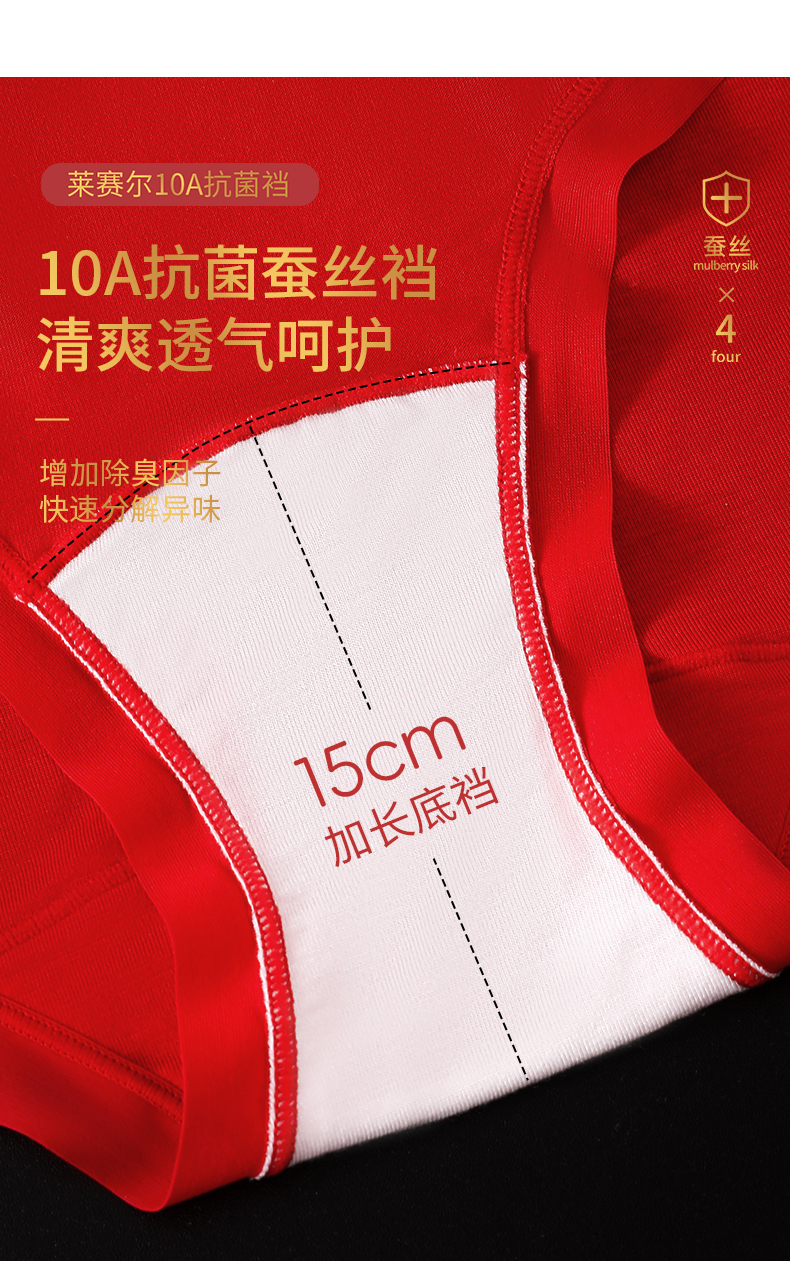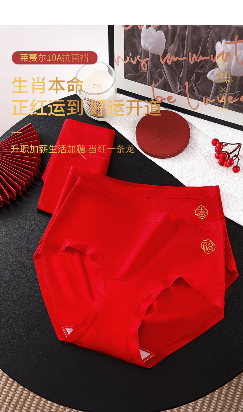 樱姿娜新年红内裤,女款80041欢喜裤,4条礼盒装,莱赛尔幸运红,蚕丝底裆,舒适透气