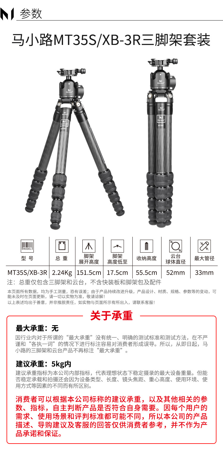 马小路Marsace MT35S XB-3R 无中轴三脚架云台套装