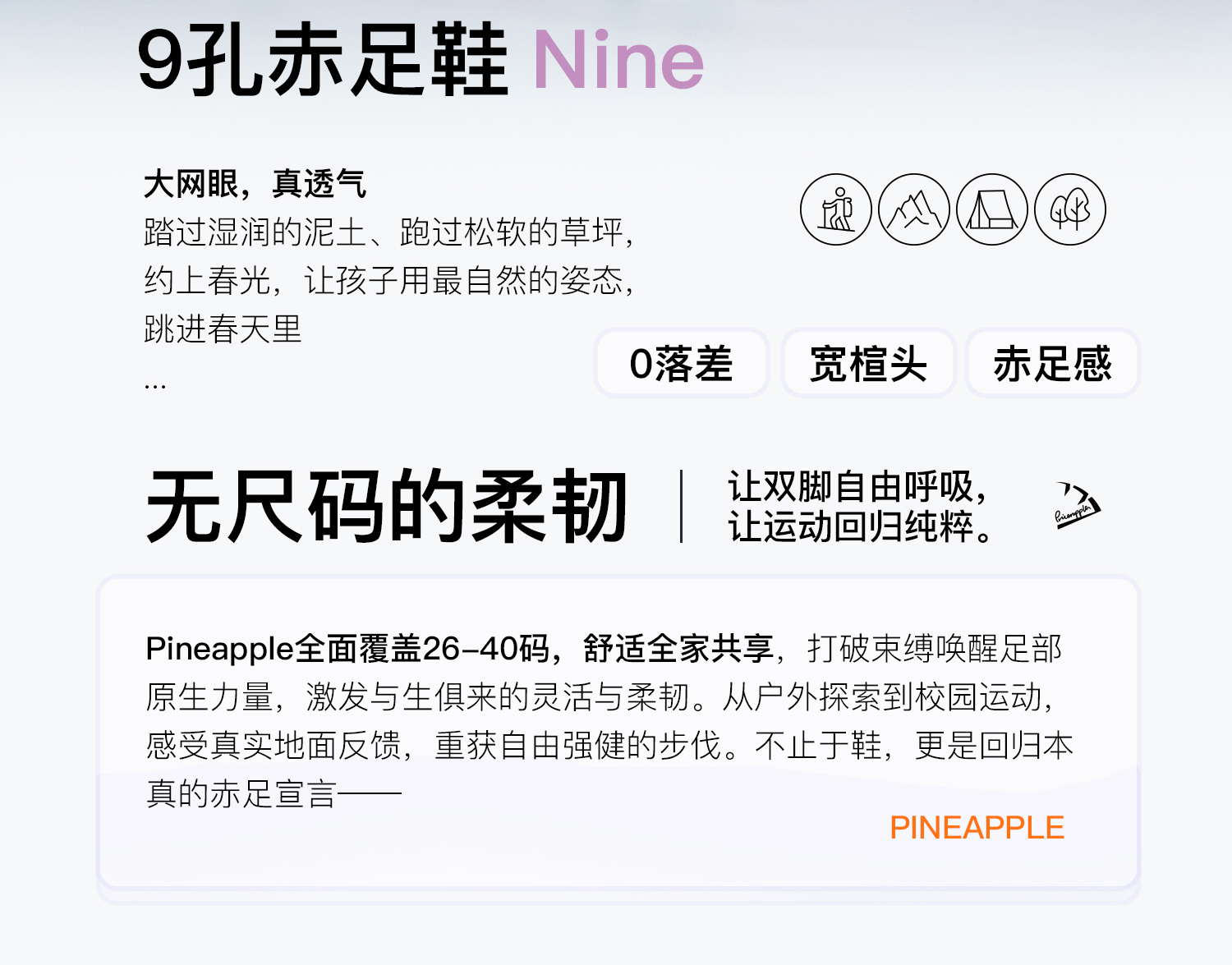 pineapple菠萝【9孔赤足鞋】2026春新款儿童赤足鞋透气运动鞋男女童校园跳绳鞋【种草号团购】