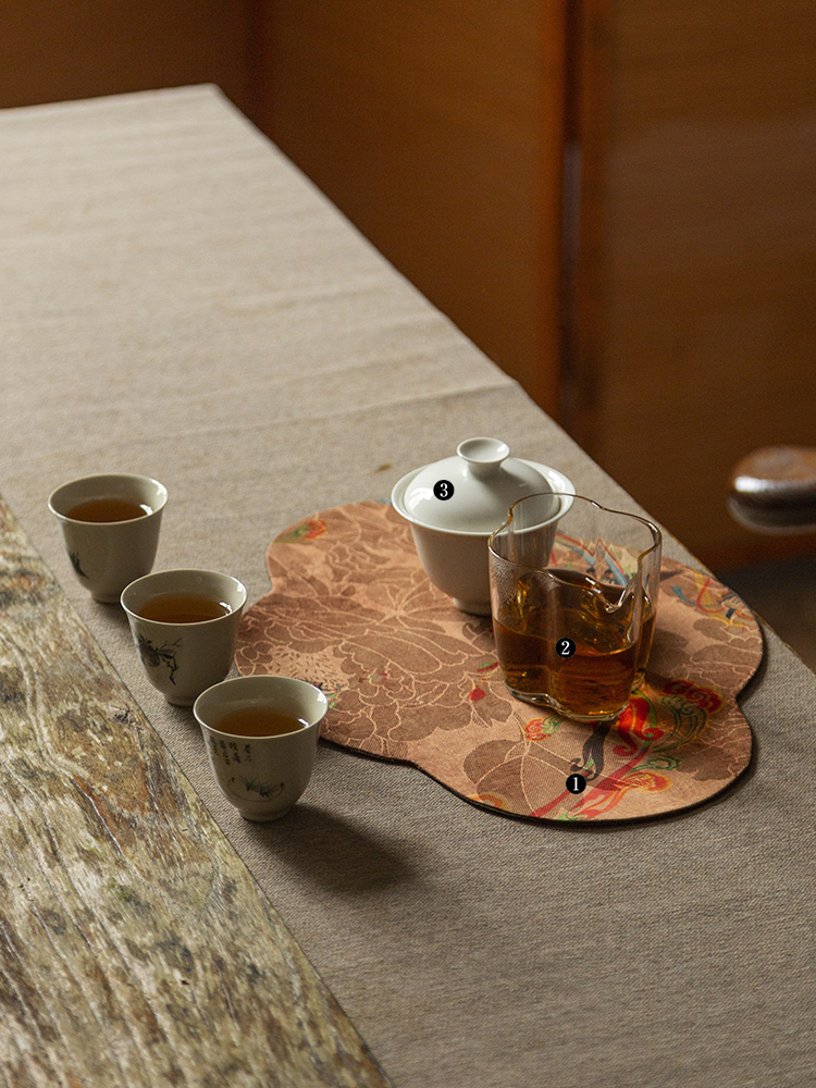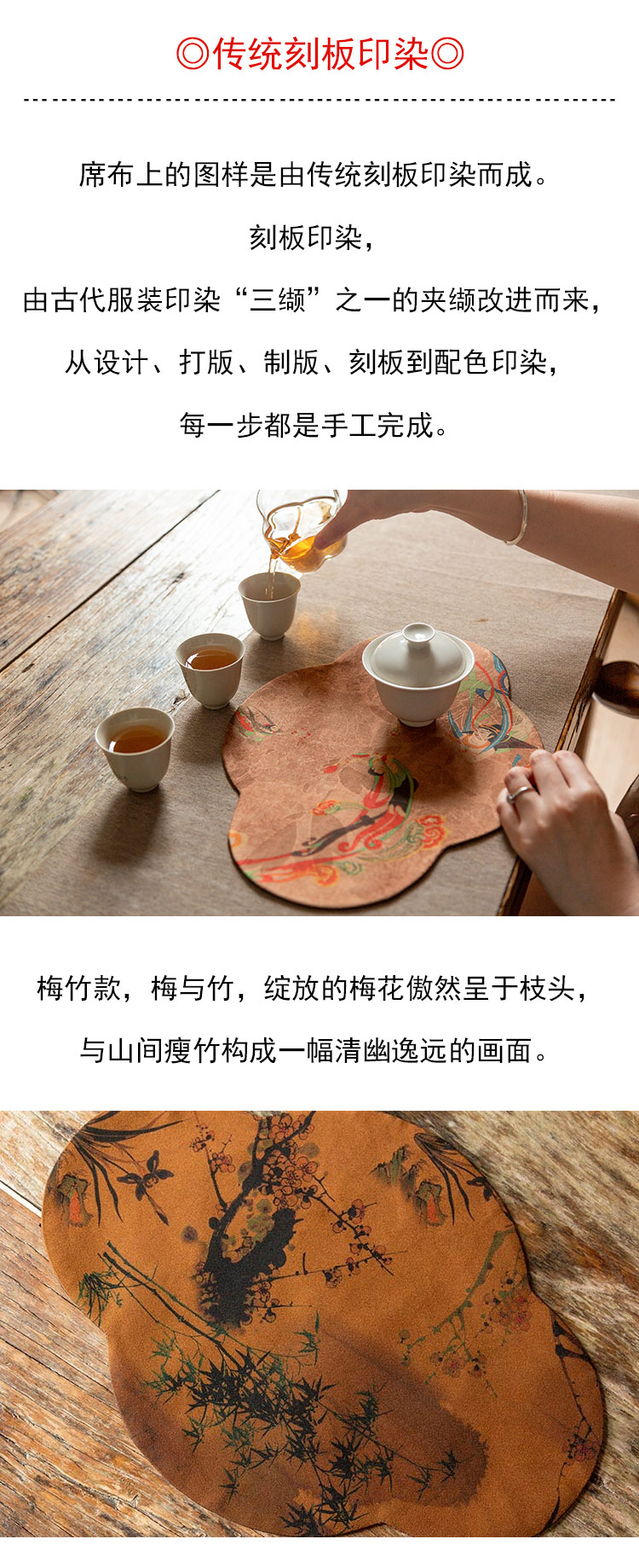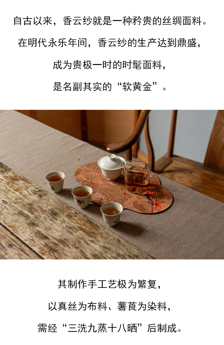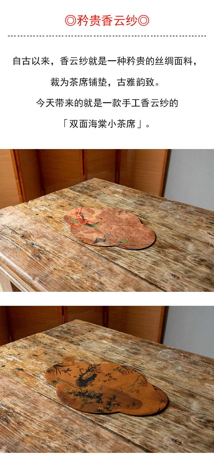 茶香记 香云纱 双面海棠小茶席 一人席 传统刻板印染 双面可用