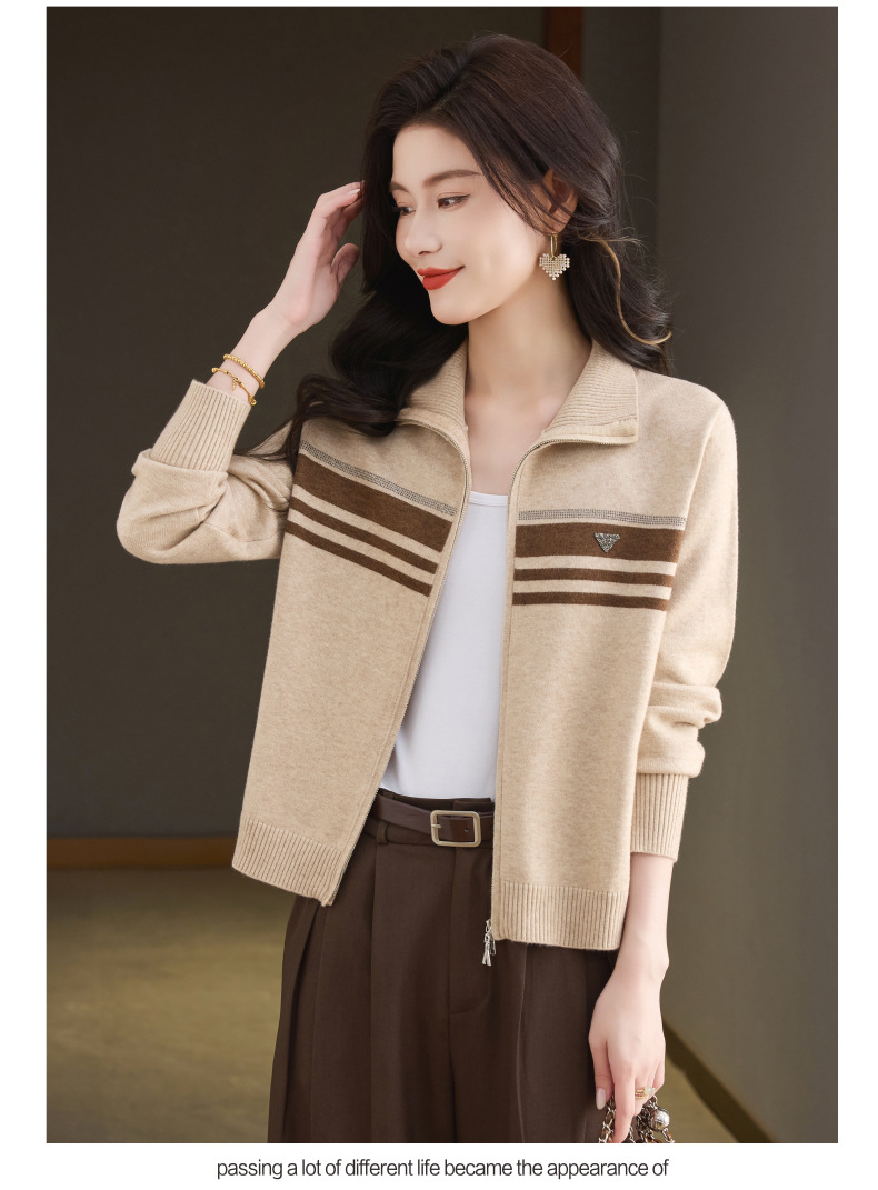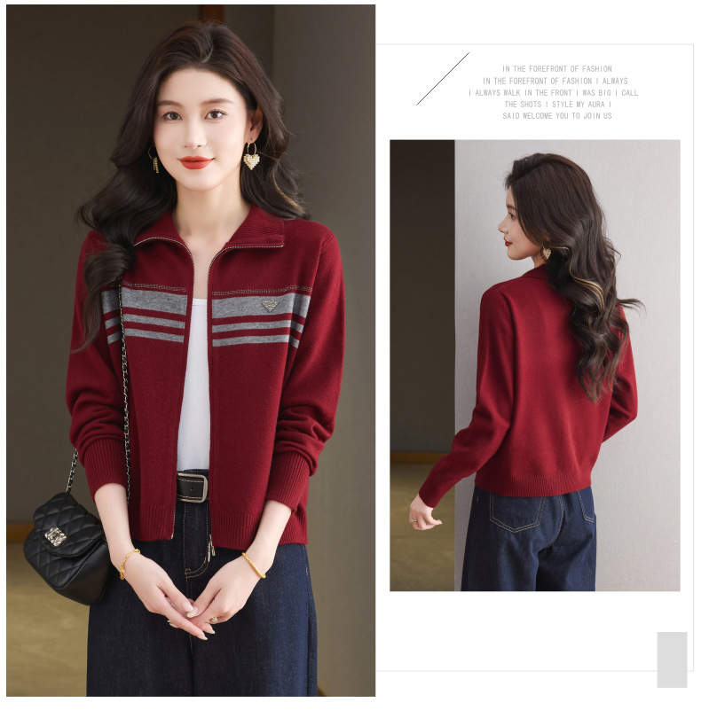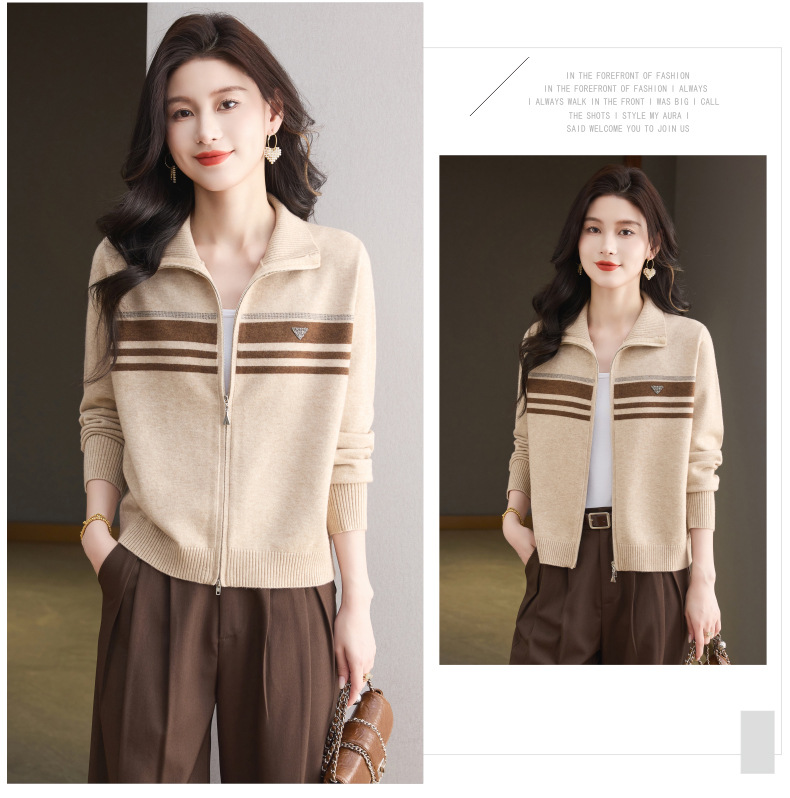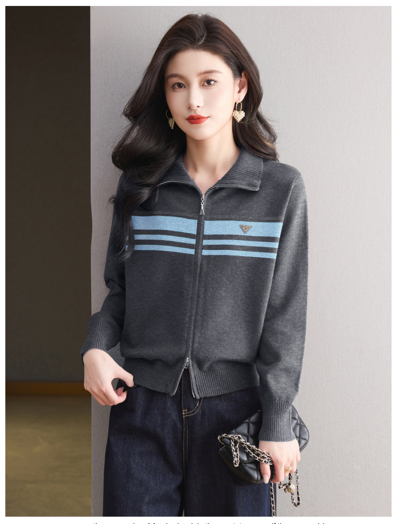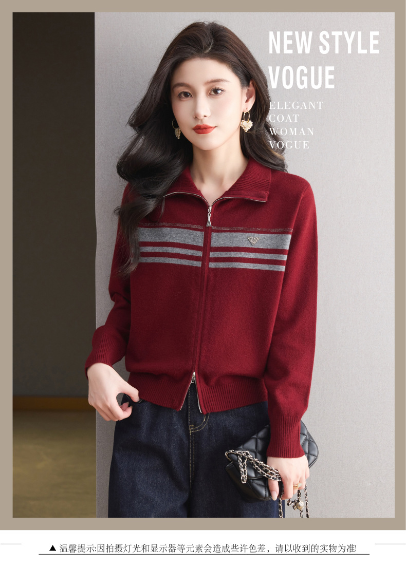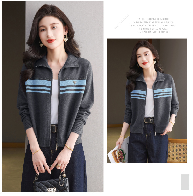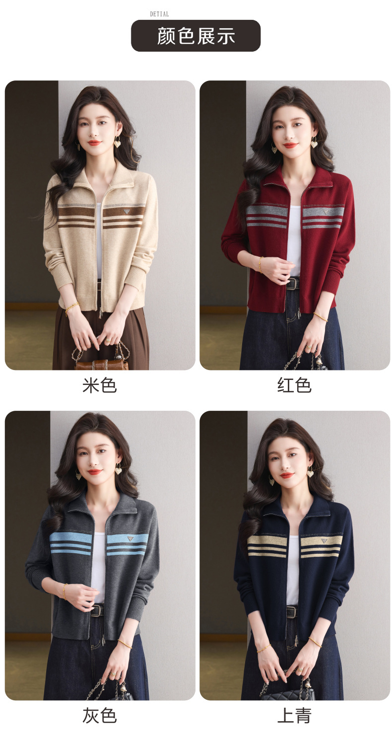 CC高级感秋装拉链翻领外套毛衣2025新款大码胖mm针织开衫女短款显瘦